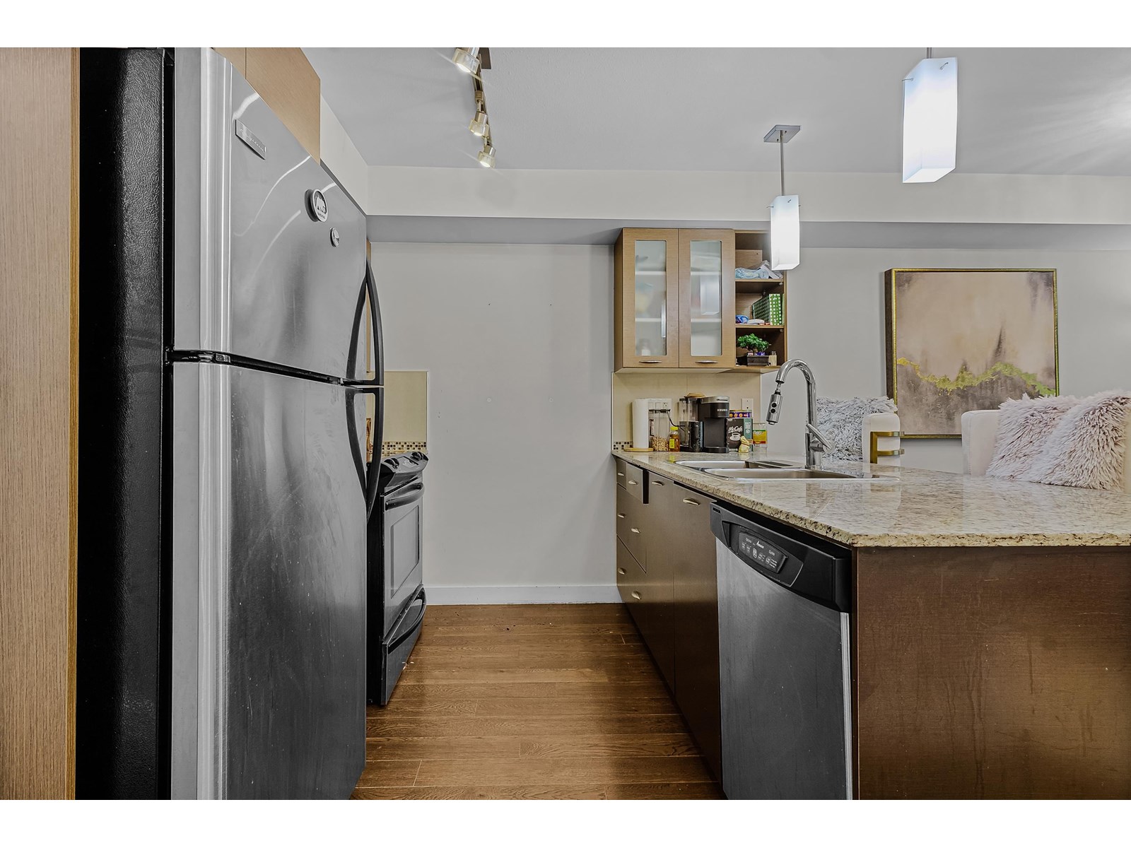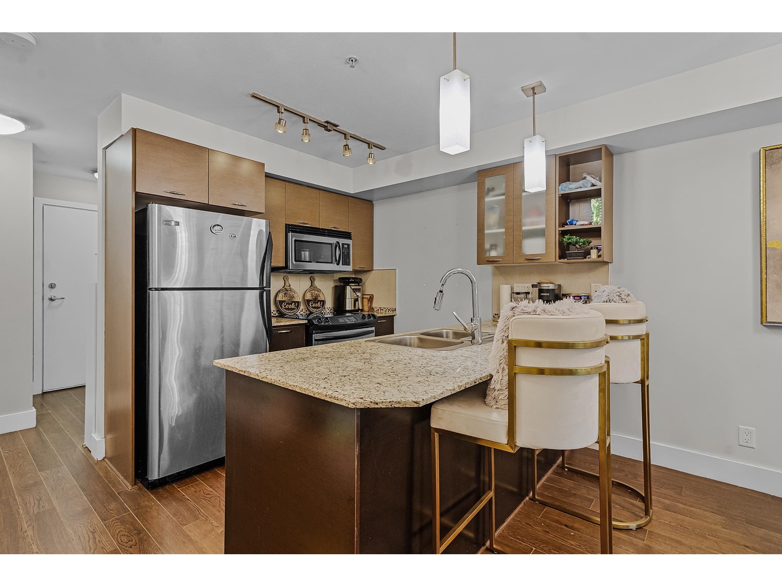 $377.10 MonthlyWelcome to Latitude! This upper level, Jr 2 Bedroom condo boasts expansive floor plan and extra large windows to let in lots of natural light! Featuring a large primary bedroom and a walk in closet, a spacious second room, an electric fireplace in the living room, and spacious area to host all your gatherings. Latitude offers an in-house gym, meeting room, pool table, and two guest suites. Condo comes complete with 1 Parking spot, and an extra large storage unit. Within walking distance to UFV, Abbotsford Entertainment Centre, McCallum Junction for great restaurants and coffee shops, and close Highway 1 access at Sumas Way and McCallum Road. Don't miss out on the great opportunity, Call today for your private showing! Open House: June 21/June 22: 1 PM-3 PM! (id:44393)