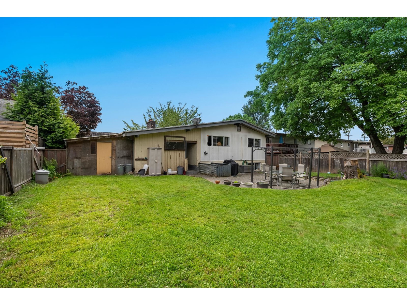 Welcome to this inviting Rancher with a basement, offering a cozy and functional space ideal for first-time buyers! Featuring a spacious kitchen with a center island, two fireplaces, and a private, fully usable backyard, this home provides both comfort and convenience. Located in a prime central area, you're just a short walk to restaurants, shopping & UFV, and have quick access to Highway 1. A fantastic opportunity to step into homeownership while building equity! With OCP zoning of URBAN 2 GROUND-ORIENTED and a proposed rezoning to RMX (Multi-Plex Residential zoning), this property also holds great investment potential. Whether you choose to live here, rent it out, or hold for future development, the possibilities are endless.Don't miss this opportunity, Book a private viewing anytime ! (id:44393)
