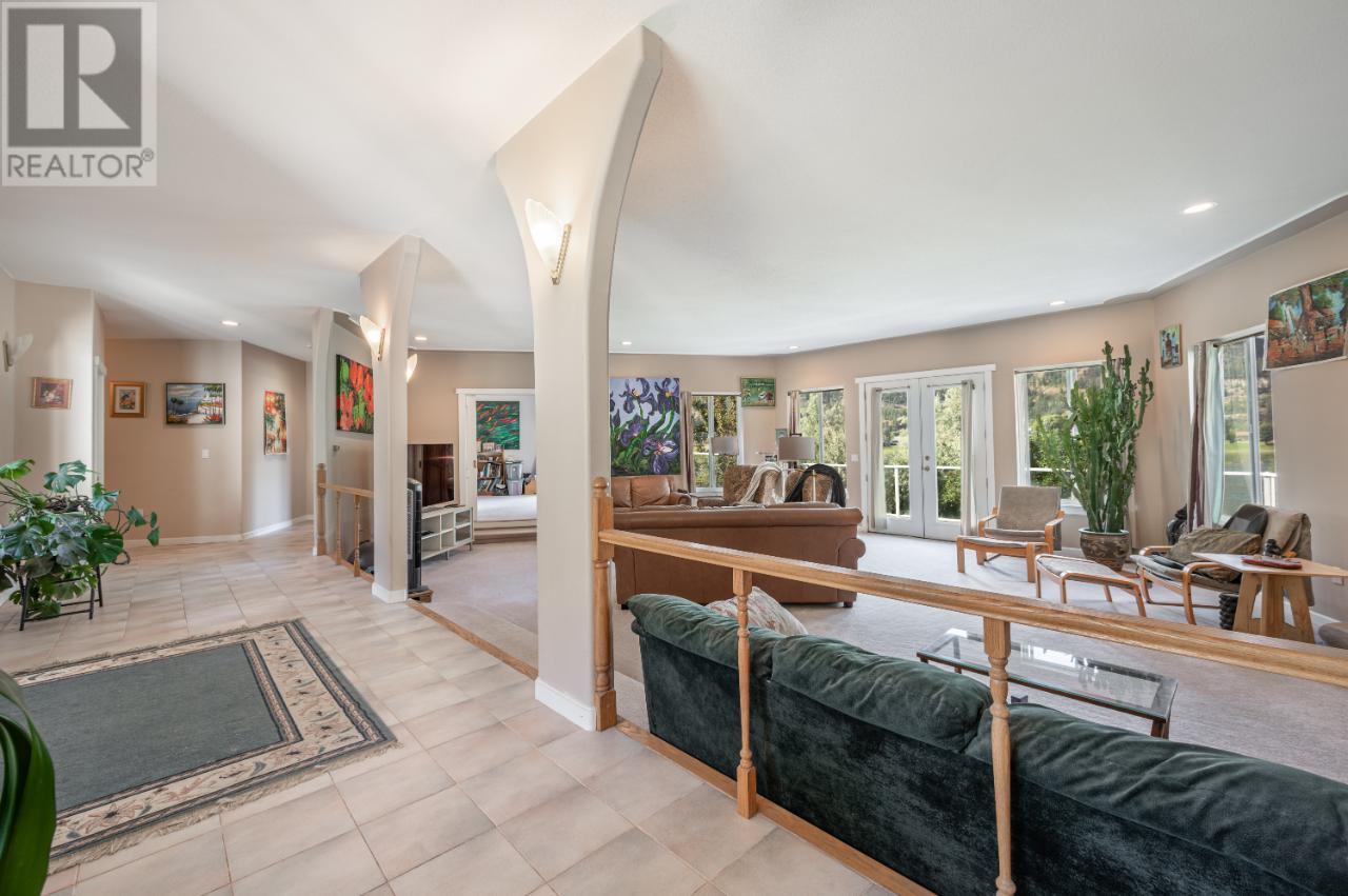 Welcome to 3390 Shuswap E Road, an exceptional 20-acre riverfront estate with stunning development potential overlooking the serene South Thompson River. Currently the owners have positive discussion with Ministry of Transport and TRND for subdivision to date. This 4,300 sq ft rancher-style home is thoughtfully designed for entertaining, featuring a Mediterranean-inspired kitchen with double ovens, a walk-in pantry, and an adjoining dining room. Radiant heated floors and passive solar, south-facing windows ensure year-round comfort and efficiency. All three bedrooms, the den, and spacious living areas offer walk-out access to breathtaking mountain and river views. The full unfinished basement offers endless opportunities for customization. Formerly an organic farm, the property boasts fertile soil and AF-1 zoning, allowing for a variety of uses including a bed & breakfast, equestrian estate, agri-retreat, guest ranch, or home-based business. Surrounded by nature and close to golfing, fishing, boating, skiing, and birdwatching. This is a rare opportunity to live your dream or launch your next venture in paradise. Book your showing today. Measurements are approximate. Buyer to verify. (id:44393)