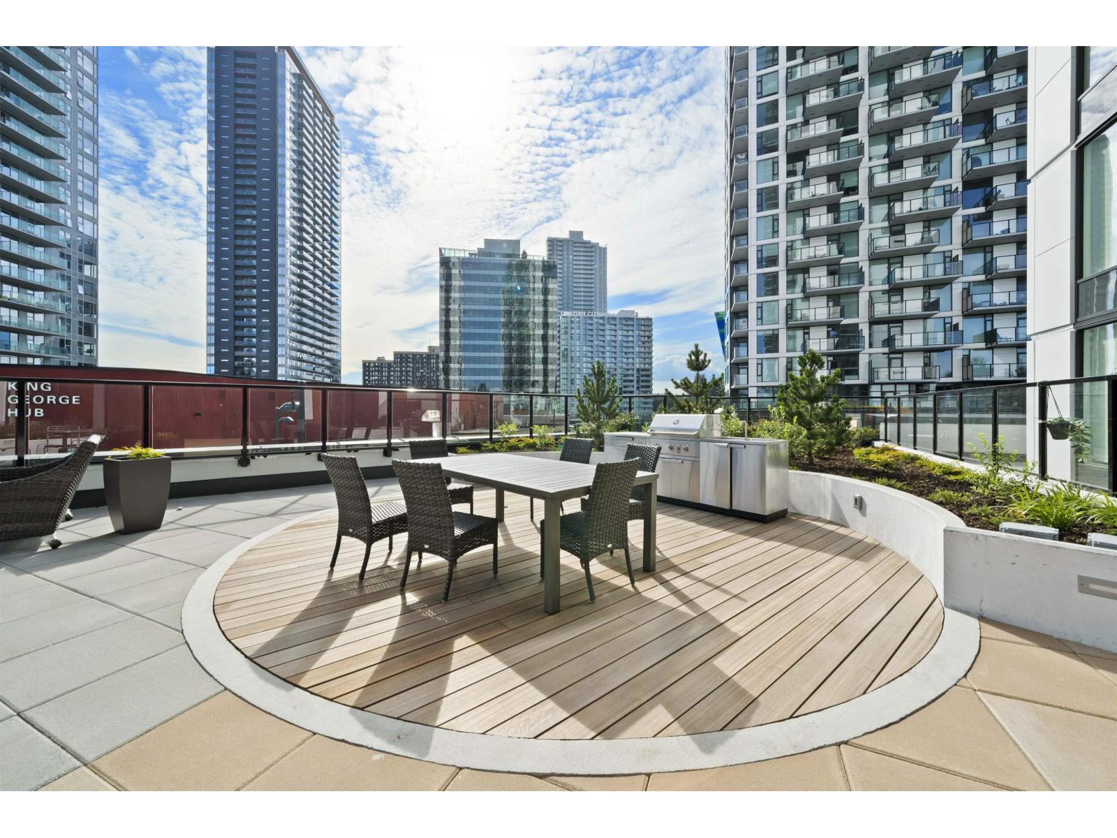 $561.42 MonthlyDiscover elevated urban living at PLAZA ONE by PCI Developments. This bright SOUTHWEST facing unit showcases floor-to-ceiling windows, sleek integrated kitchen, spa-inspired bath, large entertainer's patio, insuite COOLING & the BEST LAYOUT in the tower! Amazing Amenities : Full-time Caretaker, Rooftop Lounges w/ BBQs, Kids' Play Area, Co-working & Library Spaces, Theatre & Fitness Centres. Live in the heart of it all! Steps to SkyTrain, Save-On-Foods, Rexall, Browns Socialhouse, Central City Mall, T&T, SFU & Kwantlen campuses. Style, comfort & convenience come together right here at the King George Hub. (id:44393)