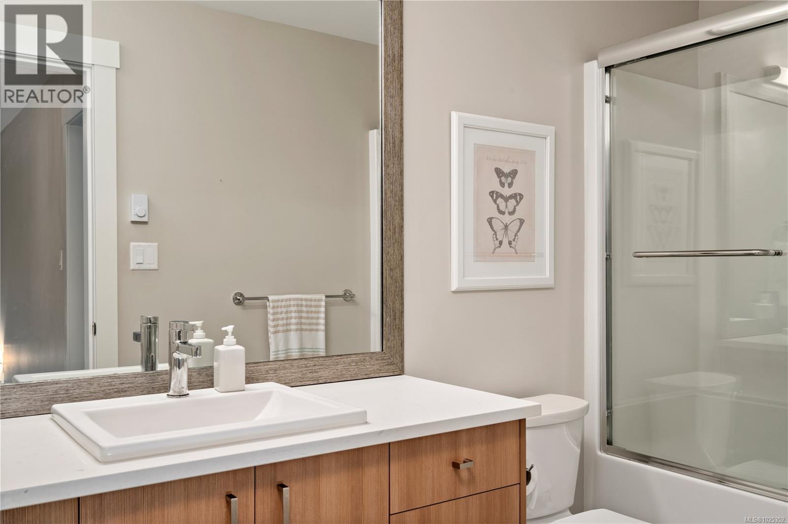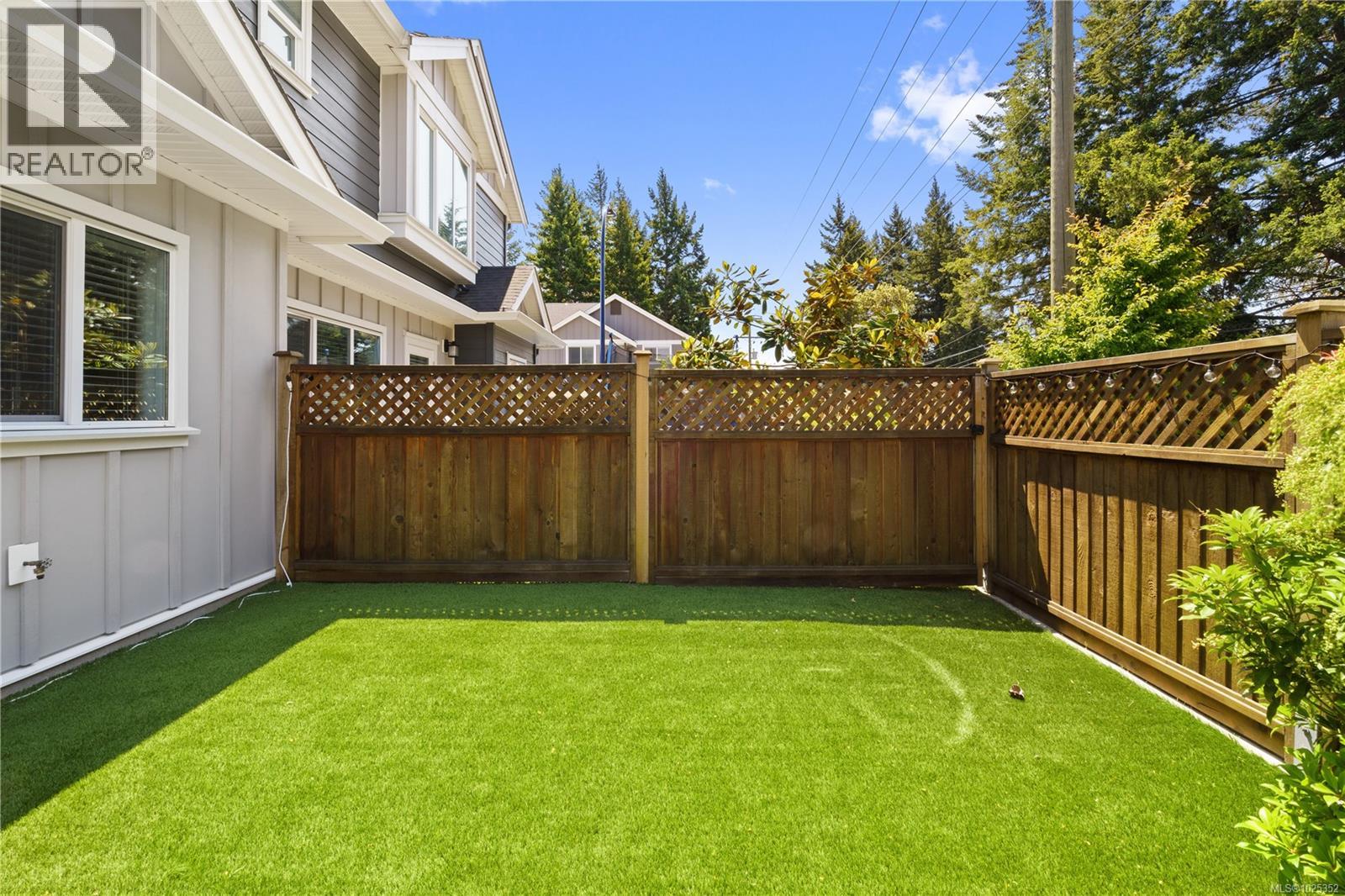 $215 MonthlyVacant and ready to move in NOW! Gorgeous 3 bed+3 bath townhouse is just like a duplex - in desirable Lobo Vale Mews! Large FULL-size double car driveway in front of double car garage. Built Green Platinum level with insulated concrete foundations and party walls providing superior safety, sound-proofing and energy efficiency. 9 ft ceilings! Custom-designed kitchen with quartz countertops, stainless steel appliances, soft close hardware, under-cabinet LED lights. Dual-head ductless heat pump with A/C. Plenty of parking options & storage shelves in the garage. Cozy living room with modern fireplace. Lovely, private west-facing fenced back yard! Upstairs, a spacious primary bedroom with large walk-in closet and ensuite with double sinks & walk-in shower; plus two more spacious bedrooms, main bath & separate laundry room with plenty of room for drying and storage. Just off Happy Valley Road, the home is in good proximity to schools and shopping. (id:44393)
