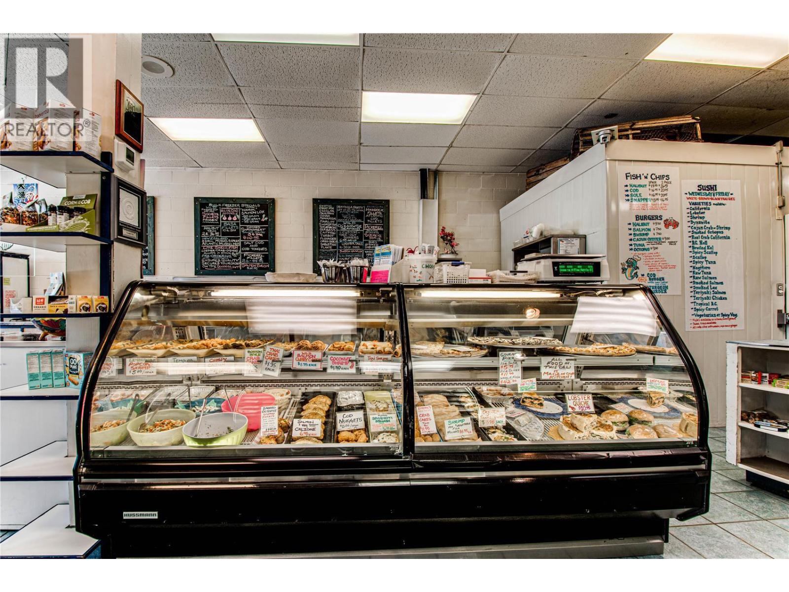 A Fine Kettle 0' Fish in Vernon is a fresh fish and seafood market plus take-out deli. Well respected and established business in Vernon, operating since 1983, and in their current location since 2000. With a superior selection of fresh and frozen fish/seafood from around the world, and a full-service kitchen, a Fine Kettle O’ Fish offers small to large single portion meals, meals for groups, lunch and dinner take-out, custom catering and fresh-made sushi, all utilizing quality, fresh ingredients. Profitable business and a strong rate of return. Recently replaced and added new equipment, Vernon's premium fresh fish market, Sellers prefer an asset sale. (id:44393)