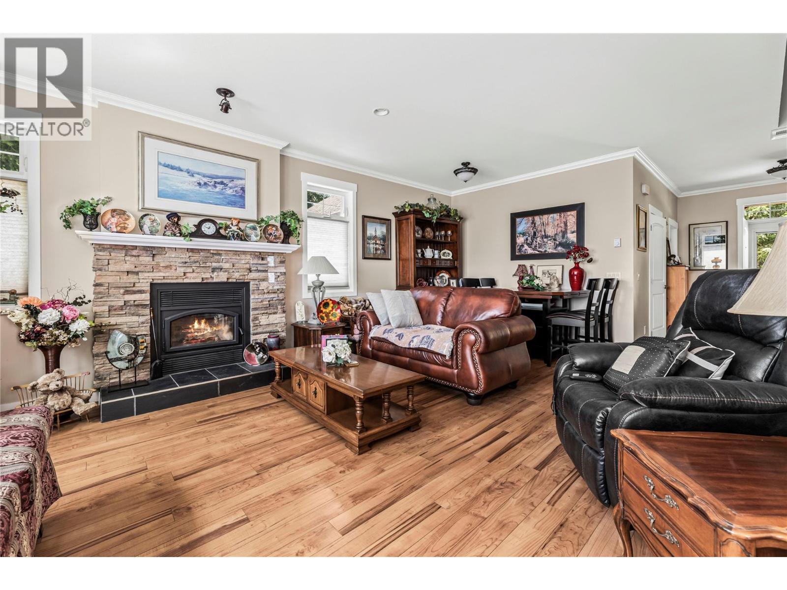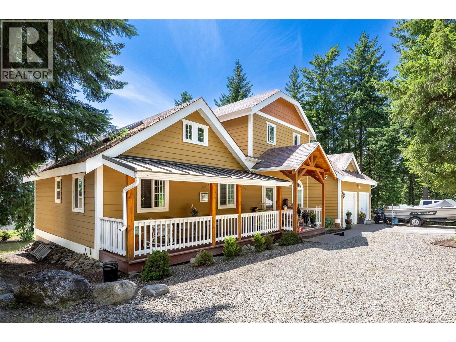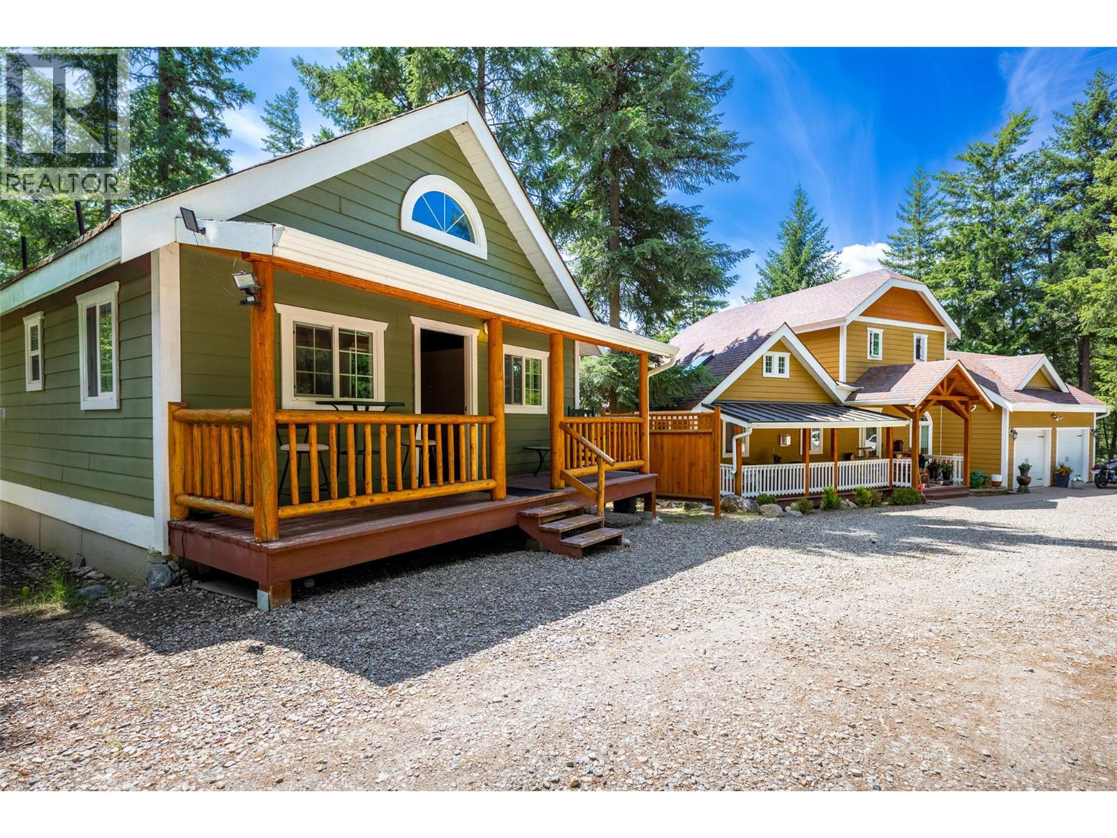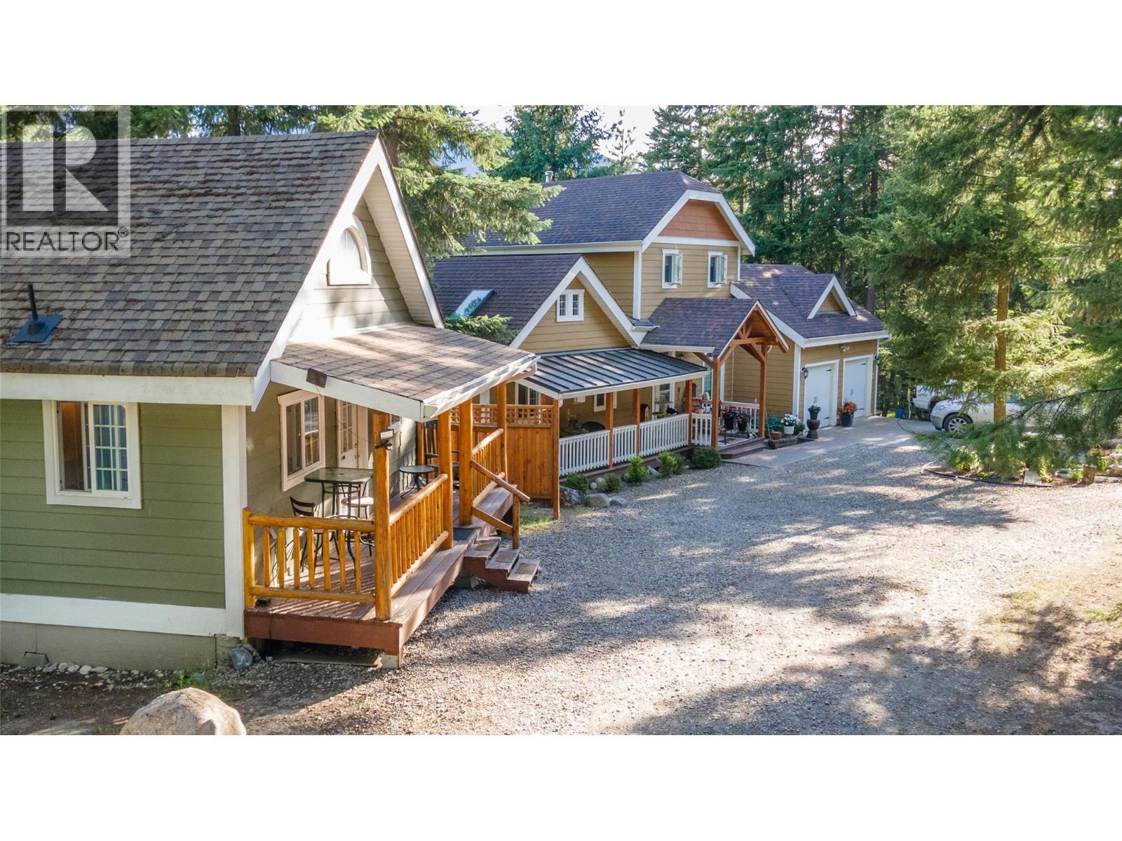 Welcome to 3447 Roberge Road — a unique and versatile 2.49-acre property offering exceptional value and income potential. Nestled in a peaceful, private setting surrounded by mature trees, this property features three separate residences, including a spacious 1900 sqft+two-storey main home, a charming 720 sq.ft. 2-bedroom house, and a well-kept 2-bedroom, 1-bath mobile home. The cabin and mobile are currently rented for $1,200/month and $1,400/month respectively, providing solid revenue from day one. The main home showcases thoughtful design elements such as vaulted ceilings, natural wood stair railings, crown moldings, and a beautiful stone-faced wood-burning fireplace. The gas stove is a chef’s delight, while HardiePlank siding offers durability and low maintenance. Enjoy outdoor living with four separate decks, including a private balcony off the primary bedroom with stunning views of the lake. Practical features include two certified septic systems, a drilled well, and ample space for gardens, recreation, or extended family. Located less than 20 minutes to Salmon Arm and just 10 minutes to Blind Bay, this is the perfect blend of rural tranquility and convenience. Whether you're looking for a multi-generational home, a revenue-generating property, or a peaceful retreat, 3447 Roberge Road is a rare find in the Shuswap. (id:44393)