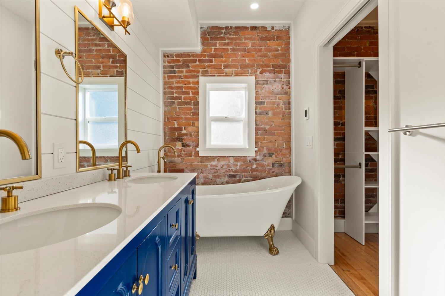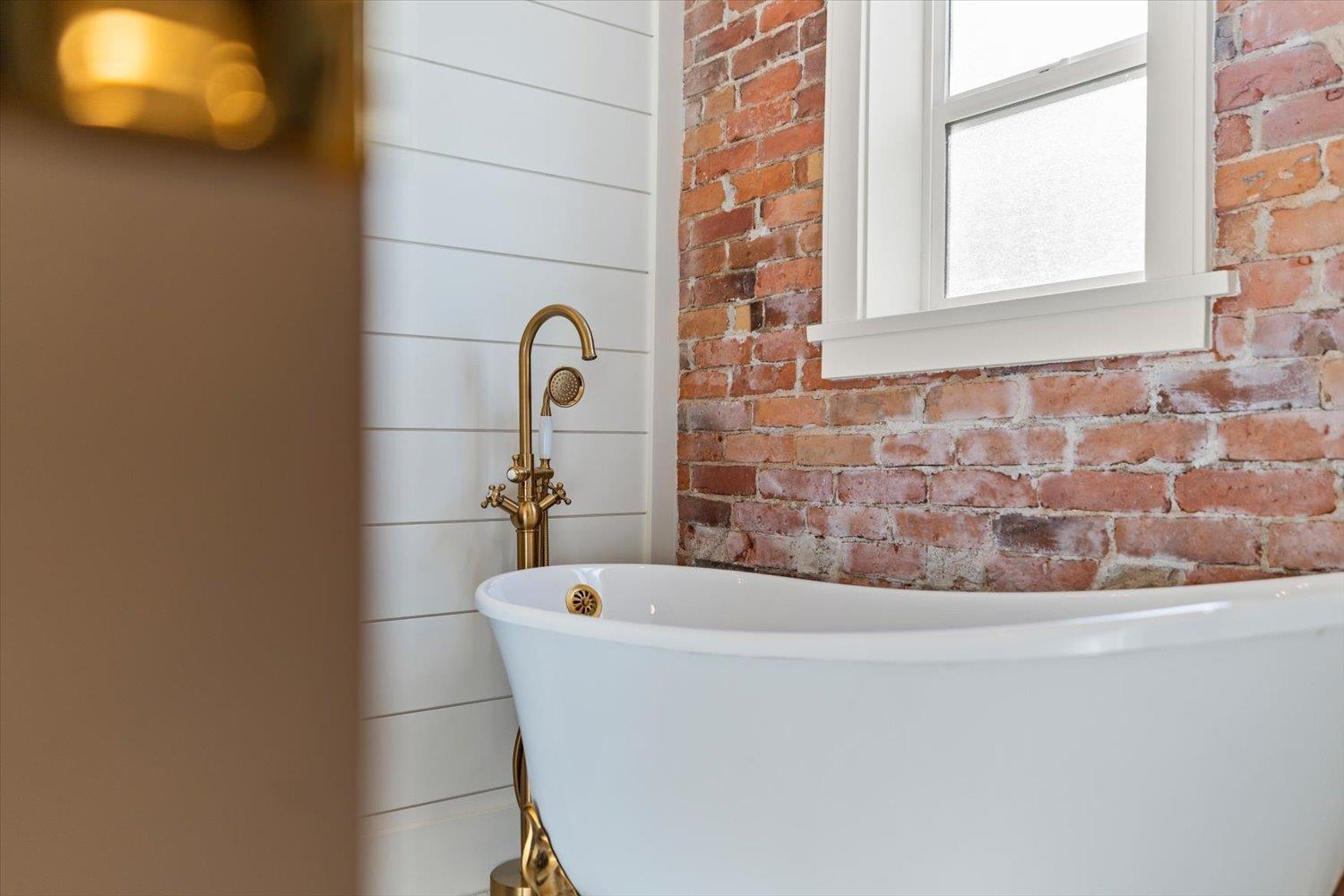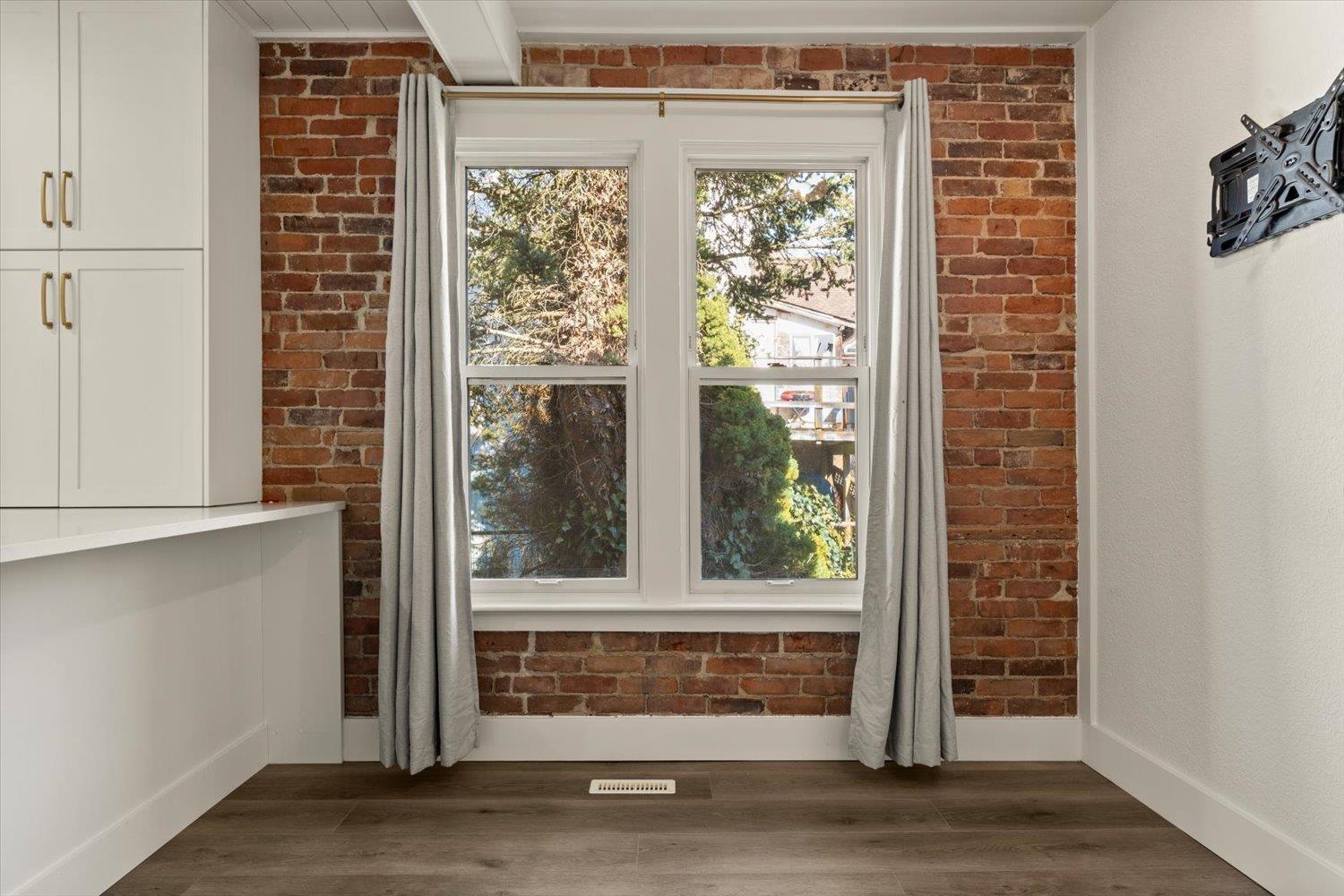 HISTORIC CLAYBURN VILLAGE CHARACTER HOME!! Great location with Lane way access. Classic brick character home with lots of renovations in recent years. Double insulated walls, newer vinyl windows, roof, updated kitchen with dark blue stainless applainces, bathroom with claw foot tub, floating staircase, replaced plumbing and all electrical with a 200amp service with 60amp to sea-can and 50amp car charging plug; new R40 insulation in ceiling, drain-tile around the foundation; heated floor tile in bathroom; new vinyl flooring in kitchen; original hardwood refinished in the bedroom; restored brick interior and exterior. The house is designed to be expanded onto (drawings available) and live comfortably while construction is going on. Very unique opportunity!! (id:44393)