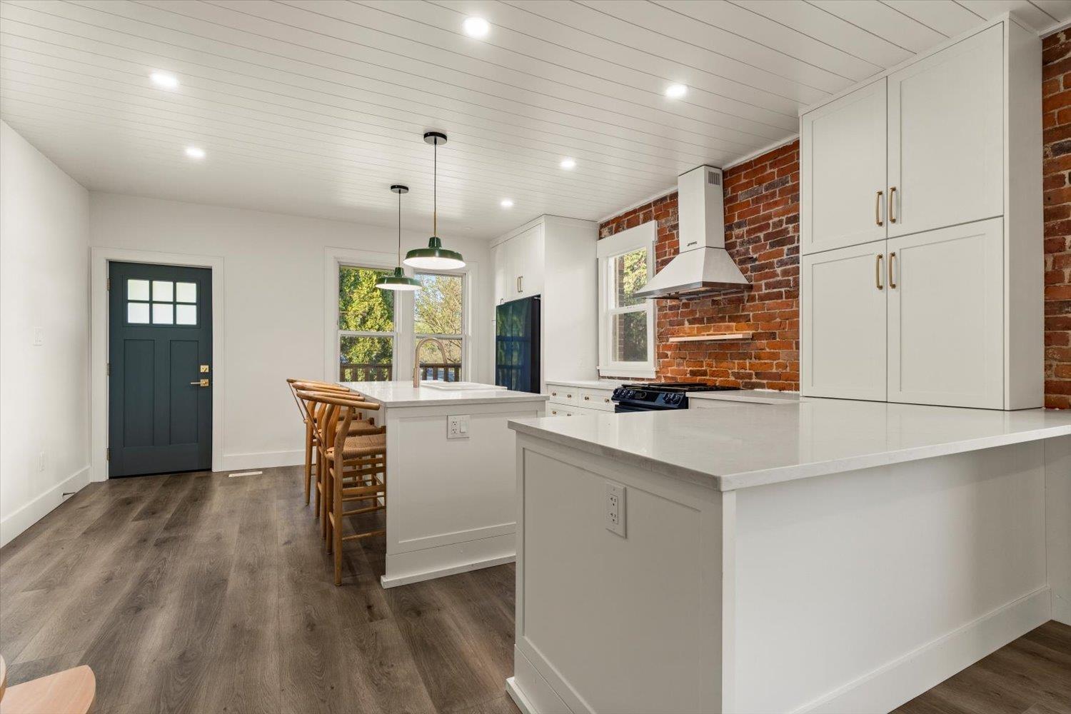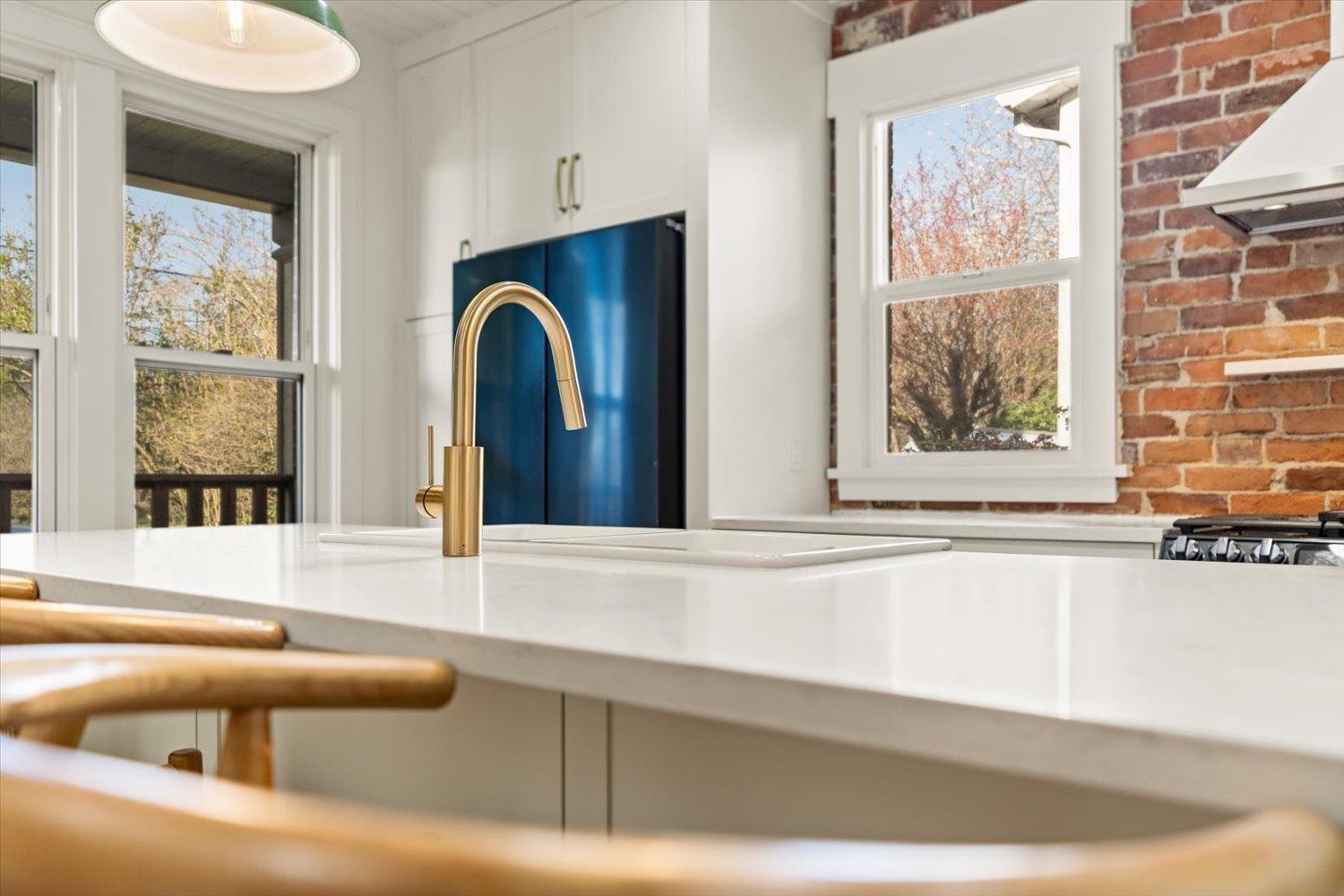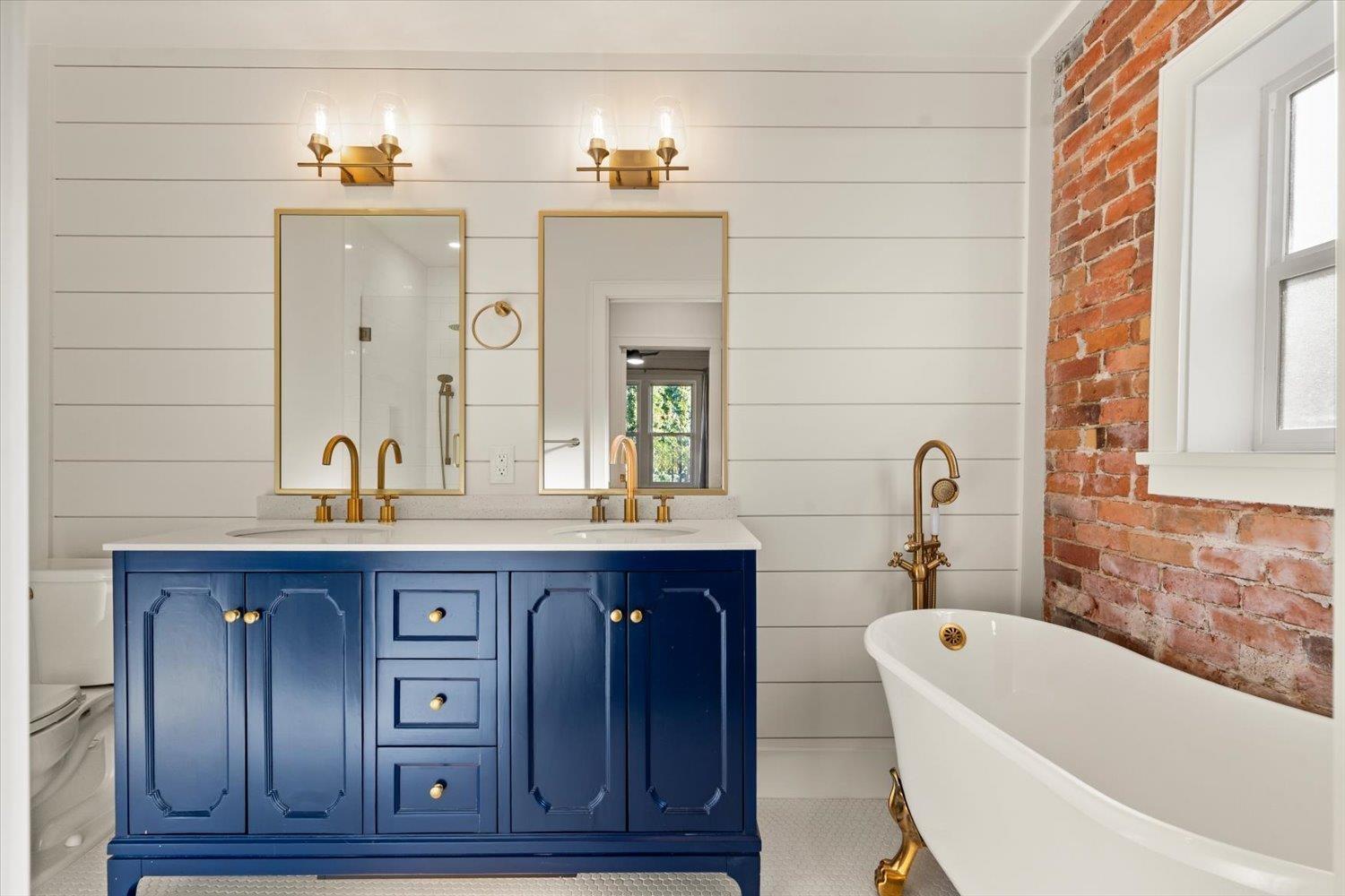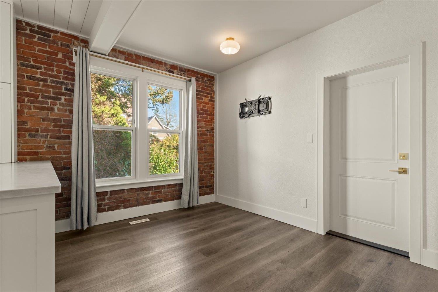 HISTORIC CLAYBURN VILLAGE CHARACTER HOME!! Great location with Lane way access. Classic brick character home with lots of renovations in recent years. Double insulated walls, newer vinyl windows, roof, updated kitchen with dark blue stainless applainces, bathroom with claw foot tub, floating staircase, replaced plumbing and all electrical with a 200amp service with 60amp to sea-can and 50amp car charging plug; new R40 insulation in ceiling, drain-tile around the foundation; heated floor tile in bathroom; new vinyl flooring in kitchen; original hardwood refinished in the bedroom; restored brick interior and exterior. The house is designed to be expanded onto (drawings available) and live comfortably while construction is going on. Very unique opportunity!! (id:44393)