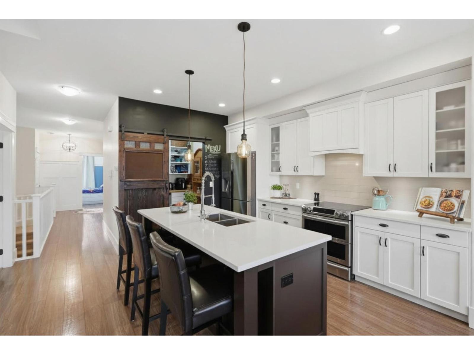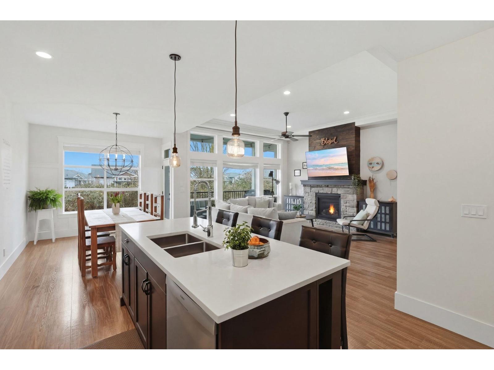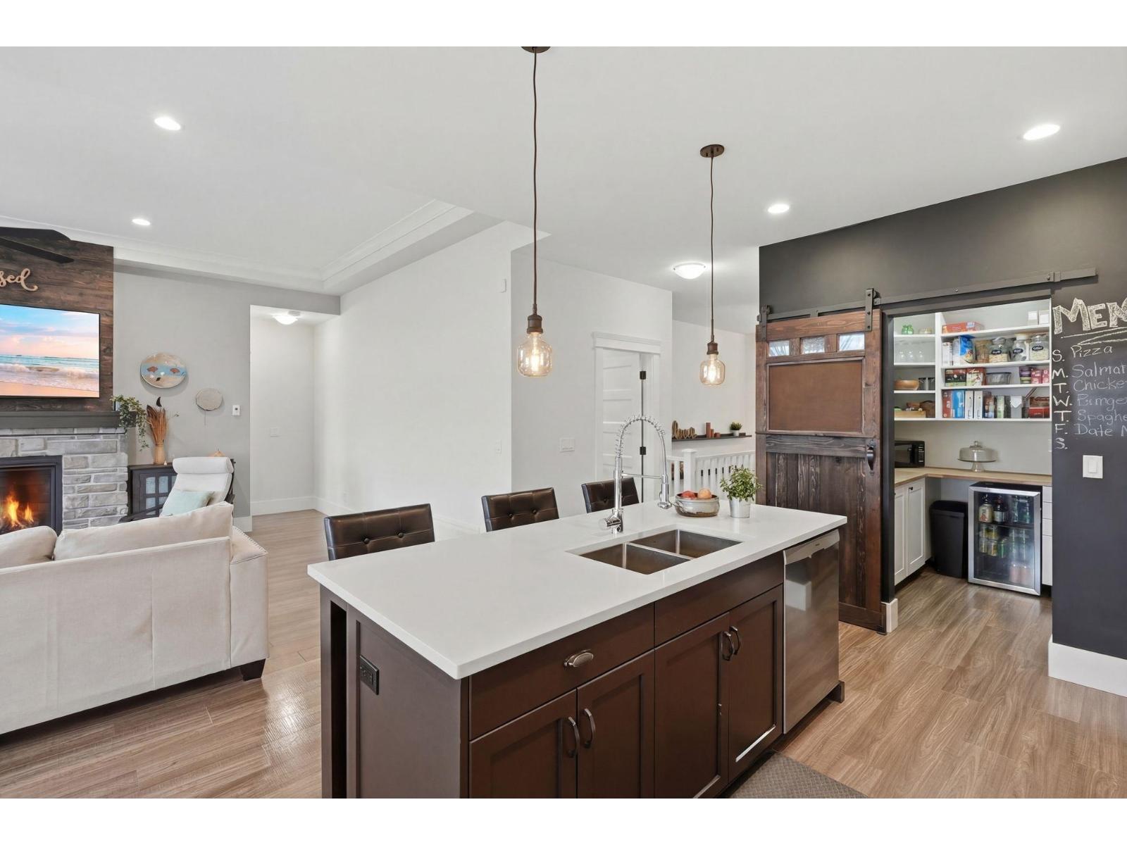 Elysian Village, LARGE lot w/ RV parking... Stunning views in this beautiful 5 Bed 3 Bath home. TONS of features from VAULTED ceilings and HUGE windows to butler's pantry & quartz counters in an entertainer's kitchen; PRIVATE backyard backing on to a creek and a serene space for your balcony w/ gas hookup, to enjoy views of the mountains while BBQ'ing. Enjoy your spa like ensuite in the LARGE Primary Bedroom on the MAIN, or head downstairs to your MASSIVE family room to relax. 5 LARGE bdrms, 2 walk-in closets, large laundry room, smart sensor lights and more... This move-in-ready home comes w/ TONS of parking, including your own RV Parking w/ hook up (power, water & sanni); concrete pad for future hot tub, generator hookup with its own panel, this home has TONS to offer! (id:44393)