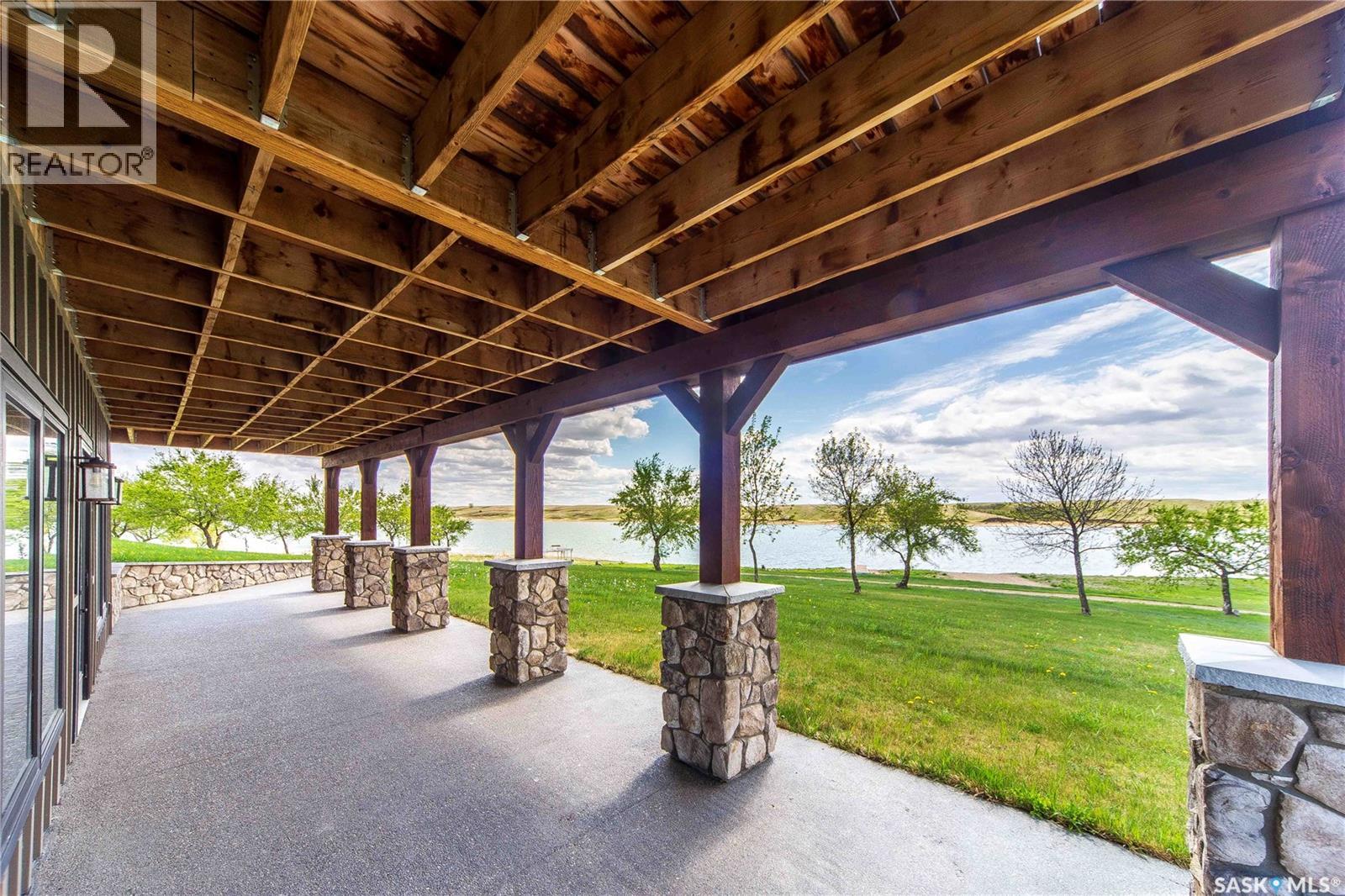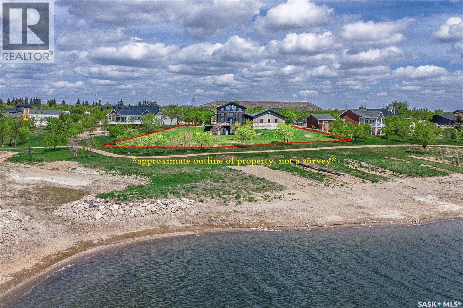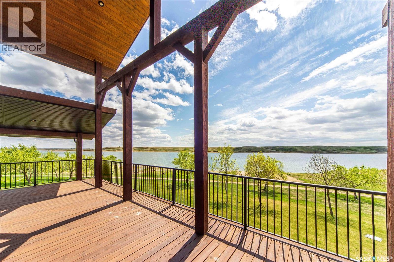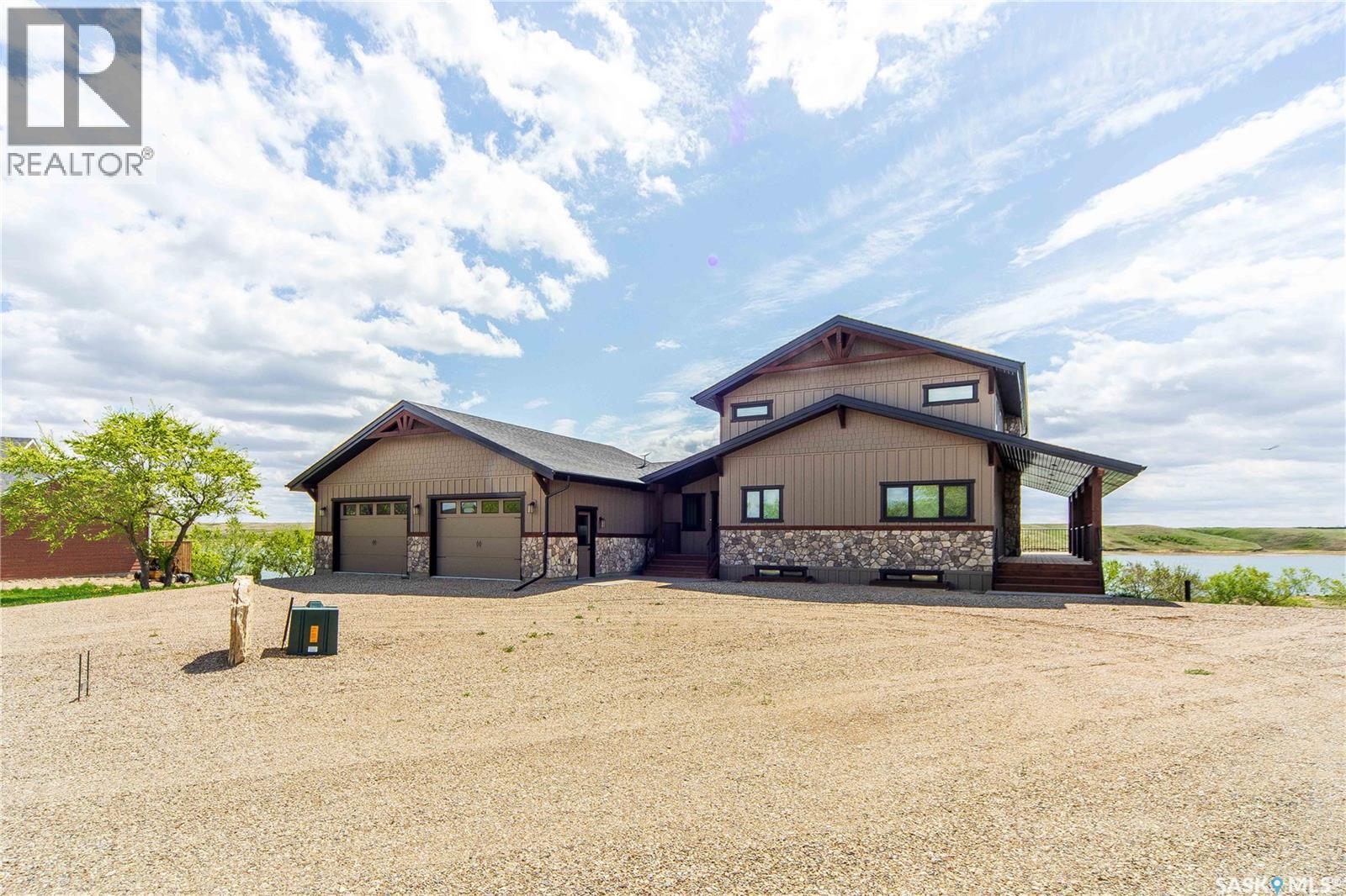 Welcome to 35 Grace Bay. Luxury home built on 2 titled and parcel tied lakefront lots at Sandy Shores Resort on Lake Diefenbaker. 1 hour away from Saskatoon via the recently upgraded Highway 219, this stunning custom-built walkout home is situated on over 0.5 acres with south-facing views of Coteau Bay and over 238 feet of lake frontage. Loft-style floorplan with cathedral ceilings, oversized windows to maximize the southern exposure and lake views, & a grand open-concept living space to offer the finest in lakeside luxury. Rustic finishes including exposed rafters, tongue-&-groove ceilings, wood-burning fireplace with stone hearth, & more. The kitchen offers beautiful cabinetry, stainless steel appliances, & a functional layout with an eating bar & large pantry. Wake up to stunning sunrises over the lake in the spacious loft-style master bedroom, complete with a large walk-in closet & 3-piece ensuite with sit-down shower. The lower level walkout offers a beautiful lake view & opens to the lower patio, complete with 2 bedrooms & a full bathroom. Potential for adding a wet bar or kitchenette in the lower level if desired. The equally amazing outdoor area offers a massive wraparound veranda, unbeatable setup for outdoor entertainment. Massive driveway to ensure there's plenty of parking for your guests of this special home, & an oversized 34'x34' heated attached garage with plenty of room to park a boat trailer & all the toys you'd want to have at the lake. A true 4-season retreat with conveniences like treated community water, year-round maintained roads, sport court, playground, marina, boat launch, community association and more. Lake Diefenbaker offers clear recreational waters, with sandy beaches & world-class fishing opportunities. Property features 2 power feeds to support increased power usage, there is also a shoreline allocation for 2 docks plus a spot in the private mini marina for boat parking. Also extra space for parking or to build more if desired. (id:44393)