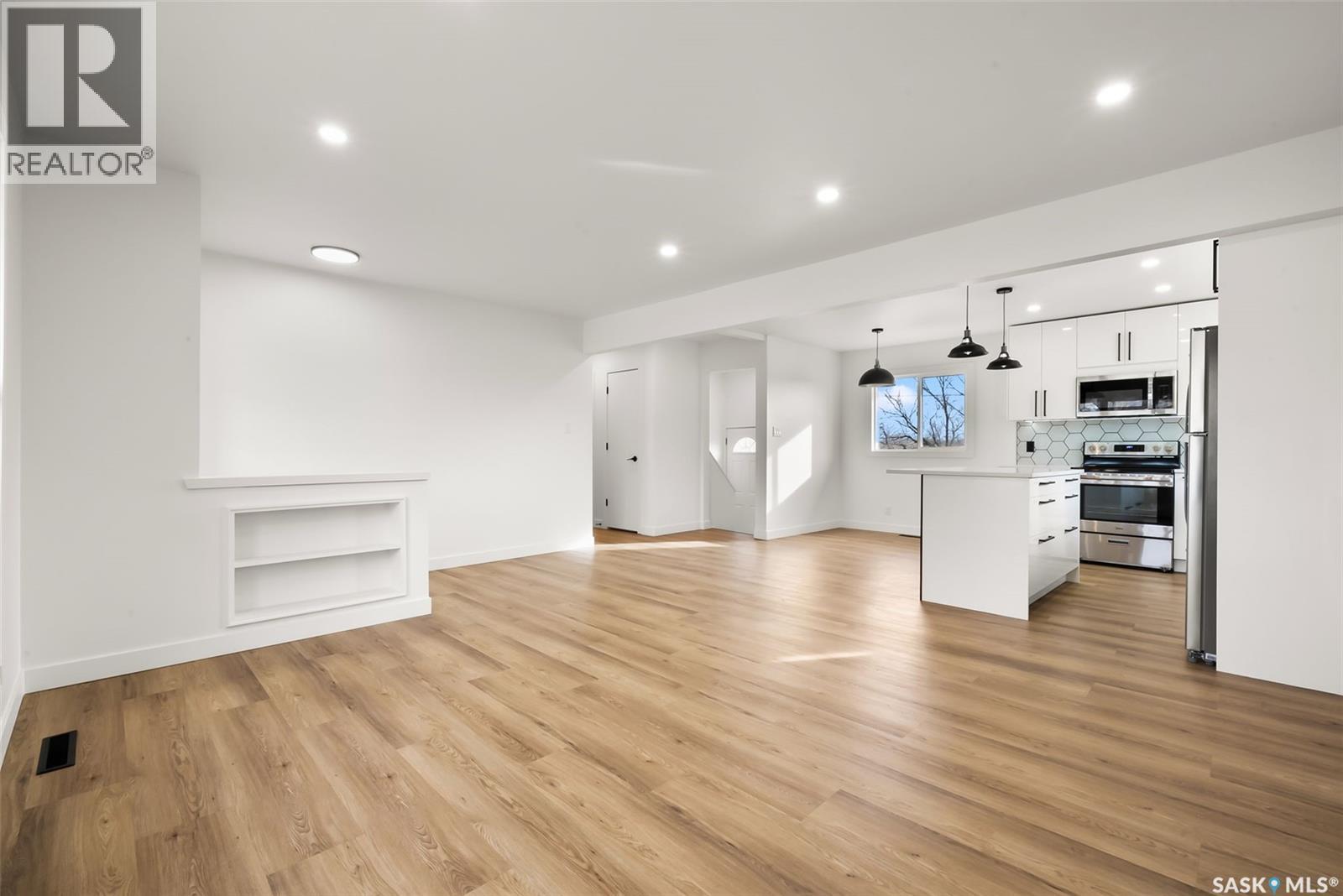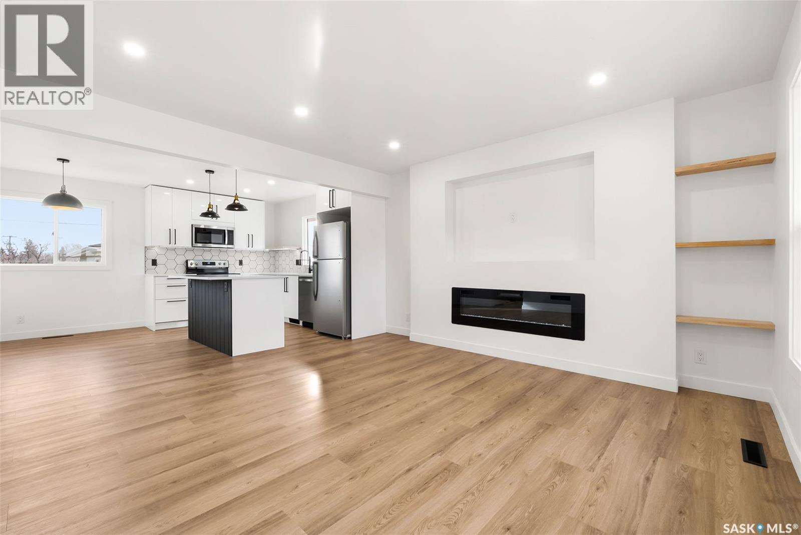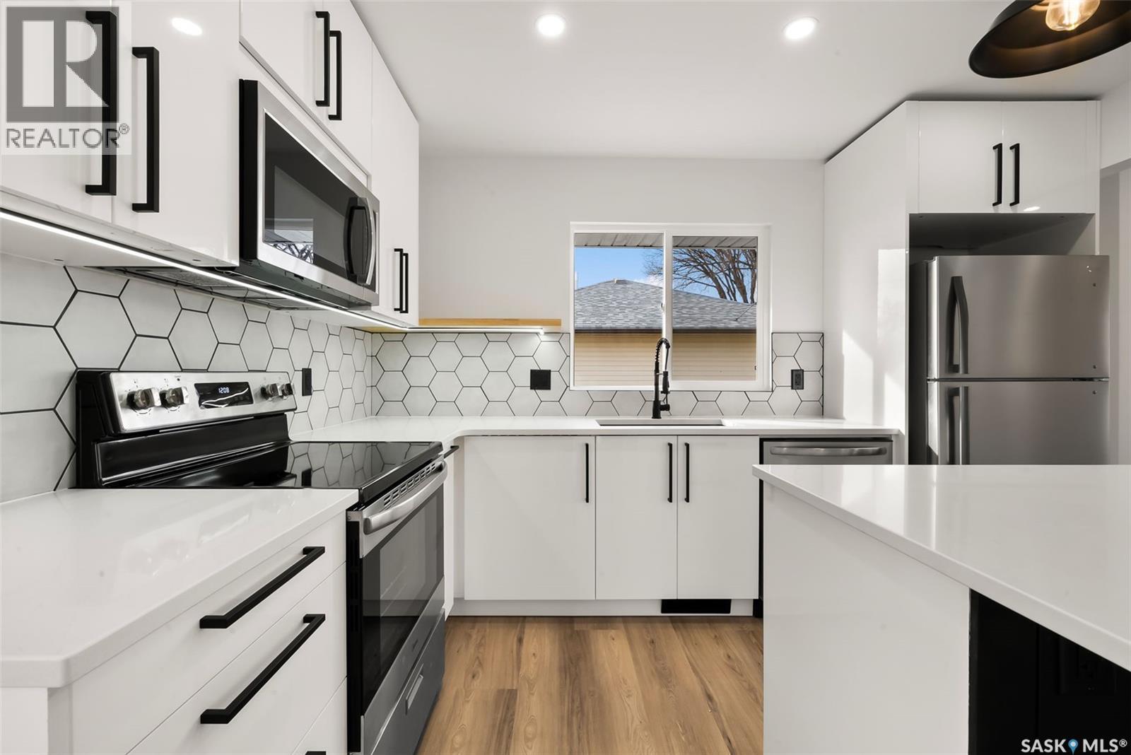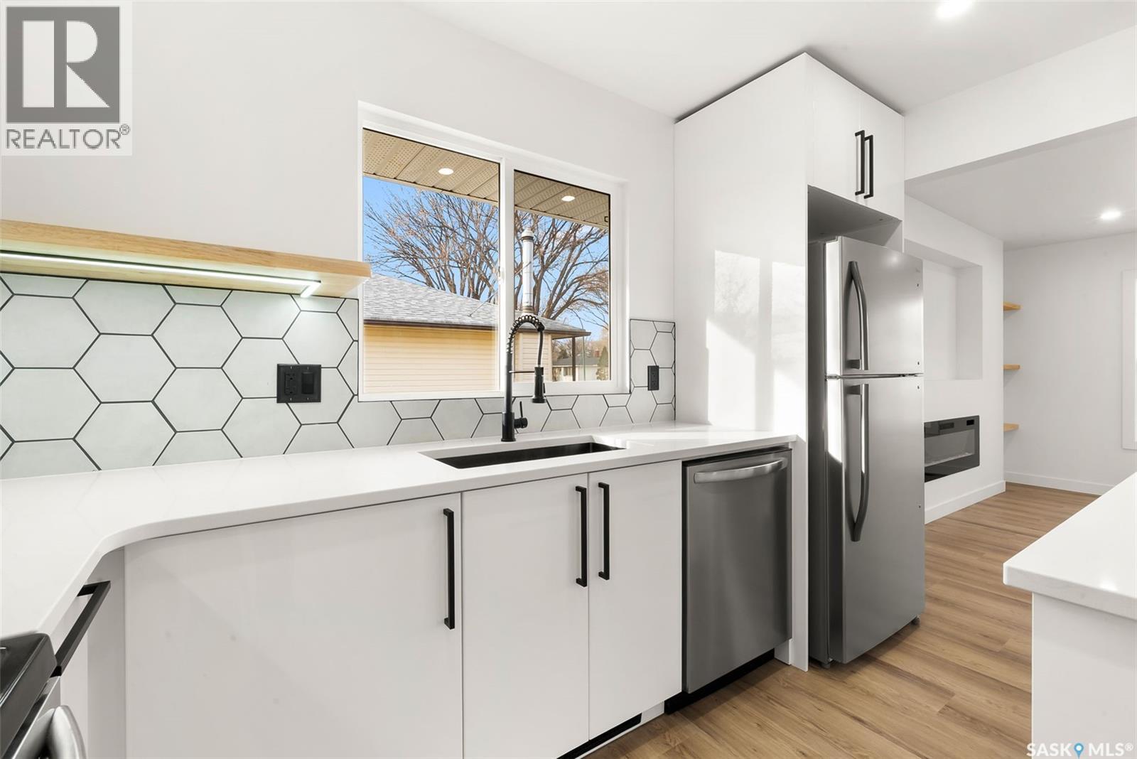 Located on one of the most desirable streets in the quiet Regent Park neighbourhood, this beautifully redeveloped home sits on a 7,000 sq. ft. lot backing green space! Professionally completed by Bouss Construction this property showcases quality craftsmanship and thoughtful design throughout. Step inside to a bright, open-concept main floor featuring sleek vinyl plank flooring and a neutral colour palette that feels fresh and inviting. The kitchen has been completely reimagined for both function and style, with quartz countertops, white cabinetry accented by black hardware, Hevea wood shelving, and a centre island with an eat-up bar. The dining area offers the perfect space for family dinners or entertaining. The living room features large windows and a custom feature wall with a built-in electric fireplace, TV insert and a side shelf for a modern, polished look. Down the hall are three spacious bedrooms and a fully renovated 4-piece bathroom showcasing custom tilework and updated fixtures. The basement extends your living space with a large rec room, a den ideal for a playroom or hobby area, an additional bedroom (window does not meet today’s egress standards), a nicely curated 3-piece bathroom, and a laundry/utility room with extra storage. Outside, you’ll find an oversized single detached garage equipped with a natural gas heater, plus a spacious yard perfect for kids or pets to enjoy. Additional value-added upgrades include new main-floor windows, new shingles on the house and garage, a newer water heater and brand-new kitchen appliances. This turnkey home offers the perfect combination of location, quality, and comfort — a rare find! (id:44393)
