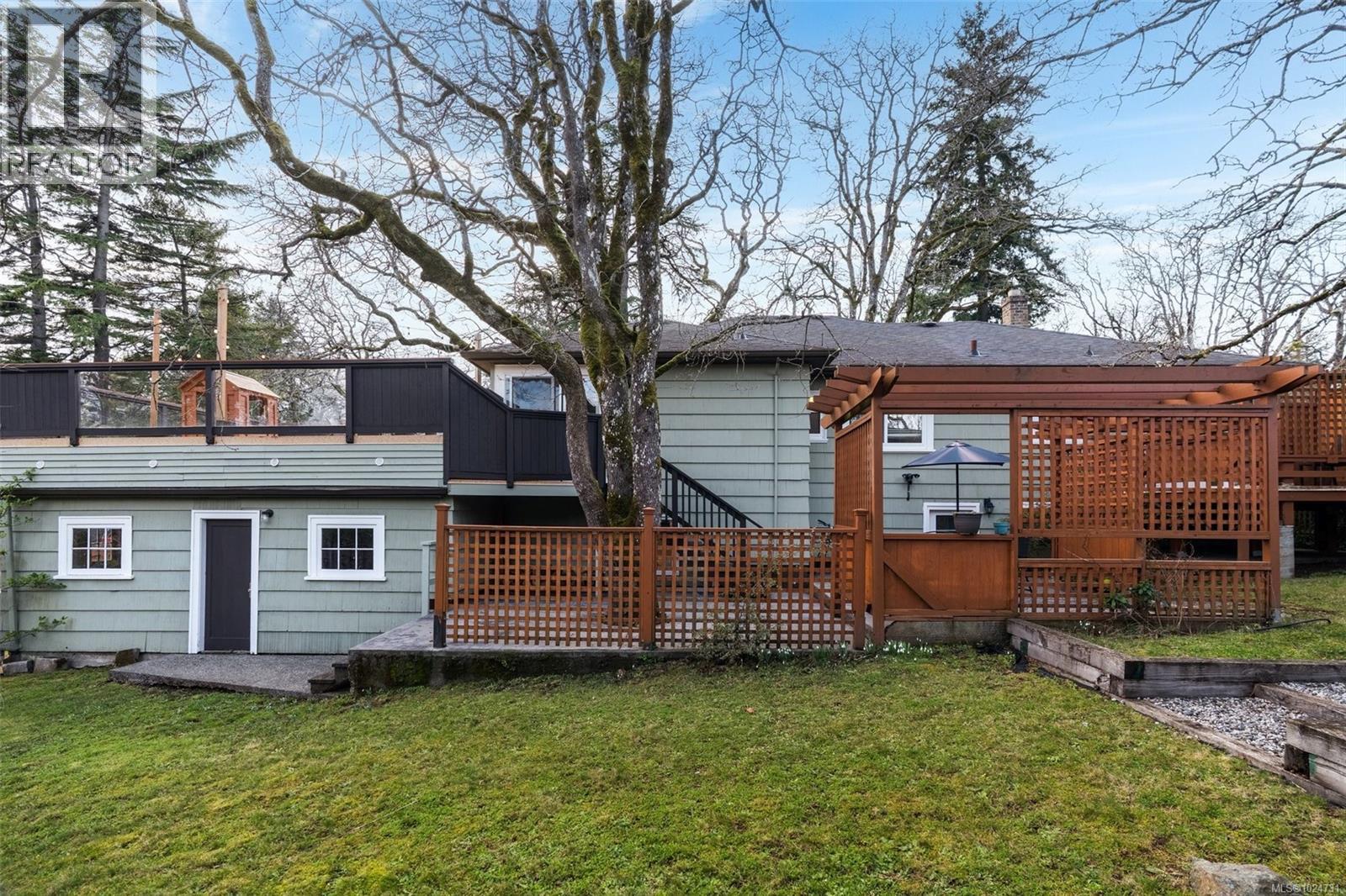 NEW LISTING in one of Victoria’s most sought-after, idyllic areas. This extensively updated yet charming character home offers timeless details and thoughtful improvements, quietly positioned on a central street. The main floor features four bedrooms (two with deck access), two full bathrooms, and separate living, dining, and kitchen spaces. Character details include cove ceilings, oak inlaid and fir floors, rounded corners, a beautiful mantle, wood doors, and era glass knobs. One wood-burning fireplace and one two-sided gas fireplace, along with picture windows, add warmth and charm. The updated kitchen offers stone countertops, a grand island, breakfast nook, stainless steel appliances, and a five-burner gas stove. The primary bedroom includes a built-in vanity area and two closets. The lower level offers two revenue-generating suites, each with private access. In total, the home includes three kitchens, two laundry areas, and four bathrooms, along with ample storage throughout. The fully fenced and gated yard features four decks and excellent outdoor space. Parking is plentiful with a two-car garage and workshop, carport, extra-long driveway, and space for RV and boat parking. Recent updates include refreshed landscaping, interior paint, gutter cleaning, roof demossing, chimney re-pointed eight years ago, 200-amp electrical service, natural gas boiler with radiators (2013), and hot water tank replaced in 2018. Close to schools, the Cedar Hill Chip Trail, Mount Douglas, and offering quick access to downtown, Uptown, and the highway. (id:44393)