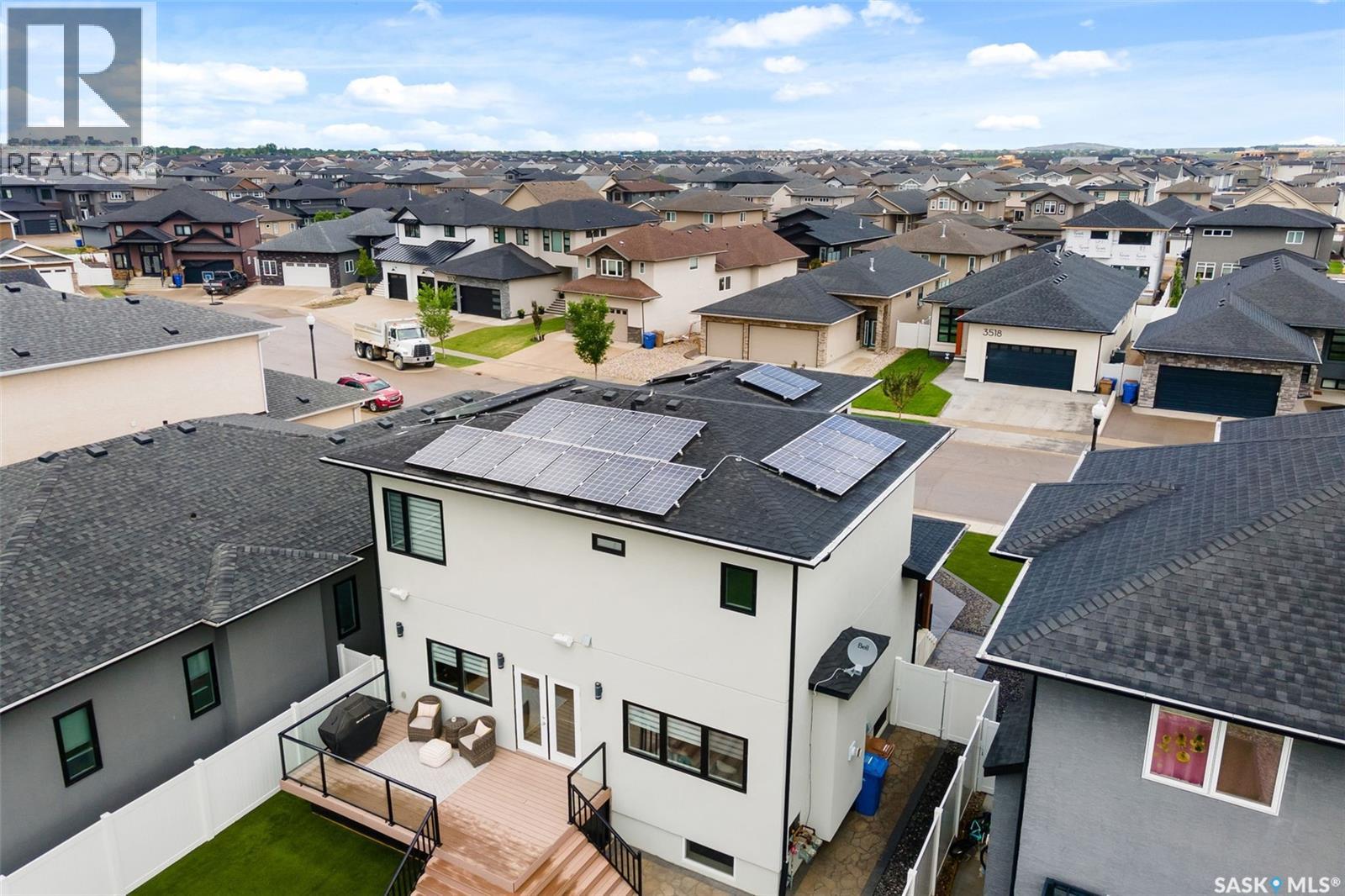Looking for a custom-built, stunning home located in Regina's east end? You need to check out 3517 Green Marsh Crescent, a home that will save you money on your power bill and mortgage payment! This main floor is grand and spacious, with all the modern finishes you've been hunting for. The kitchen is the home's hub with a central eat-up island with storage, updated smart stainless steel appliances, quartz counters, two-toned cabinetry, and white subway tile backsplash. It's open to the substantial dining room and the cozy living room with a gas fireplace and newly installed engineered hardwood floors. A 2pc. bath completes this level. Up the stairs, you'll find a spacious bonus room, perfect for a hang-out space for the kiddos or a home office. The primary suite offers a gorgeous 4pc. Ensuite featuring heated porcelain tile floors, a stand-alone shower, and leads you to the fantastic custom walk-in closet. Two more bedrooms complete the top floor, along with another 4pc. bath and upper floor laundry! Downstairs, you'll find a gorgeous, two-bedroom regulation suite with a separate entrance and 9 foot ceilings that will help you offset your mortgage payments. There's a beautifully landscaped backyard featuring three raised garden beds, a large concrete patio, artificial turf, and a low-maintenance deck. So many extras to include: a double heated garage, solar panels to help with that power bill, built-in speakers, and the blinds. Walking distance from the elementary schools and incredibly close to all the Acre 21 amenities like grocery, gas, and restaurants. This one is an absolute showstopper and needs to be seen in person. Connect with the listing agent for all the details. As per the Seller’s direction, all offers will be presented on 03/30/2026 1:00PM. (id:44393)
