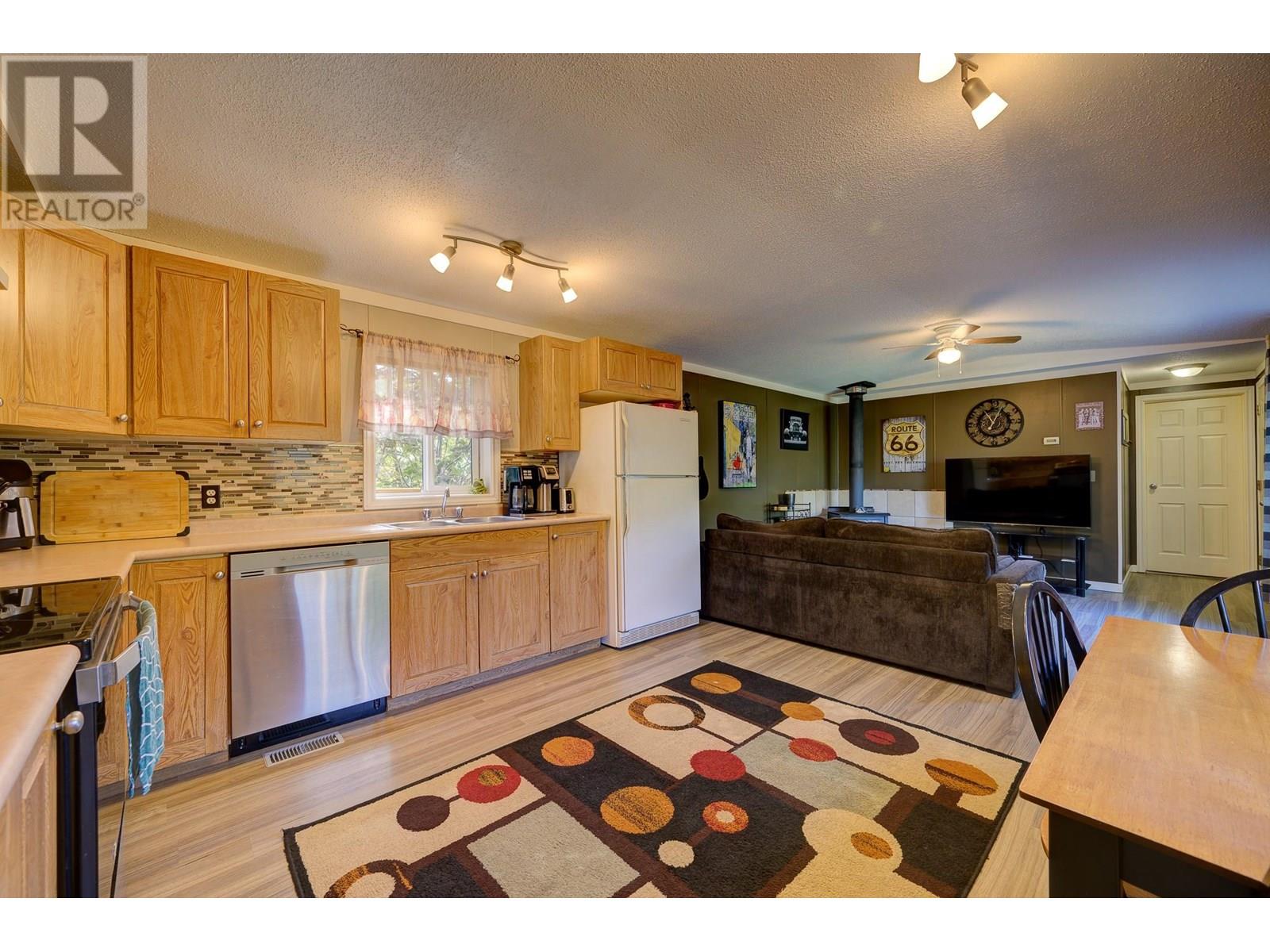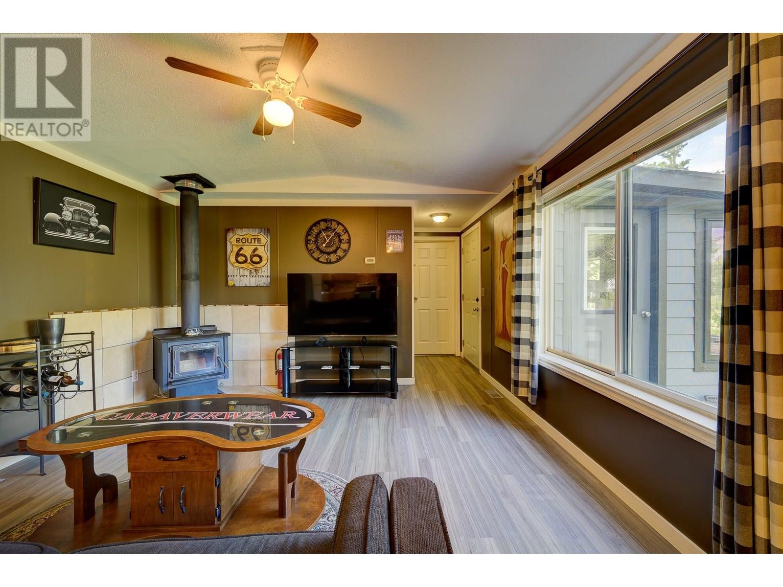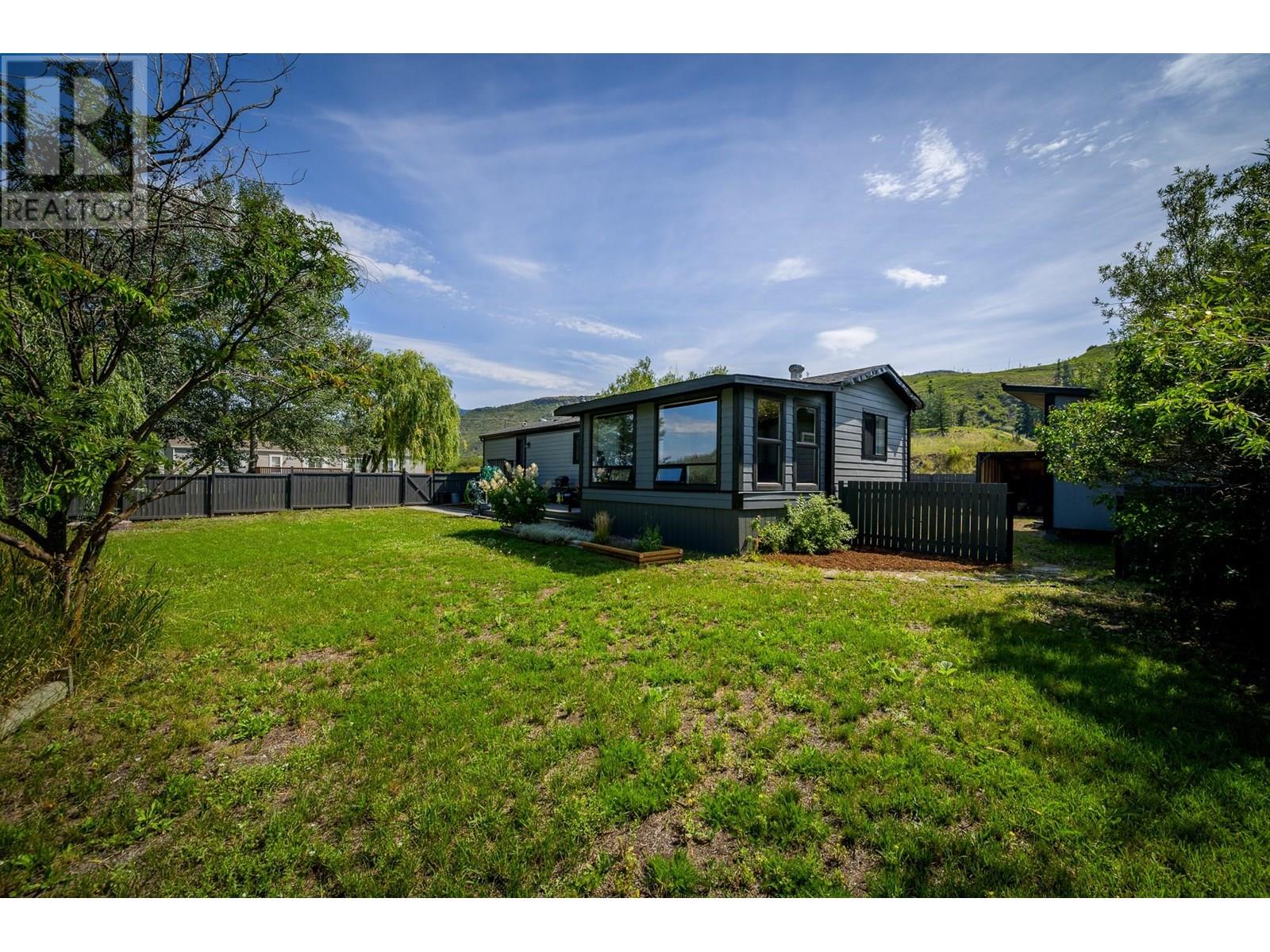 $350 MonthlyPrivate Country Living – Updated 3 Bed Home with Exceptional Yard Discover unbeatable privacy and charm in this updated 3-bedroom, 2-bathroom home, perfectly positioned on one of the most secluded lots in the park. With no neighbours on three sides and a buffer property on the fourth, you'll enjoy the quiet serenity of rural living with unmatched peace and space. The fully fenced yard is a true standout—lush, expansive, and ideal for pets, gardening, or simply soaking in the panoramic mountain views. Whether you're hosting on the large covered deck or enjoying the open green space, the outdoor living here is second to none. Step inside to find vaulted ceilings, updated flooring, and an airy open-concept layout connecting the kitchen and living areas. The home features new Hardie siding, new hot water tank, and a newer roof, ensuring both style and durability. Built in 2003 and 14' wide, this well-maintained home offers comfort and function in every room. Several handy workshop areas provide space for hobbies, tools, or extra storage. Just 5 minutes to Barriere and only 35 minutes to Kamloops, with easy highway access and a school bus stop at the park entrance. Set on the top tier of a quiet, pet-friendly park surrounded by rolling hills and mature trees. Low pad rent includes water, sewer, and snow removal. This is your opportunity for affordable, private country living—book your showing today! (id:44393)