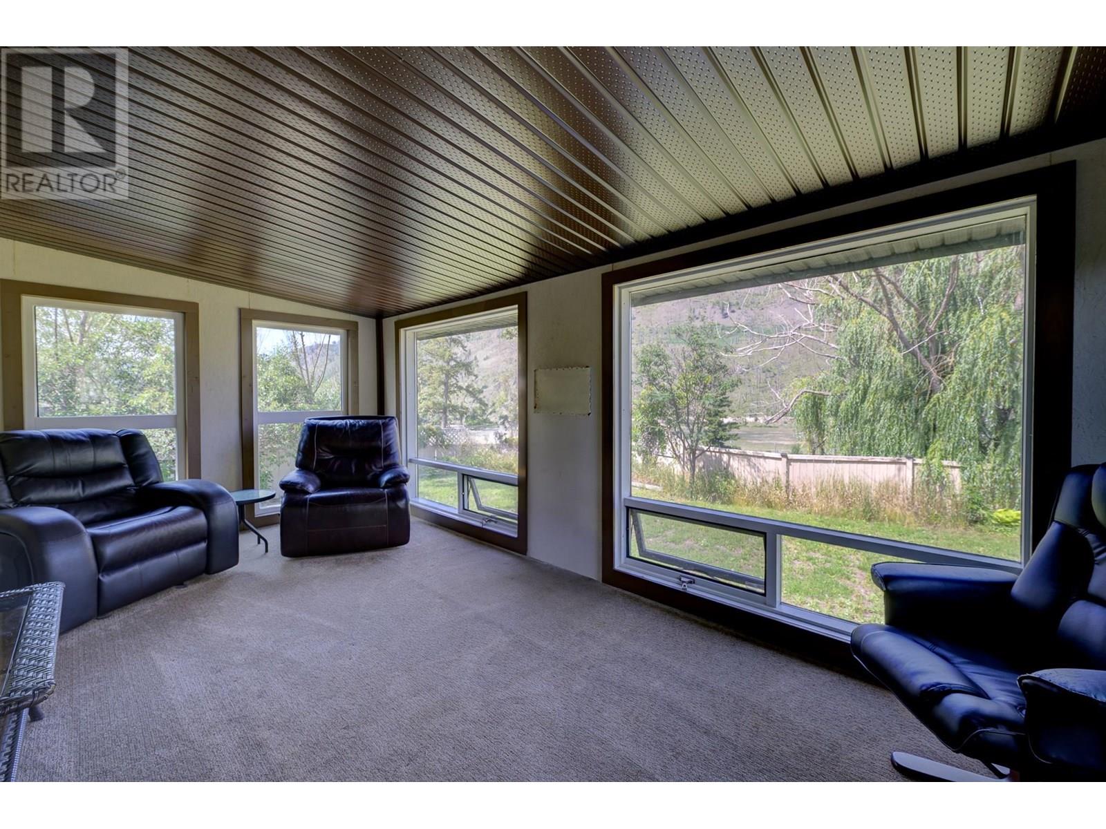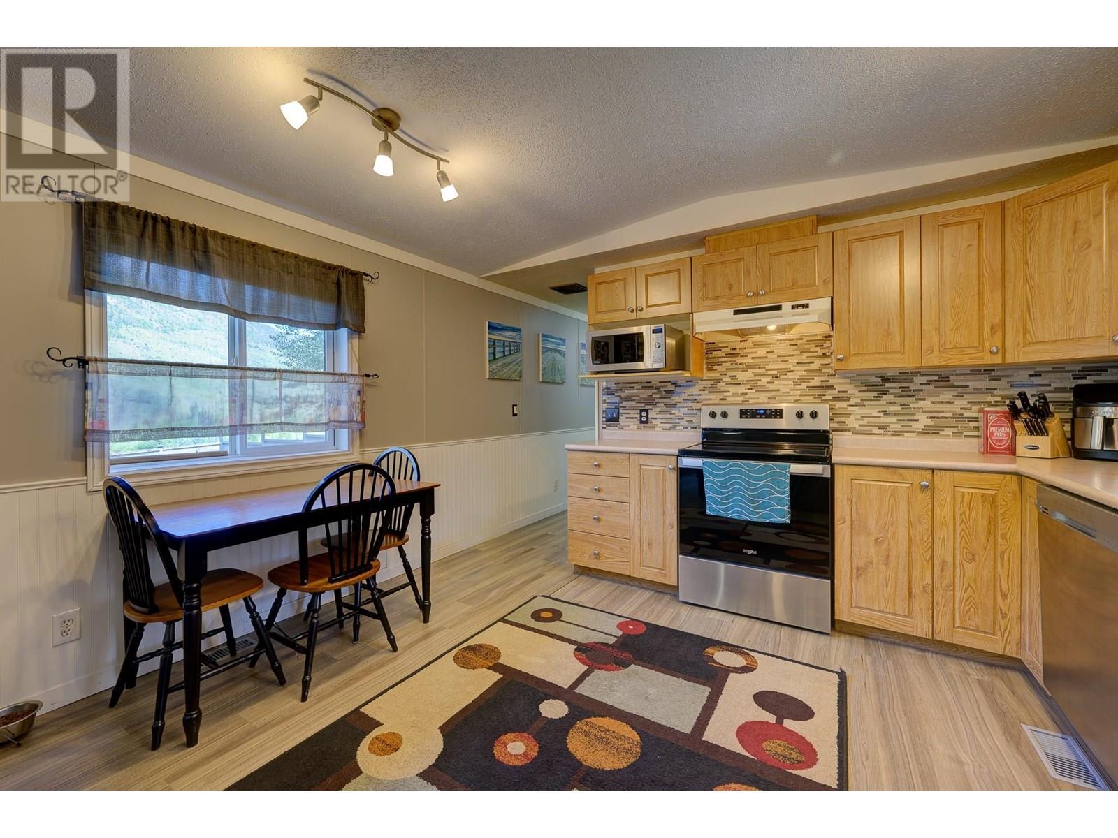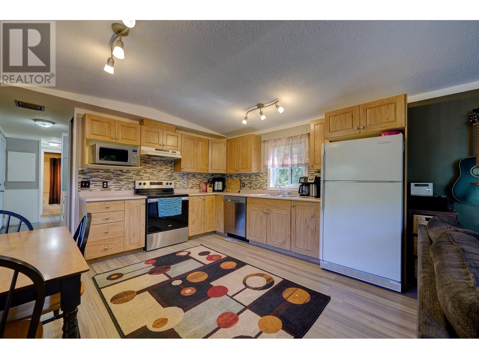 $350 MonthlyPrivate Country Living – Updated 3 Bed Home with Exceptional Yard Discover unbeatable privacy and charm in this updated 3-bedroom, 2-bathroom home, perfectly positioned on one of the most secluded lots in the park. With no neighbours on three sides and a buffer property on the fourth, you'll enjoy the quiet serenity of rural living with unmatched peace and space. The fully fenced yard is a true standout—lush, expansive, and ideal for pets, gardening, or simply soaking in the panoramic mountain views. Whether you're hosting on the large covered deck or enjoying the open green space, the outdoor living here is second to none. Step inside to find vaulted ceilings, updated flooring, and an airy open-concept layout connecting the kitchen and living areas. The home features new Hardie siding, new hot water tank, and a newer roof, ensuring both style and durability. Built in 2003 and 14' wide, this well-maintained home offers comfort and function in every room. Several handy workshop areas provide space for hobbies, tools, or extra storage. Just 5 minutes to Barriere and only 35 minutes to Kamloops, with easy highway access and a school bus stop at the park entrance. Set on the top tier of a quiet, pet-friendly park surrounded by rolling hills and mature trees. Low pad rent includes water, sewer, and snow removal. This is your opportunity for affordable, private country living—book your showing today! (id:44393)