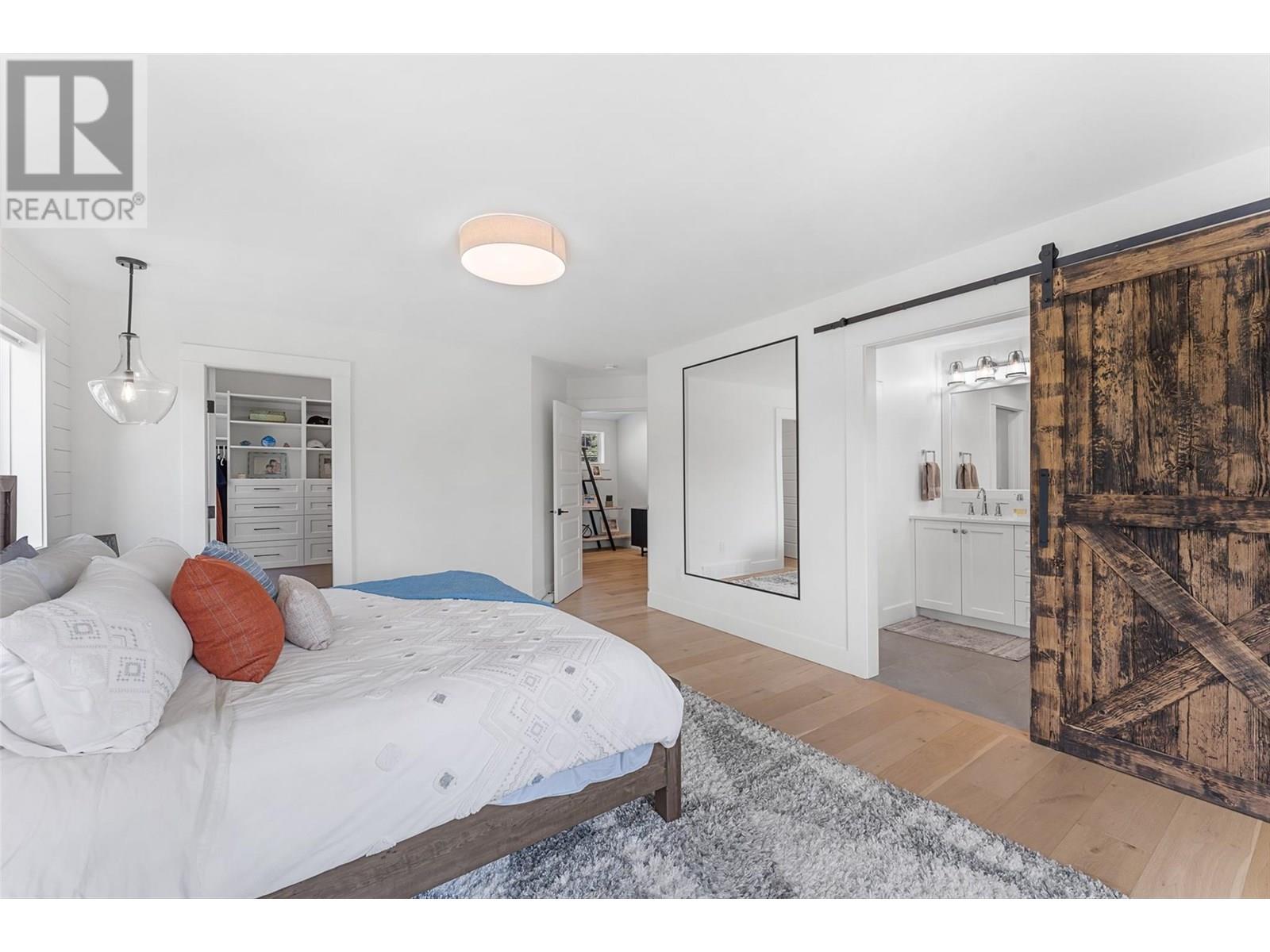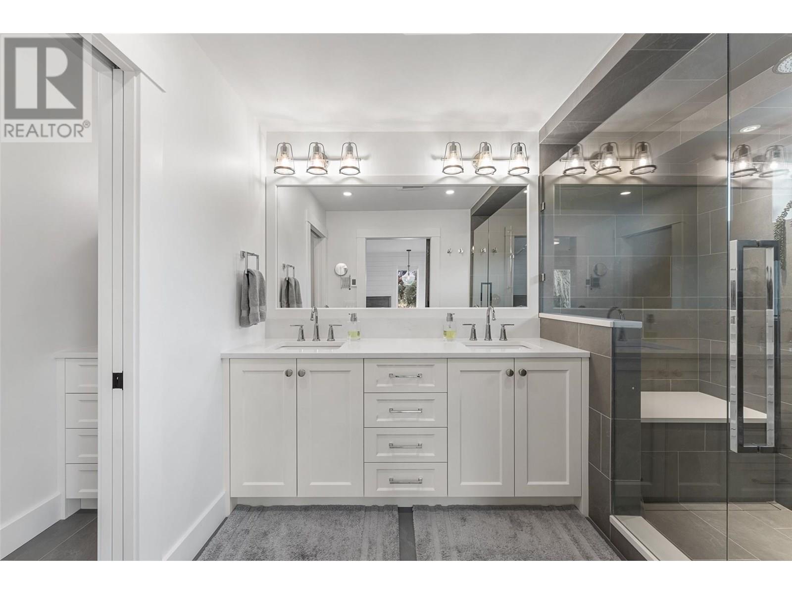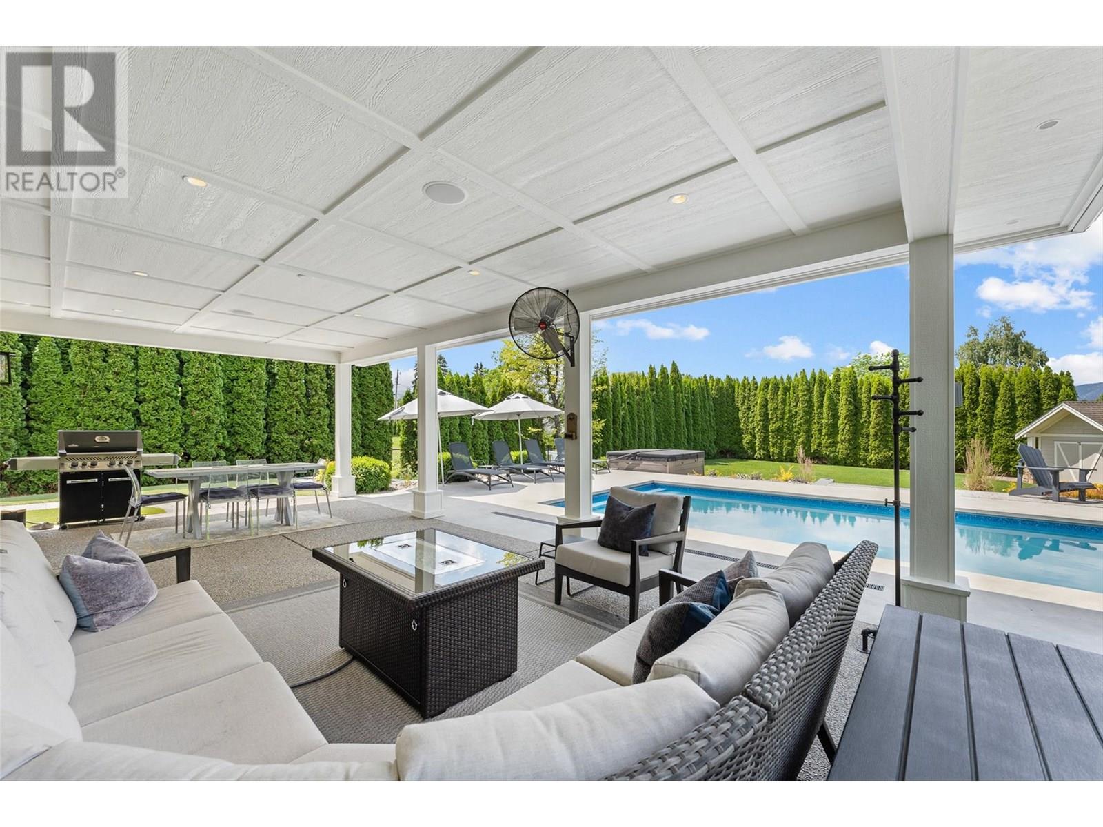 Gracefully positioned behind a gated entry on a manicured 0.42-acre property, this is a timeless craftsman-style residence offering privacy, a functional layout, and resort-style amenities just minutes from Kelowna’s finest conveniences. Showcasing exceptional quality throughout, this 4-bedroom, 5-bathroom home is designed for elevated everyday living. The chef’s kitchen is anchored by a generous sized center island, quartz countertops, and premium KitchenAid appliances, flowing seamlessly into the dining and living areas where wide-plank hardwood, custom built-ins, and a stone-clad gas fireplace create an atmosphere of luxury. French doors lead to an exceptionally private outdoor sanctuary complete with a covered lounging area, integrated audio, natural gas hookup, and a heated saltwater pool, a spa surrounded by mature cedar hedging, tiered gardens, and lush lawn. Thoughtful design extends indoors with a main-floor gym and ensuite, a versatile office, and a mudroom with built-in storage. Upstairs, the expansive primary retreat offers a spa-like ensuite with heated tile floors and a walk-in shower. Three additional bedrooms, a five-piece bath, laundry, and a bonus room with wet bar provide generous space for family and guests alike. The oversized triple garage is fully finished with epoxy floors, built-in cabinetry, and RV parking. This is a rare opportunity to own a gorgeous residence in a quiet, coveted enclave. (id:44393)
