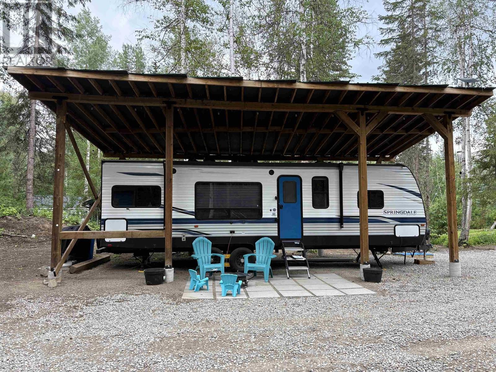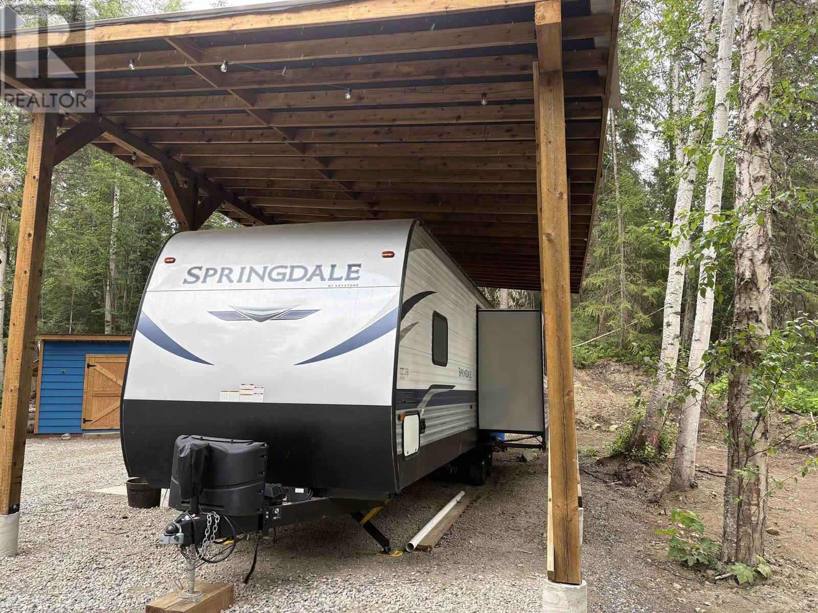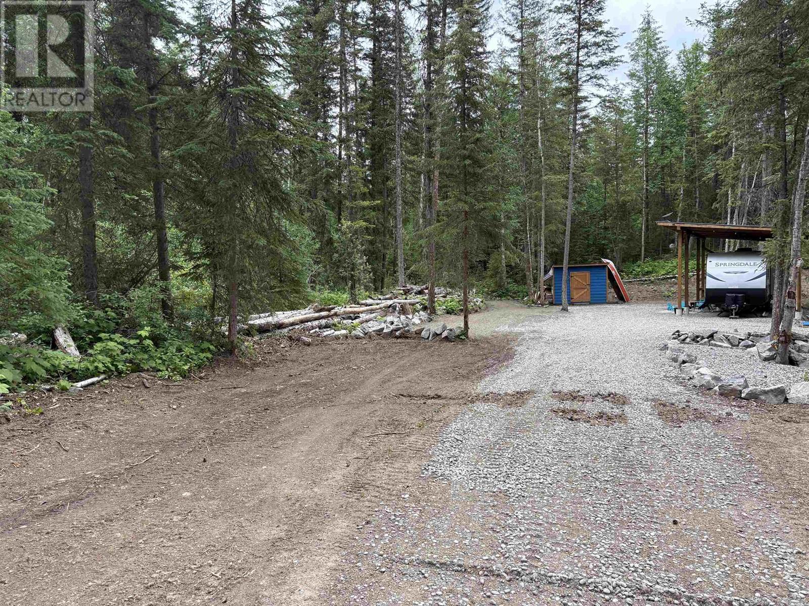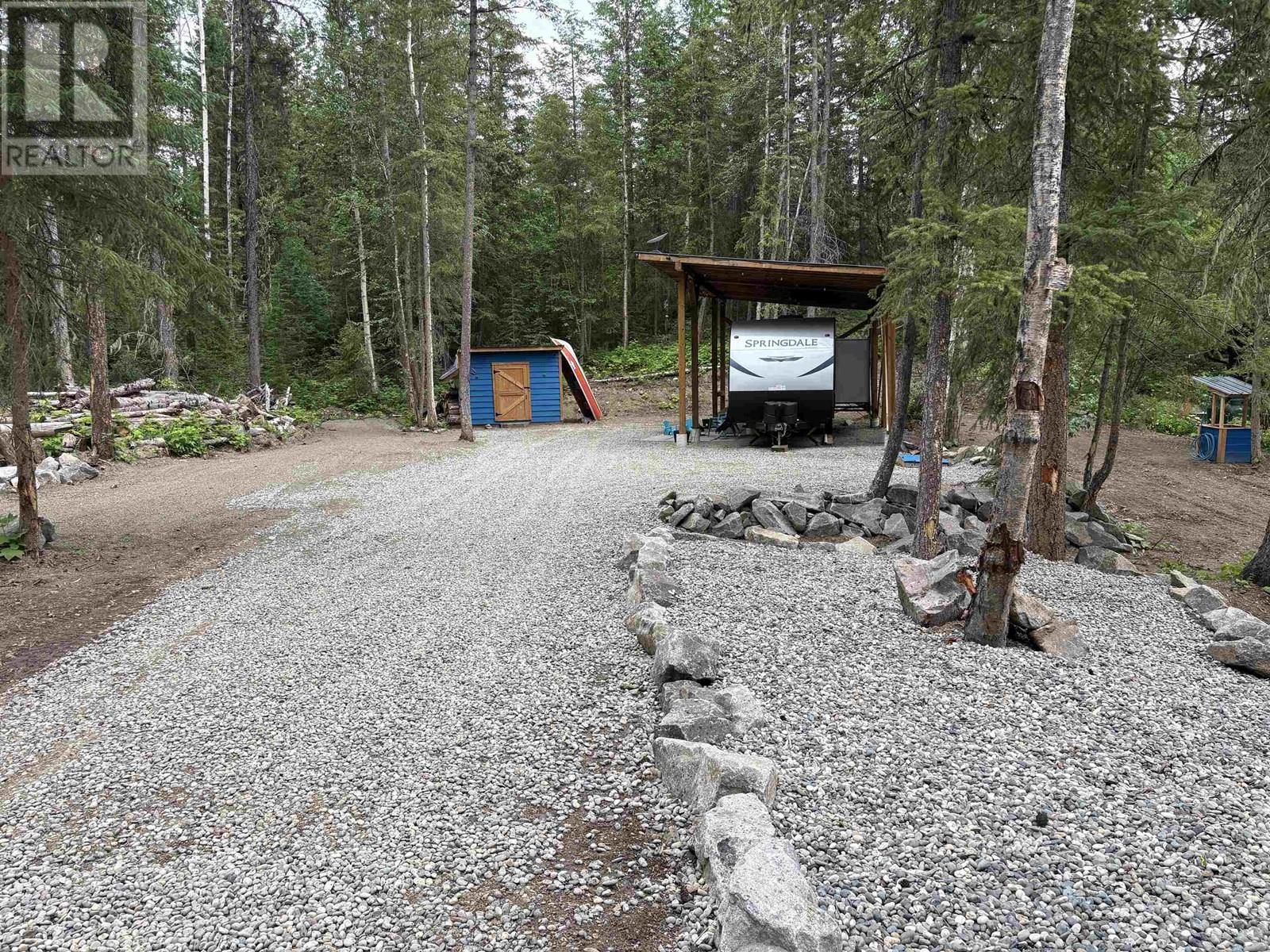 Looking for an affordable complete package to get a way from it all? This beautiful lot on Candle Drive at Hawkins Lake fits the need. This property contains a 500 gallon waste holding tank, electricity (200 amp service), a 35'x20' RV shelter, and a 12'x8' storage shed this is set up perfectly. The lot is cleared, driveway is in and some nice landscaping as well. Hawkins Lake is within walking distance, Canim Lake just 10 minutes away. Canoe, kayak, fish, hike, kick back with a coffee - unlimited options to enjoy what the Cariboo offers. Travel trailer on property must be purchased separately and directly from the Seller. (id:44393)