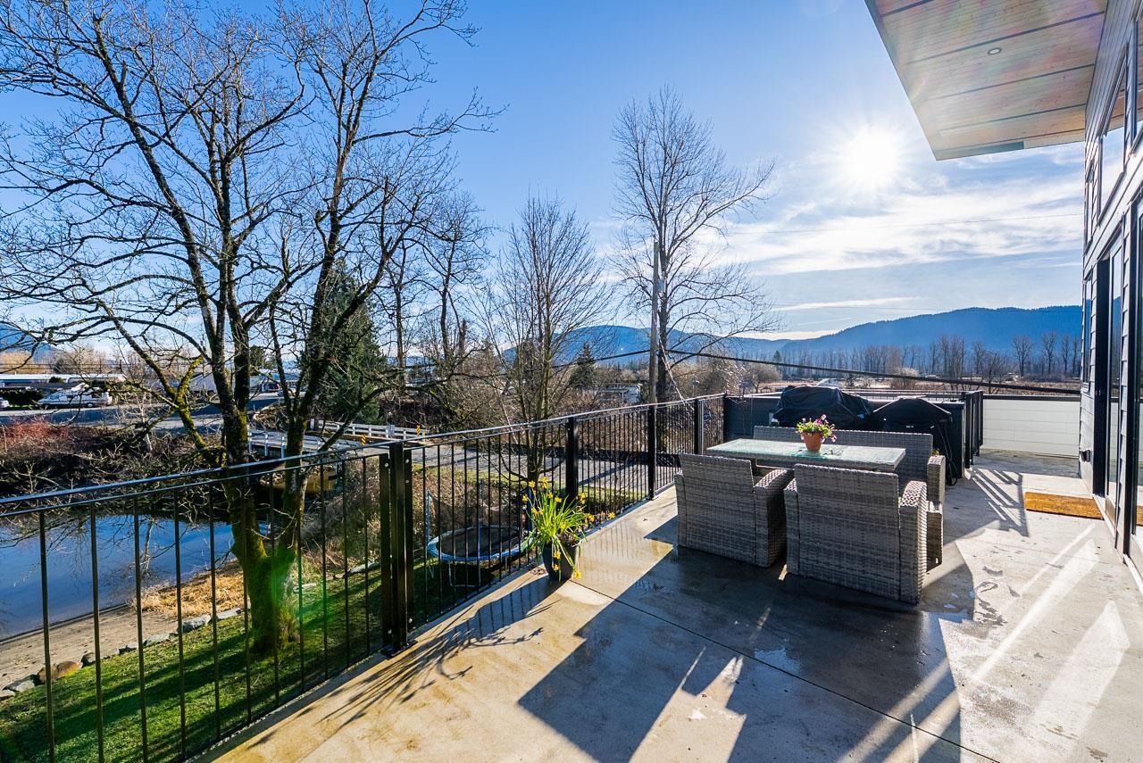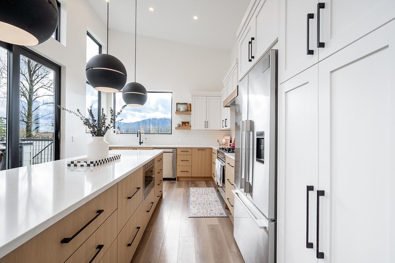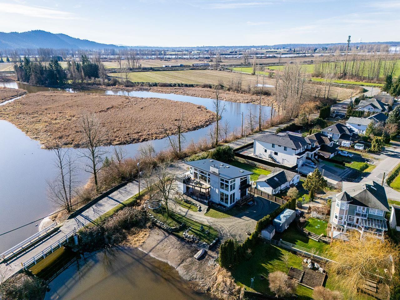Contemporary waterfront living on Hatzic Lake in this Sarah Gallop-designed home offering 3 bedrooms, 3 bathrooms plus a versatile studio suite. Expansive windows, skylights in every room, and soaring ceilings flood the home with natural light and frame stunning lake and mountain views. The open-concept main floor flows to a lakeview deck, perfect for entertaining. The chef's kitchen features Fisher & Paykel appliances and a generous island. Enjoy Loxone Smart Home automation, in-floor heating in the basement, foyer, and garage, plus an oversized garage. Private boat launch, RV parking with hookups, and exceptional short-term rental potential complete this rare lakefront offering. (id:44393)