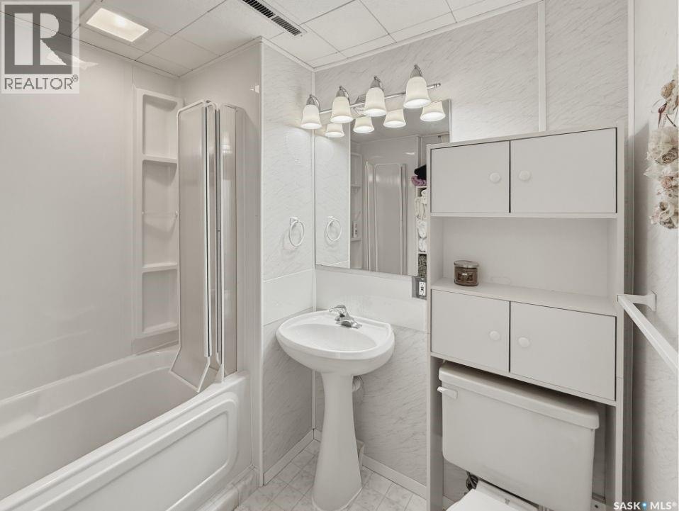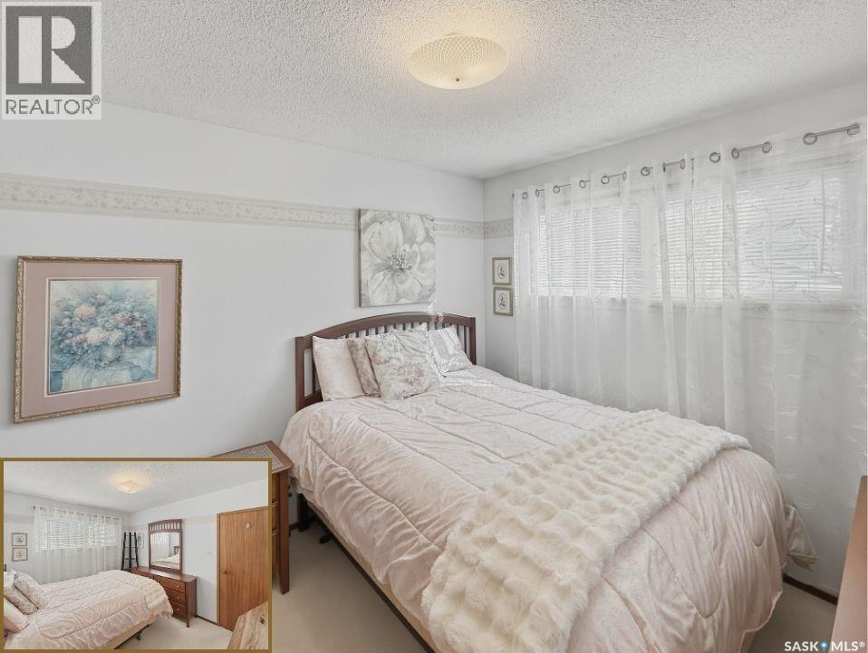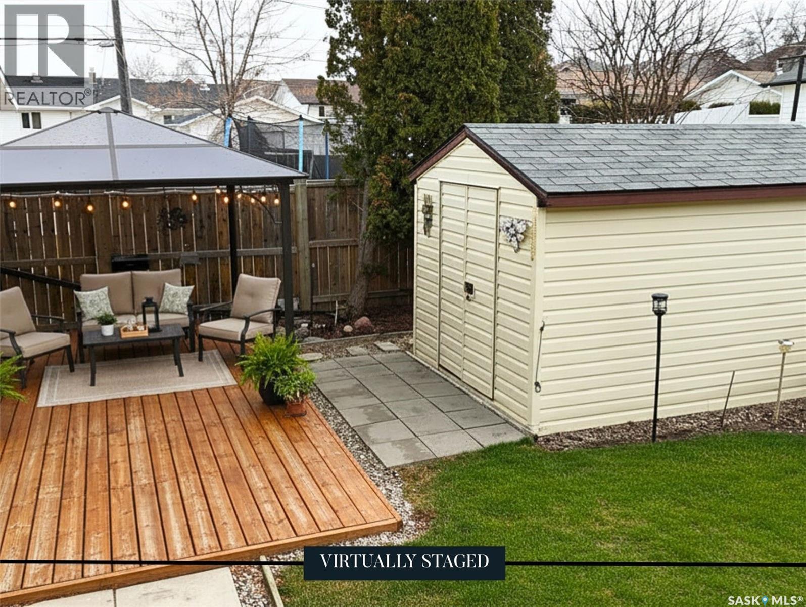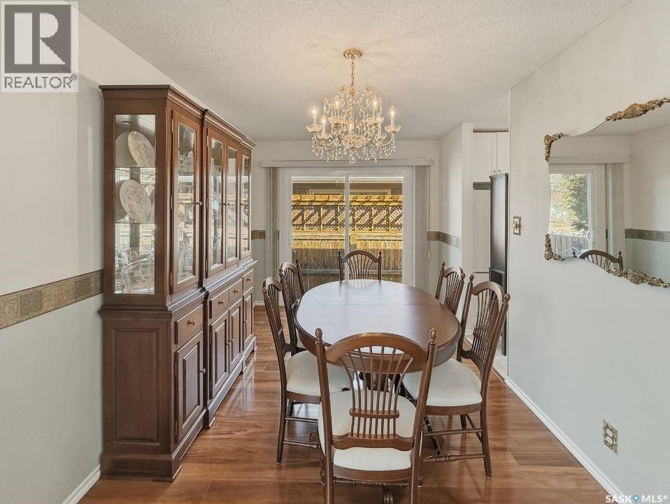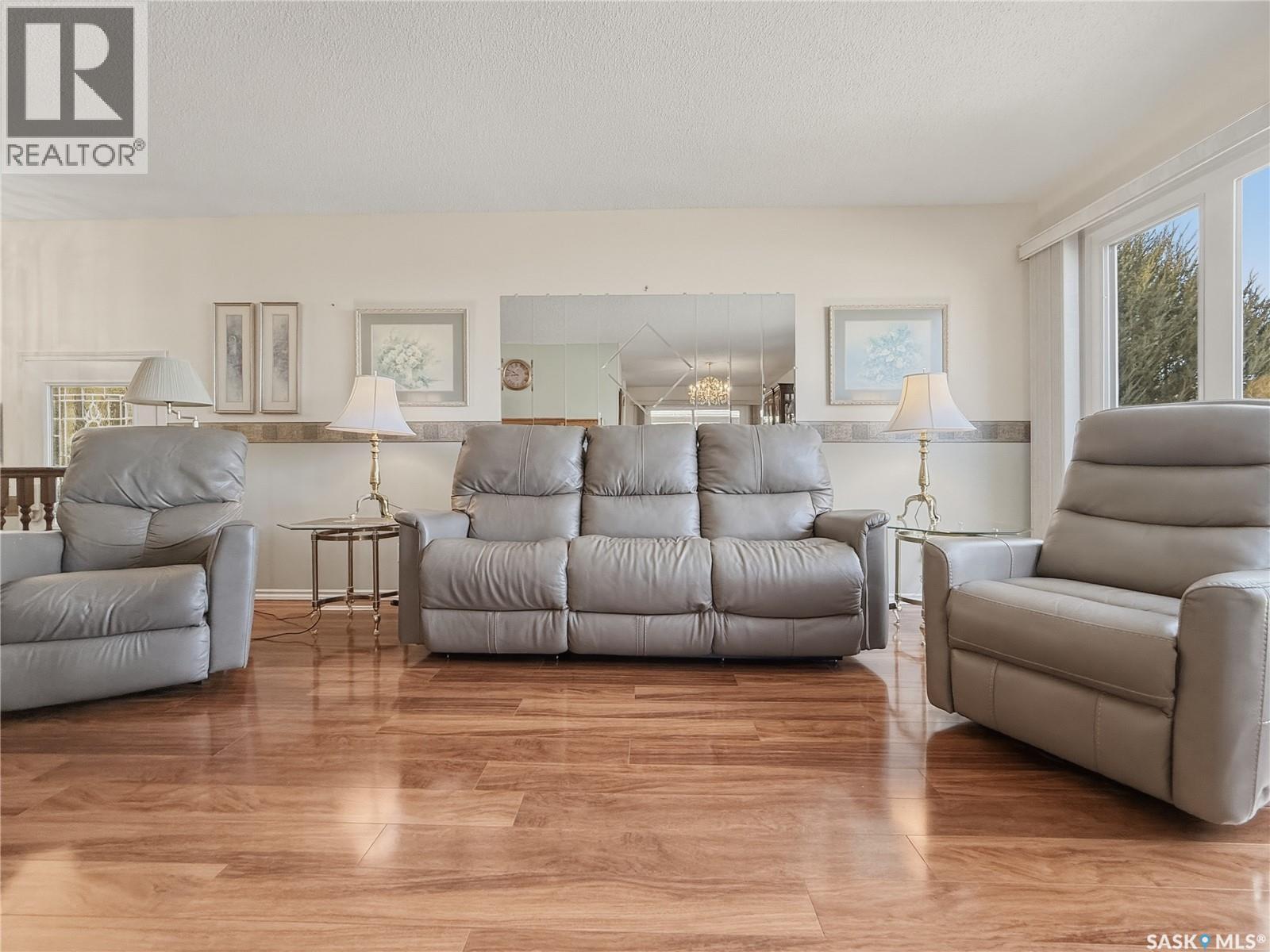 Tucked away on a quiet cul-de-sac in Swift Current’s sought-after southeast, just blocks from the Chinook Pathway and golf course, and within walking distance to Pioneer Co-op (grocery, gas bar, and liquor), this spacious bungalow checks all the boxes for location and lifestyle. Offering 3+2 bedrooms, the layout is both functional and inviting. The main floor features a bright L-shaped living and dining area with oversized north-facing windows that flood the space with natural light. A patio door off the dining room leads to a sun-soaked, private deck spanning the length of the home—perfect for morning coffee or easy entertaining. The kitchen is well-appointed with an abundance of white cabinetry and an east-facing window. Three bedrooms are located on the main, including a primary suite with a 2-piece ensuite and south-facing window. The main 4-piece bath has been updated with a Bath Fitter tub and modern vanity. Downstairs offers excellent additional living space with a cozy family room featuring built-in bookshelves and a gas fireplace, two more bedrooms, a 4-piece bath, laundry, and a dedicated storage room. An energy-efficient furnace adds comfort and efficiency. Outside, the property continues to impress with a single attached garage plus a double detached heated garage with workbench—ideal for projects, storage, or the enthusiast. The private backyard is designed for entertaining, complete with a second deck, included gazebo, and two natural gas hookups for BBQ or outdoor heating. Shingles are approximately 10 years old and main floor windows are PVC. A well-rounded home in a prime location—move in and enjoy. (id:44393)