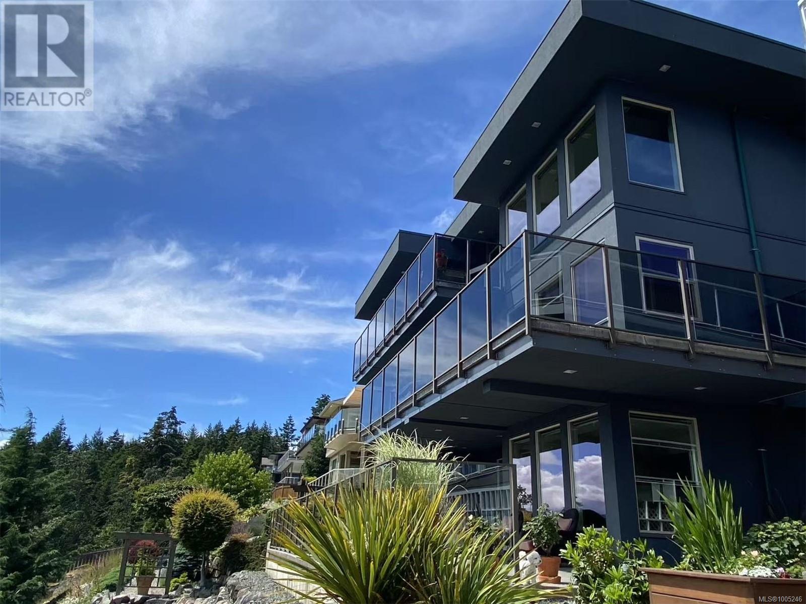 This stunning custom-built contemporary home offers breathtaking panoramic views of Departure Bay, Georgia Strait, Newcastle, Protection and Gabriola Islands, as well as the city lights of Nanaimo. With 4,109 sq. ft. of thoughtfully designed living space, this three-level engineered home is a rare opportunity to own one of Nanaimo's finest properties, featuring high-quality craftmanship, modern architecture, and top-tier finishes. The bold 8'x4' custom metal entrance door sets the stage for what's inside. The open-concept living areas boast 11-ft ceilings, allowing natural light to fill the space while showcasing stunning ocean and city views. Expansive concrete decks with glass railings on each level provide perfect spots to take in passing BC Ferries, floatplanes, and pleasure crafts, as well as seasonal fireworks and the famous bathtub race. Built for strength and longevity, this home features engineered steel I-beam construction, commercial-grade stucco with a rain screen system, and a triple-layer roof membrane for excellent weather protection. A three-level elevator ensures easy access to every floor, making this residence ideal for all ages. Additional highlights include oversized concrete driveway with extra RV parking, two high-end York heat pumps, 2 luxurious fireplaces, and 8' solid wood interior doors with premium hardware. For added convenience, the home has two hydro meters, separating the main residence from the legal suite, offering potential rental income or space for extended family. Every detail has been carefully designed to provide exceptional quality, luxury, and functionality. This is more than just an oceanview home-it's a rare opportunity to own a truly special property in one of Nanaimo's most desirable neighborhoods. Don't miss out-schedule your private viewing today! (id:44393)
