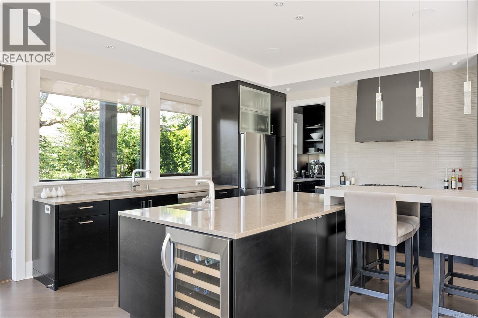 Architectural Masterpiece on Arbutus Ridge. Discover this stunning 2011 custom-built residence by architect Dan Boot (DB3), where modern elegance meets sophisticated design. This exceptional 4300 sq ft, 4-bedroom, 4-bathroom home showcases modern design and functionality. Entering the home, the harmonious elements will leave you speechless – floor to ceiling windows, warm oak floors, a floating staircase, polished concrete features, and bountiful light throughout. The main floor is suited for entertaining or family gatherings with the living room, dining room and kitchen seamlessly flowing together – all with access to the south facing large patio. Upstairs is the gorgeous primary with southerly views, a spa-like ensuite and an enviable walk in wardrobe. Two more bedrooms, guest bathroom and oversized laundry complete the floor. Downstairs is where the fun begins. A purpose-built gym with walk out to the hot tub, a large media room with surround sound, a flex area with direct access to wine room, an office and a 4th bedroom with guest bathroom. Interior design by Sandy Nygaard creates an atmosphere of refined sophistication throughout. The large lot has been professionally landscaped with perennials, a zen water feature, and irrigated gardens. A 2 car garage with finished floor, an elegant pavered driveway and a separate storage/shop complete this property. This is rare luxury at its finest. (id:44393)