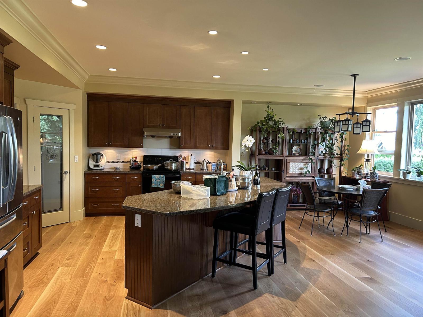 Custom built home offered in a quiet setting between Ironwood & Morgan Creek areas. Solid built a 2 storey home with a partial walkout basement, offers great natural light in the basement area(1 bdrm unauthorized rental suite with separated entry). Main floor is a Great Room plan with high ceilings and open to the kitchen & living areas, hardwood floors, 9' ceilings. Spacious kitchen with large island & counter seating area, granite counters & backsplash, walk-in pantry. Covered rear wood 19'x20' deck area overlooks private east facing back yard & ideal outdoor living area. A very warm comfortable home, ideal for families with lots of space inside & out. Home is in excellent condition, shows very well. Quiet no thru street. (id:44393)