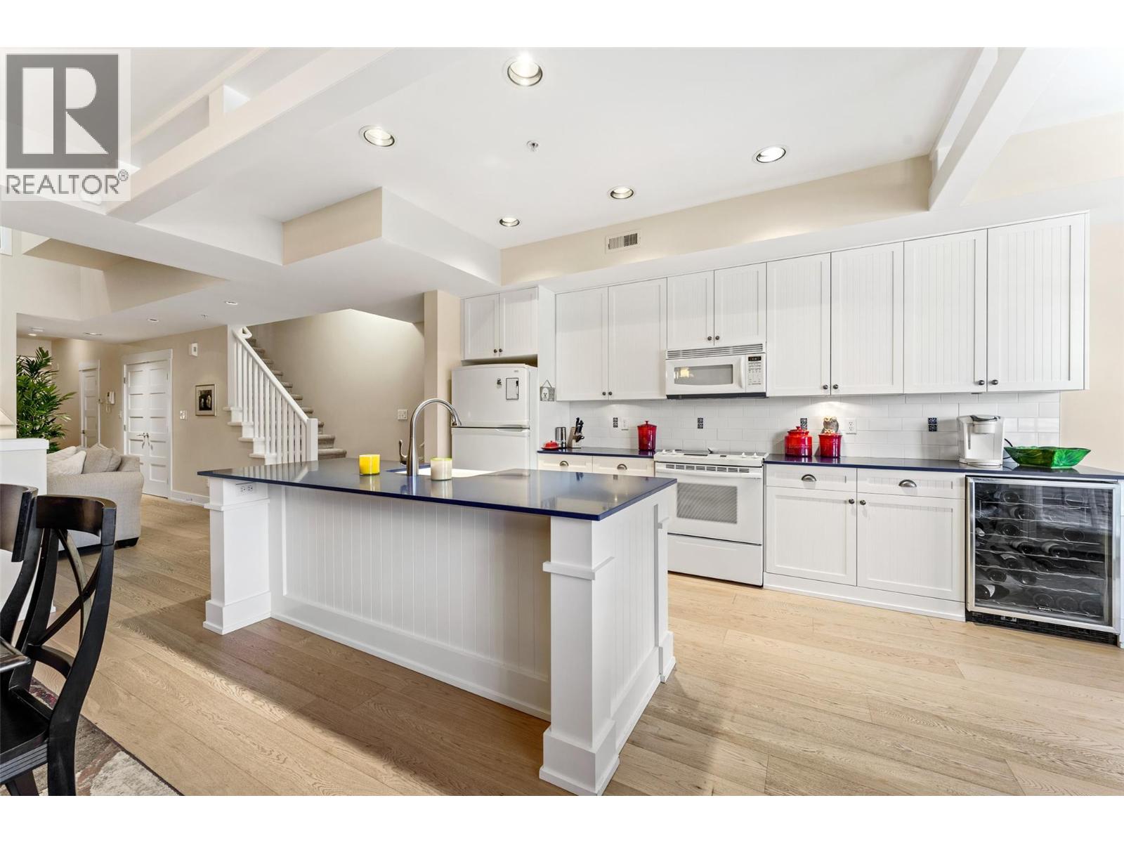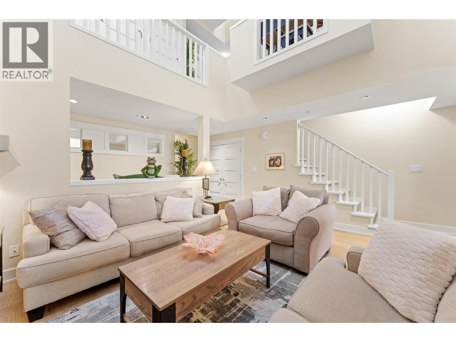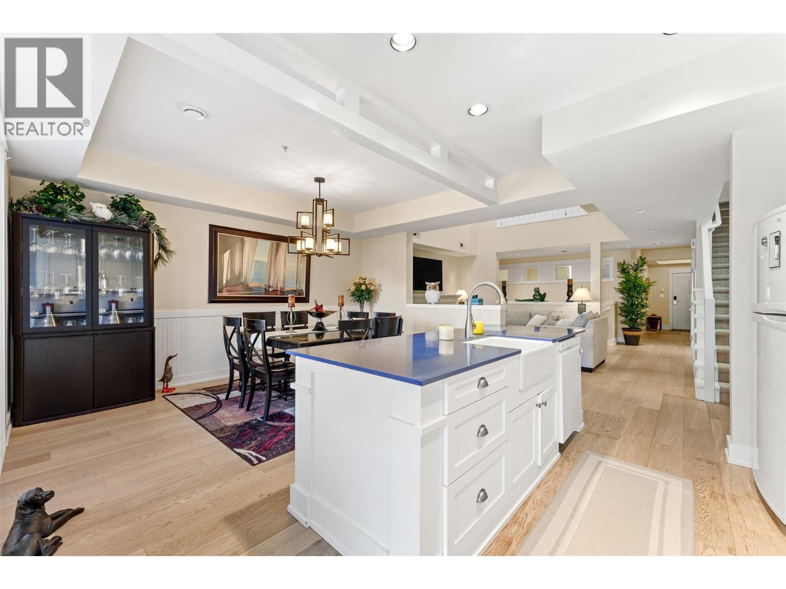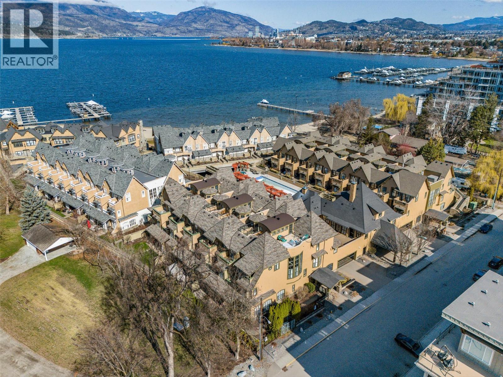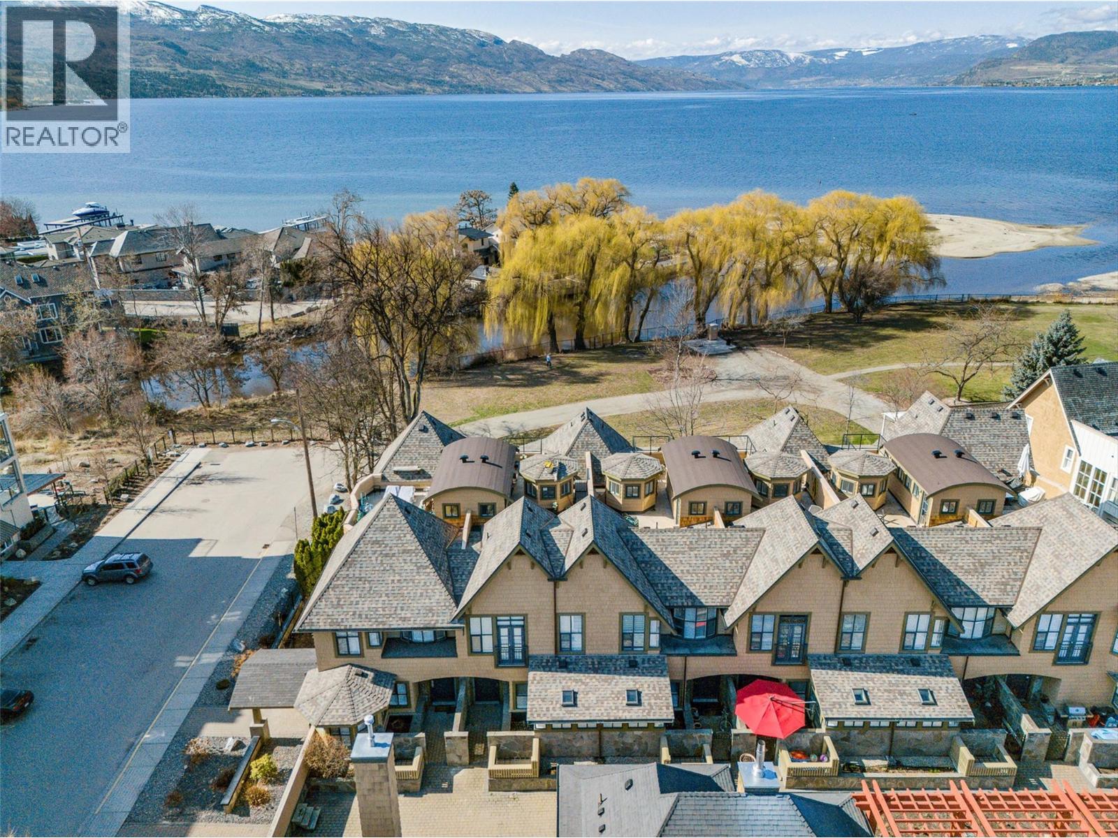 $1,281.68 MonthlyEnjoy turn-key waterfront living in the Lower Mission at the exclusive waterfront community of Mission Shores. This fully furnished beautiful 3-bed, 4-bath townhome offers refined lakefront living with a seamless indoor-outdoor flow. Enjoy breathtaking lake views from multiple patios, including a private rooftop terrace complete with a hot tub hookup, perfect for watching the sunset over Okanagan Lake. The main level boasts a bright, open-concept layout with soaring vaulted ceilings, skylights, and a gas fireplace. The kitchen offers custom cabinetry, a centre island with seating for four, and premium appliances including a KitchenAid range and Marvel wine fridge. The adjacent dining area opens to a covered balcony with agas BBQ hookup, ideal for entertaining. Each of the 3 spacious beds is a private retreat, complete with an ensuite and walk-in closet. The upper-level primary enjoys a lakeview balcony, while the main-level suite offers easy access for guests. Additional highlights include hardwood floors, fresh paint, a skylit workspace, and secure, direct entry from the parkade with 1 parking stall and storage locker. Resort-style amenities include a pool, hot tub, gym, and shared boat slip. Guest parking pass also included. Experience luxury lakeside living at Mission Shores. (id:44393)
