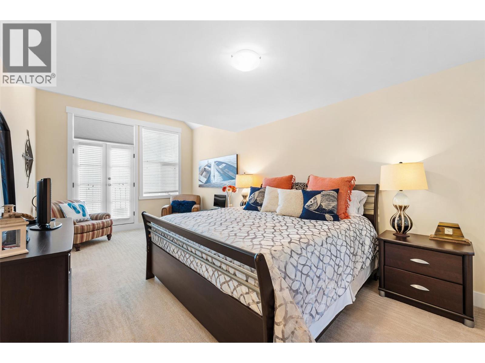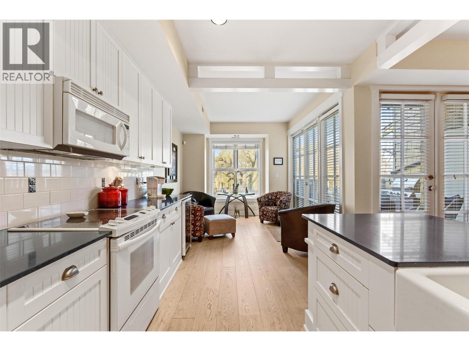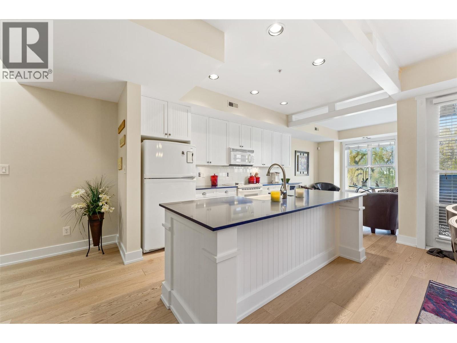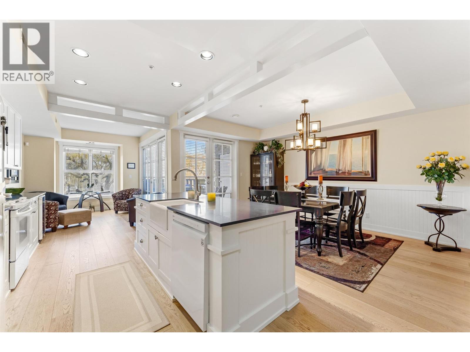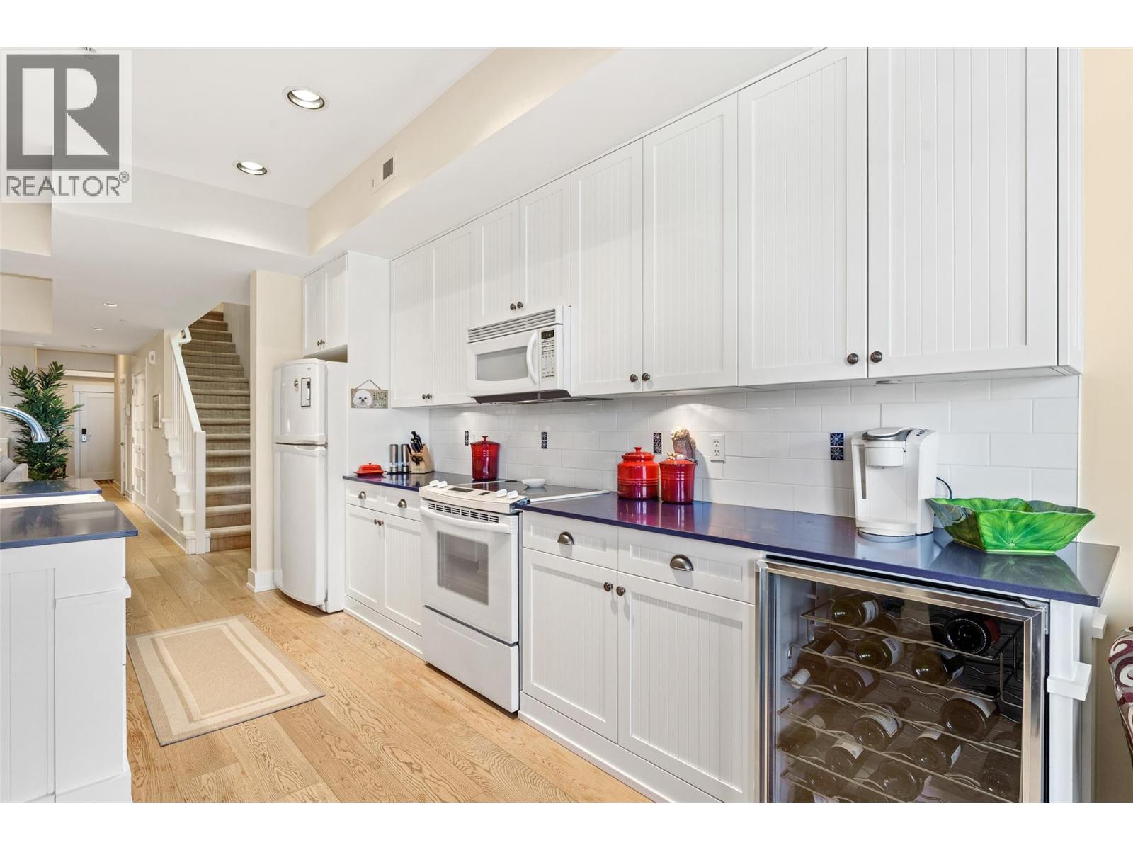 $1,281.68 MonthlyEnjoy turn-key waterfront living in the Lower Mission at the exclusive waterfront community of Mission Shores. This fully furnished beautiful 3-bed, 4-bath townhome offers refined lakefront living with a seamless indoor-outdoor flow. Enjoy breathtaking lake views from multiple patios, including a private rooftop terrace complete with a hot tub hookup, perfect for watching the sunset over Okanagan Lake. The main level boasts a bright, open-concept layout with soaring vaulted ceilings, skylights, and a gas fireplace. The kitchen offers custom cabinetry, a centre island with seating for four, and premium appliances including a KitchenAid range and Marvel wine fridge. The adjacent dining area opens to a covered balcony with agas BBQ hookup, ideal for entertaining. Each of the 3 spacious beds is a private retreat, complete with an ensuite and walk-in closet. The upper-level primary enjoys a lakeview balcony, while the main-level suite offers easy access for guests. Additional highlights include hardwood floors, fresh paint, a skylit workspace, and secure, direct entry from the parkade with 1 parking stall and storage locker. Resort-style amenities include a pool, hot tub, gym, and shared boat slip. Guest parking pass also included. Experience luxury lakeside living at Mission Shores. (id:44393)