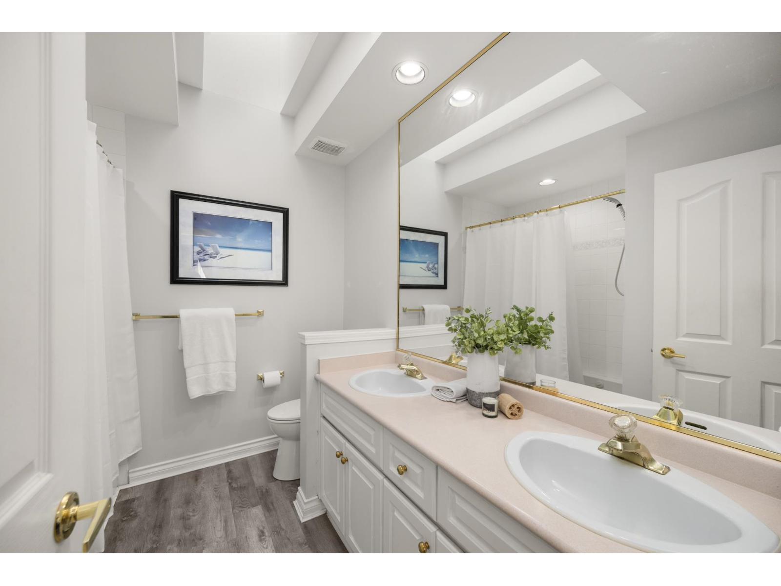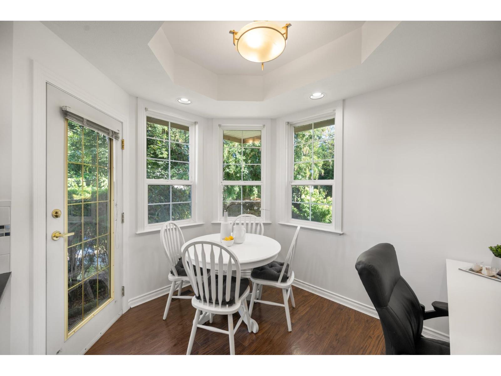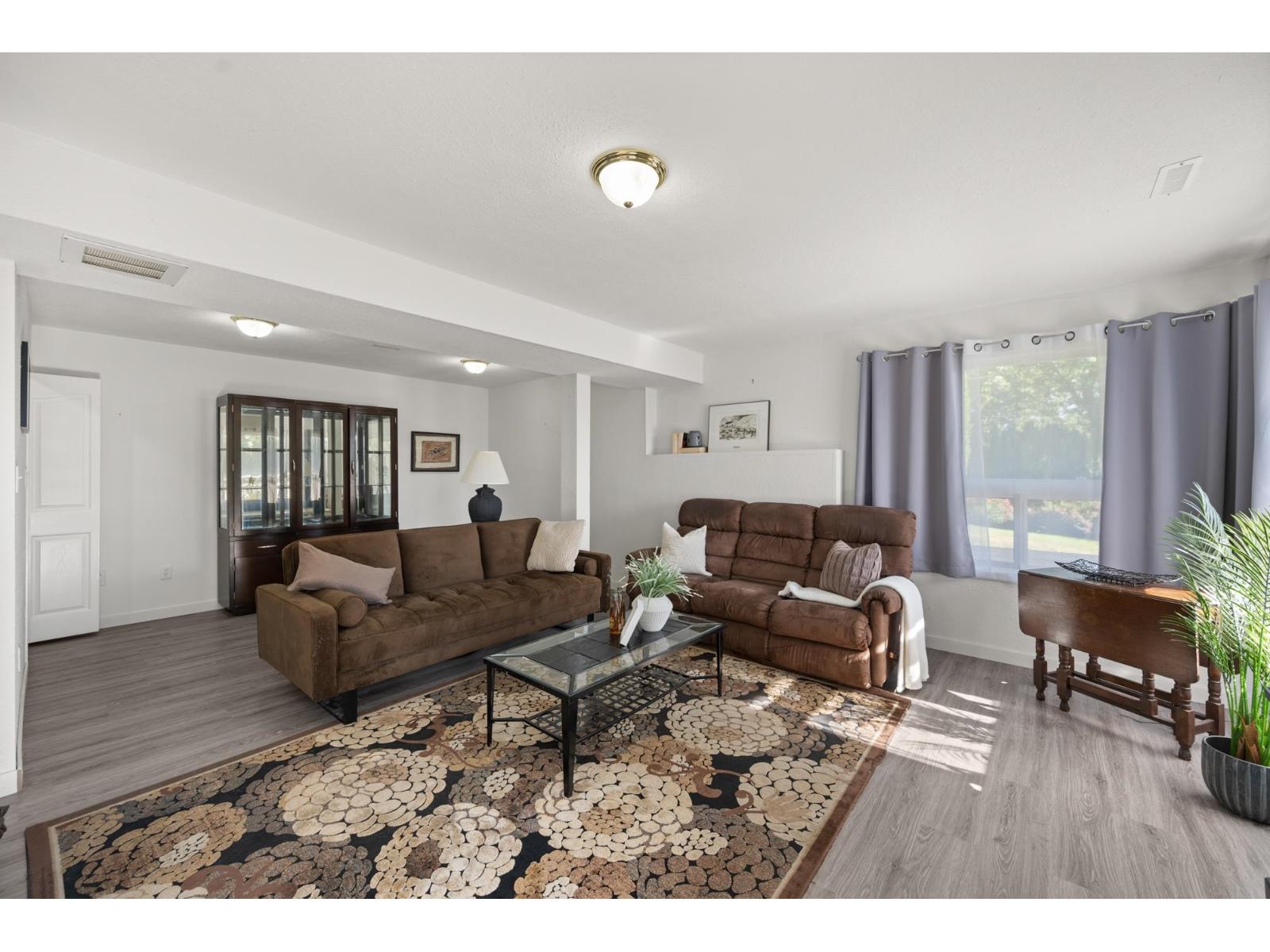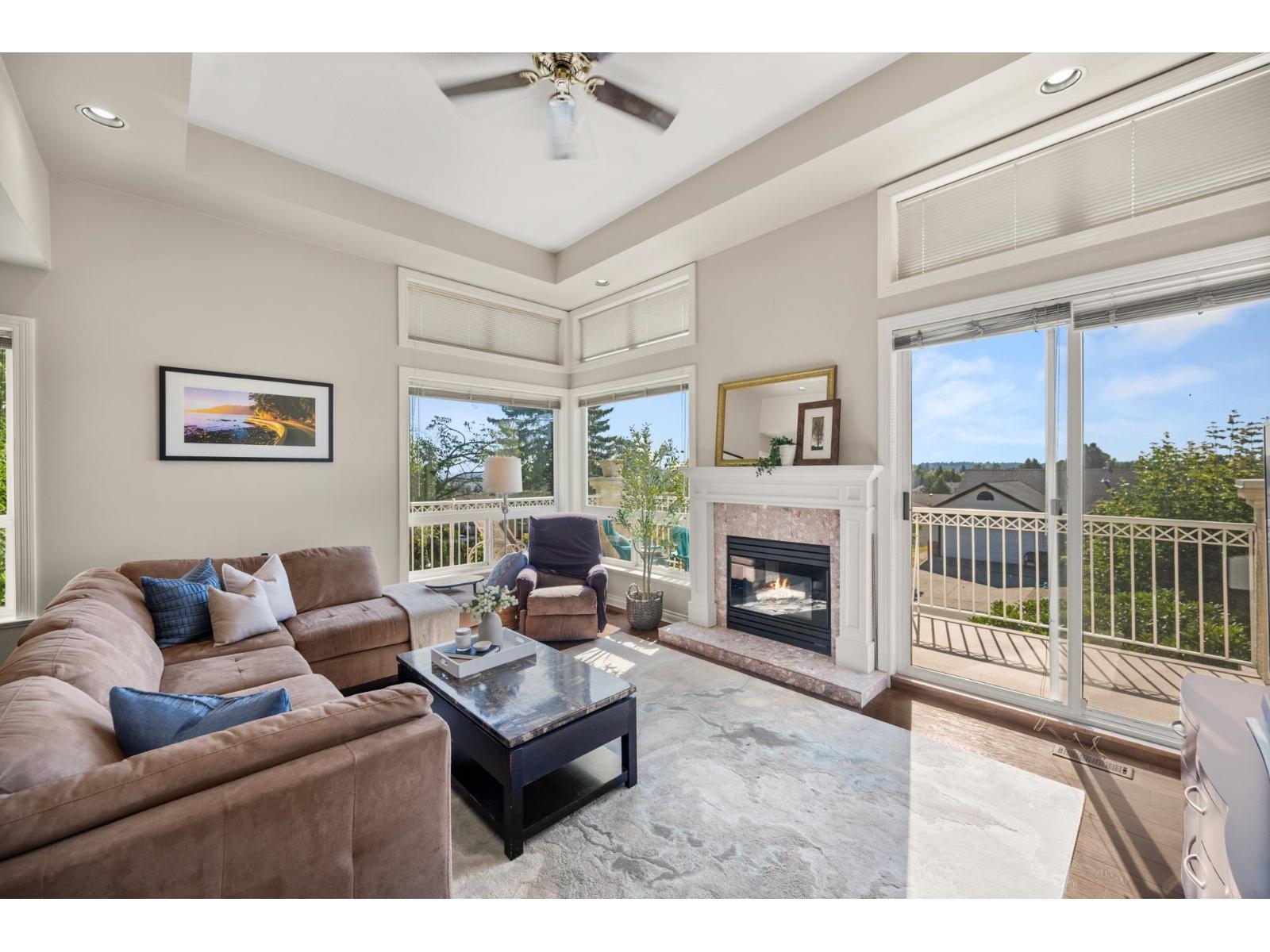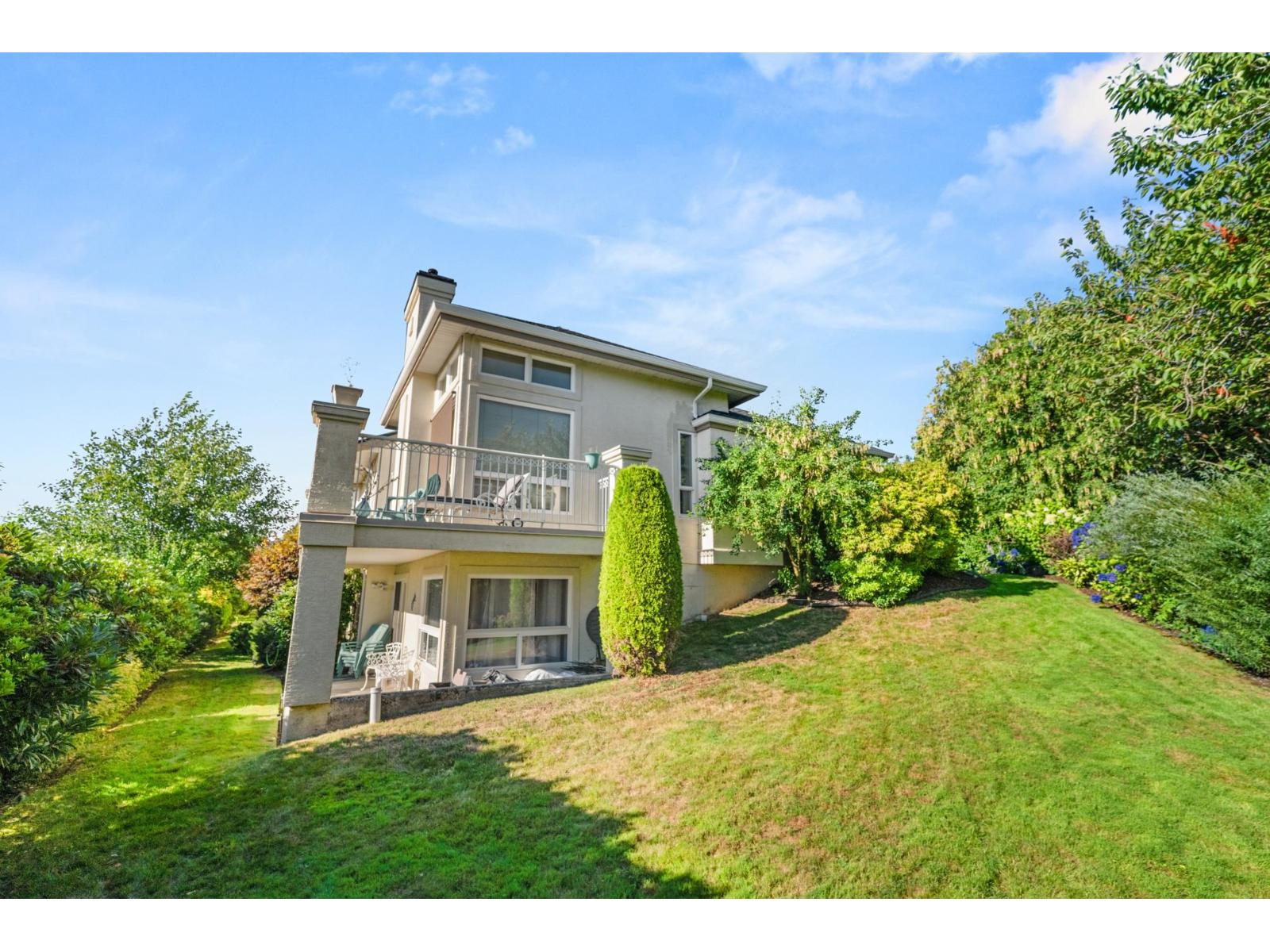 $402.98 MonthlyWelcome to LakePointe Villas, nestled around Ponderosa Park Lake and linked to the Discovery Trail system! This rare rancher-style end-unit townhouse with a walkout basement offers luxurious, low-maintenance living in one of Abbotsford's most desirable communities. Enjoy a brand-new 2025 roof, views of the Airshow from your main floor sundeck, and added privacy beside mature greenery. The spacious layout includes 3 bedrooms, 3 full bathrooms, soaring 12-ft ceilings in the living room, granite counters, crown moulding, laminate floors, new carpet on stairs, and updated appliances. The basement boasts a large rec room, large workshop with water and 220 power, carpeted crawlspace, and a covered patio. Additional features include a new furnace & A/C. RV parking available. Pets allowed! (id:44393)