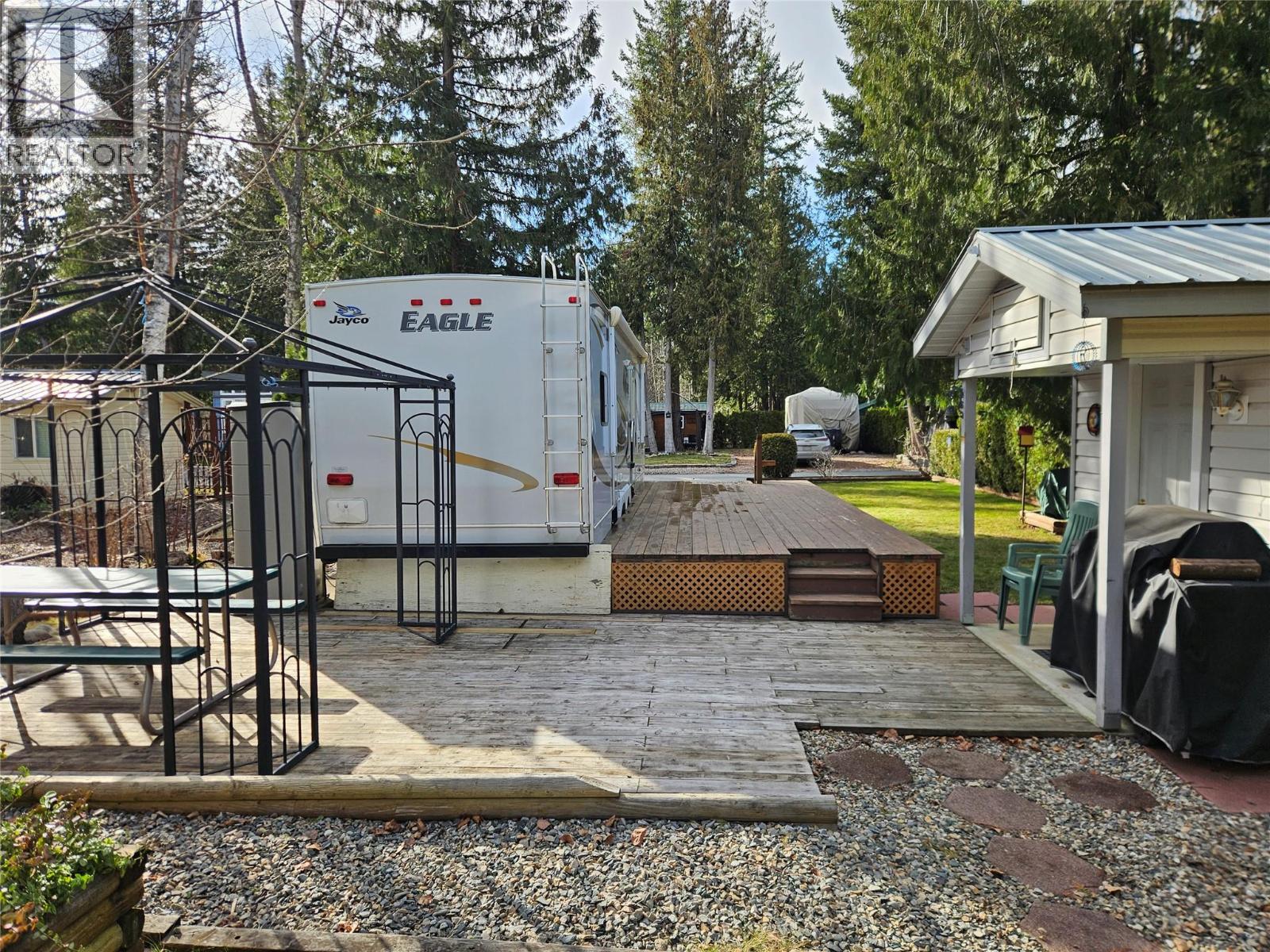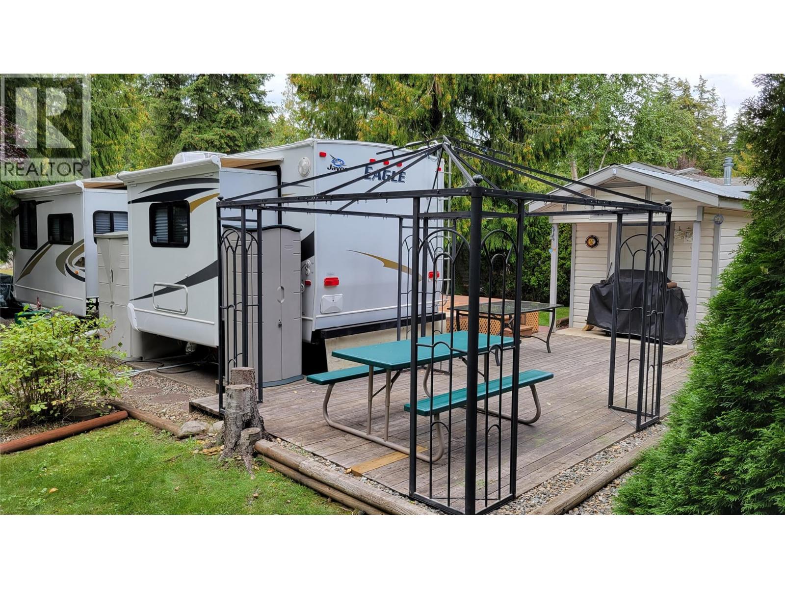 $3,700 YearlyWelcome to Caravans West! This is one of the larger lots in the park, the property backs onto peaceful green space and is conveniently located near the shower, laundry, and washroom facilities. The lot features a nice sized shed, complete with bunk beds that can comfortably accommodate additional family members or guests. Outdoor living is a highlight, with a spacious deck perfect for relaxing or entertaining. The property also includes a travel trailer (in usable condition, sold as is). The property comes fully equipped with gazebo, outdoor dining table with chairs—everything you need to start enjoying the space right away. This gated and secure park offers full-time management and is ideal for either year-round living or a seasonal retreat. Residents enjoy lake access with a dock for boating and a beautiful beach for relaxing. Amenities throughout the park include: Adult clubhouse with pool table, gathering space, and rental guest suites above Family clubhouse with pool table, table tennis, library, children’s playroom, full kitchen, and lounge areas. Separate fitness facility with Adult-only pool and hot tub. Family pool with children’s wading pool and hot tub Water park and playground Large grass field and sports court for basketball and hockey Well-maintained pickleball courts The park is located next to the provincial park and is just minutes from everyday conveniences including a grocery store, pharmacy, medical services, marina, and more. (id:44393)