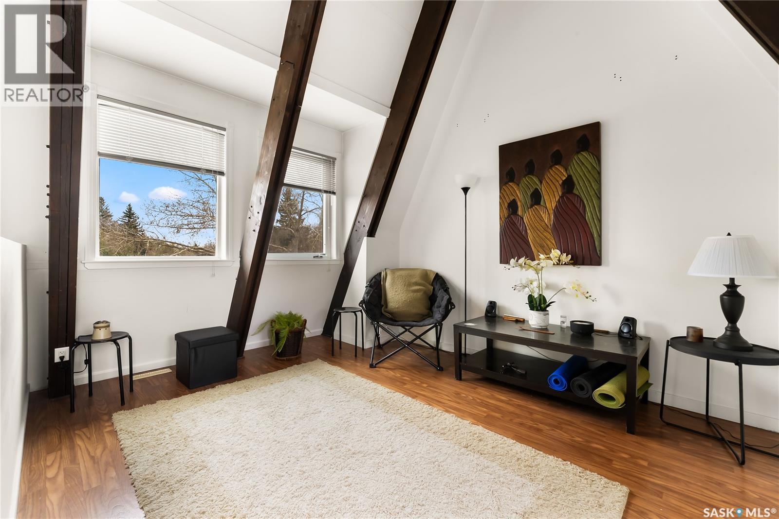 $437.45 MonthlyBeautiful End unit, one of a kind A-frame condo converted from St. Philip's Church in 2004. There is truly only four of these in the city! Exposed beams throughout and tons of natural light flood this condo. The main floor has a large kitchen and dining room, with patio doors to the spacious private yard. The living room features a gas fireplace. The 2nd floor has an ample master bedroom, 3 piece bath, walk-in closet and a south facing deck. The 3rd floor can be used as a bedroom, but could also be a great study area or office. The Basement boasts 10' ceilings and is complete with a den and another 3 piece bath for guests staying over. This is a truly unique home that must be seen! As per the Seller’s direction, all offers will be presented on 11/09/2025 5:00PM. (id:44393)