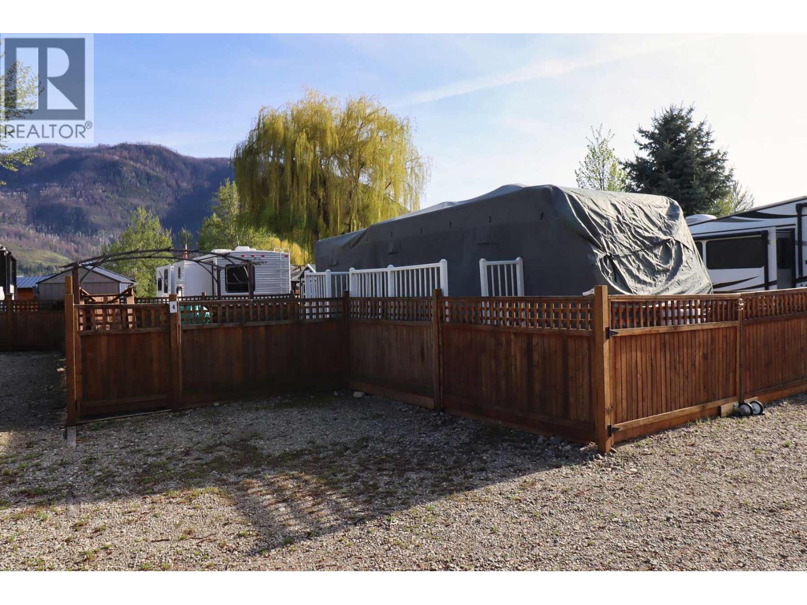 $318.07 MonthlyA short 5-minute drive from the Trans-Canada Highway over the Squilax Bridge brings you to this super resort with over 3,000 feet of prime waterfront real estate. This provides a camping experience with a front row seat to nature, complete with urban services, amenities, and a sense of community. Keep those pets in sight with this fully fenced RV lot in the Cottonwood Cove Resort! This south-facing lot features a gazebo, shed, cobblestone brick patio, and total privacy. The nearby trees provide shade and privacy so you can take a break from the sun when needed. Super access to the beach and dog park! For an affordable strata fee of $318.04 per month, you'll cover hydro, sewer, water, & resort maintenance, ensuring a worry-free lakeside retreat. The gated complex is complete with private pool, hot tub, community room, convenience store, laundry, boat launch, storage and dock. Park your rig here and have unlimited access to an on-site marina, boat launch, and year-round storage. With approval, owners can construct sheds and decks on their lots. Owners have the option of a private boat slip at an additional cost, subject to availability. Here you own more than just a lot, you're investing in a lifestyle! (id:44393)