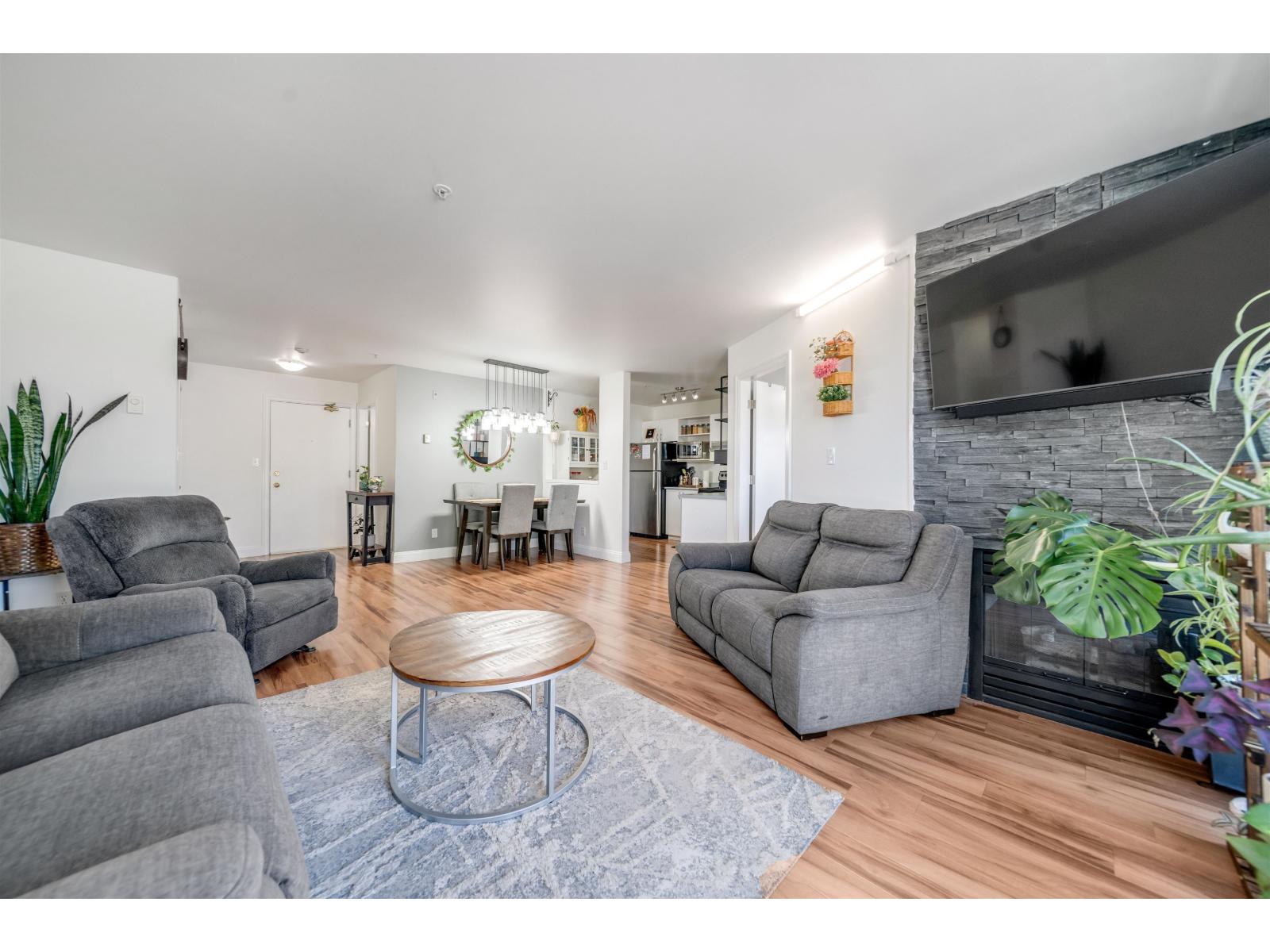 $469.07 MonthlyPenthouse Living! Top-floor corner unit with a massive 404 sq. ft. Balcony offering stunning city & mountain views. Bright, quiet, and centrally located a rare find! Beautifully planned layout with living room & gas fireplace, spacious kitchen, and open dining area. Large primary bedroom with deck access and ample closets; second bedroom with two corner windows. Laundry room with side-by-side washer/dryer & storage. Hot water & gas included in maintenance. Two premium side-by-side parking stalls and storage locker. Prime location with all essential amenities, schools, and transit just steps away. (id:44393)