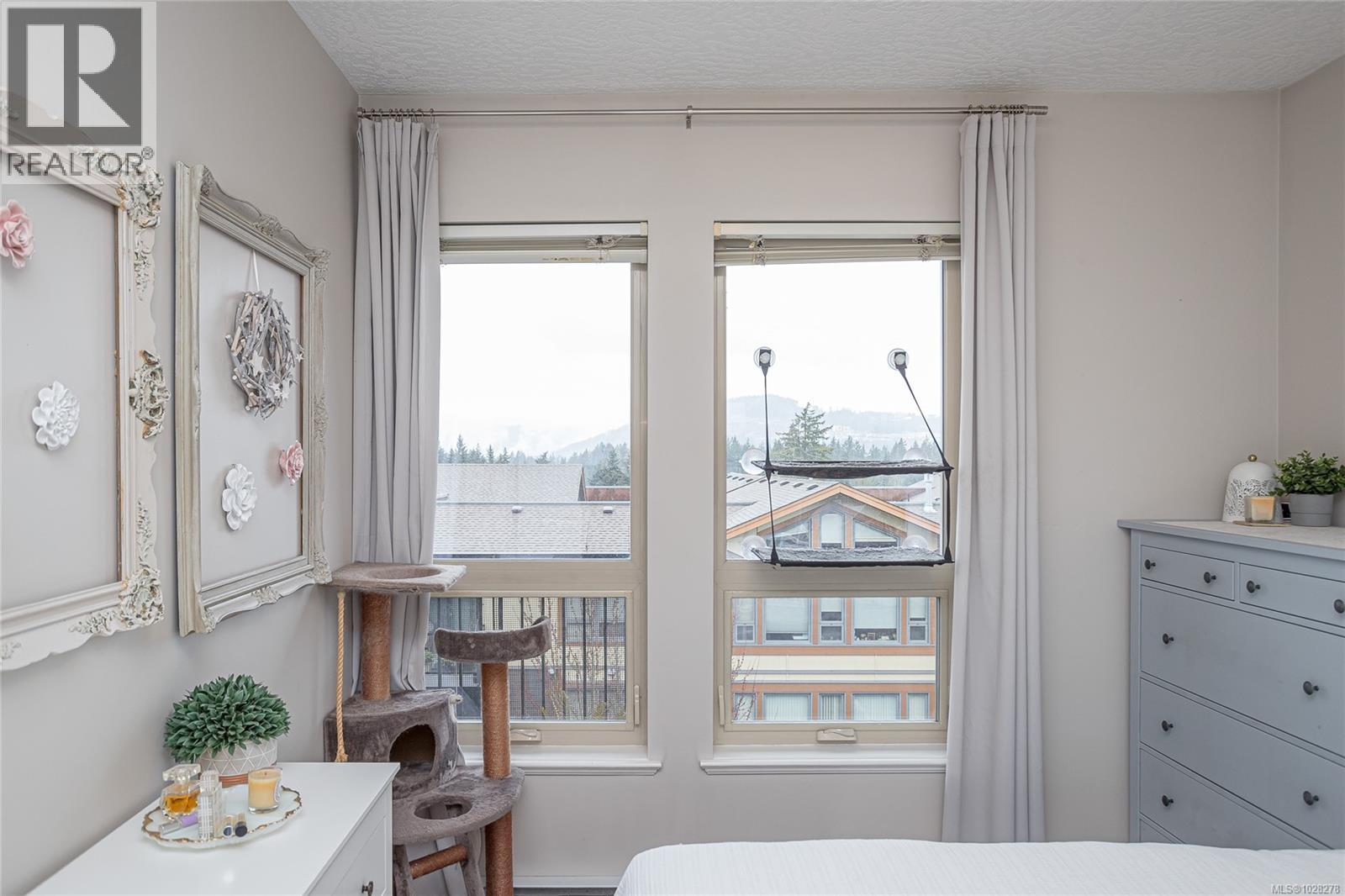 $420 MonthlyTucked away at the quieter south end of Jacklin Road, this top floor condo, overlooking the Sooke Hills, offers a peaceful setting and great sunset views. The bright inviting living space features impressive floor to ceiling windows and opens onto a private patio. Inside you’ll find a spacious and functional layout with 9’ ceilings and lots of natural light. The kitchen includes plenty of cabinets, stainless steel appliances and an island with seating for guests. The primary bedroom is generously sized with easy access to main 4 pc bath. In suite laundry is tucked into a closet, and the large open den provides excellent space for a home office or flex space. This well maintained building also offers a fitness room, secure bike storage, parking and a large separate storage locker. Located within easy walking distance to the shops, restaurants, and amenities at Belmont Market. Two dogs or 2 cats or one of each permitted, with no size restrictions. (id:44393)
