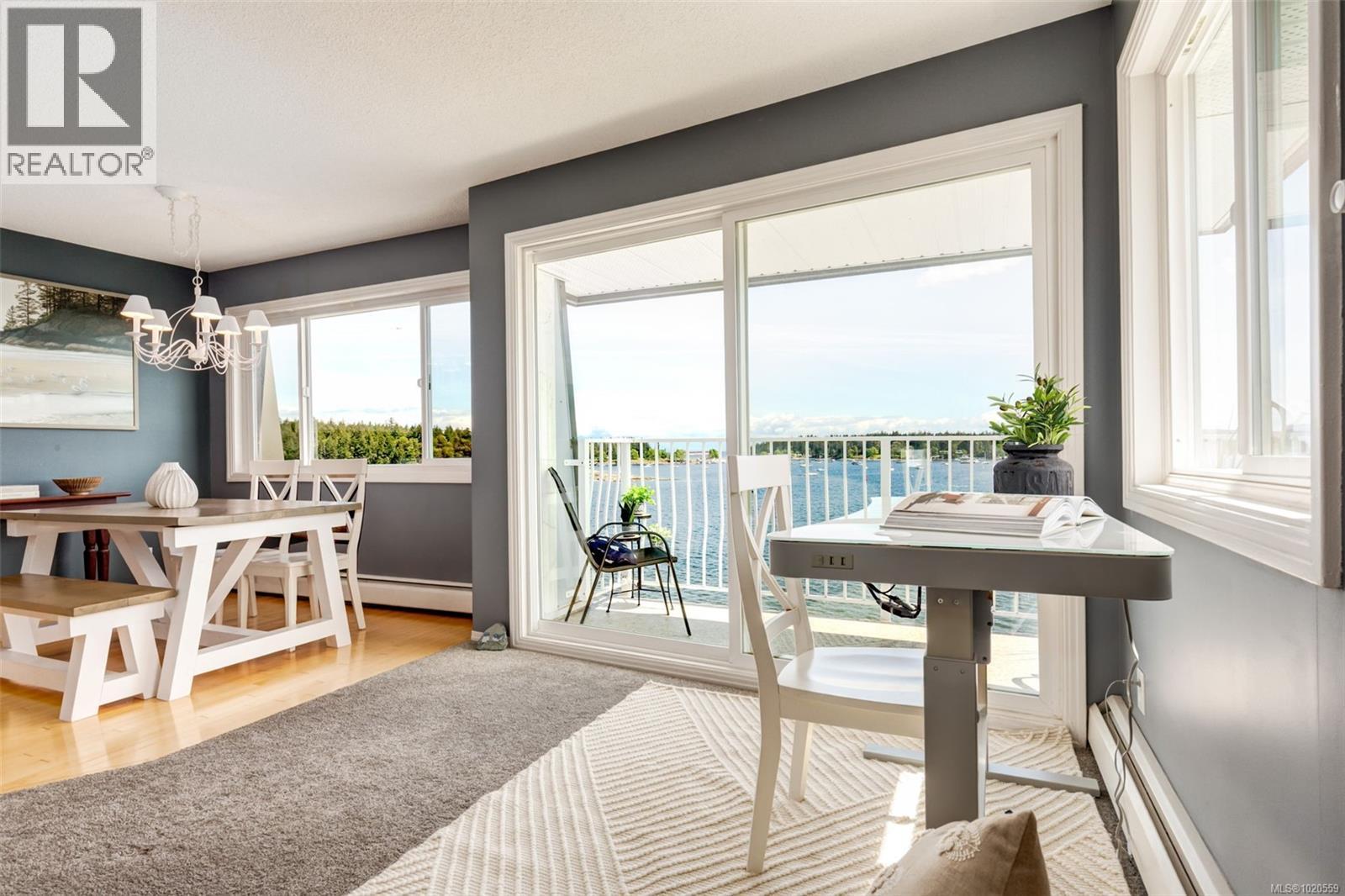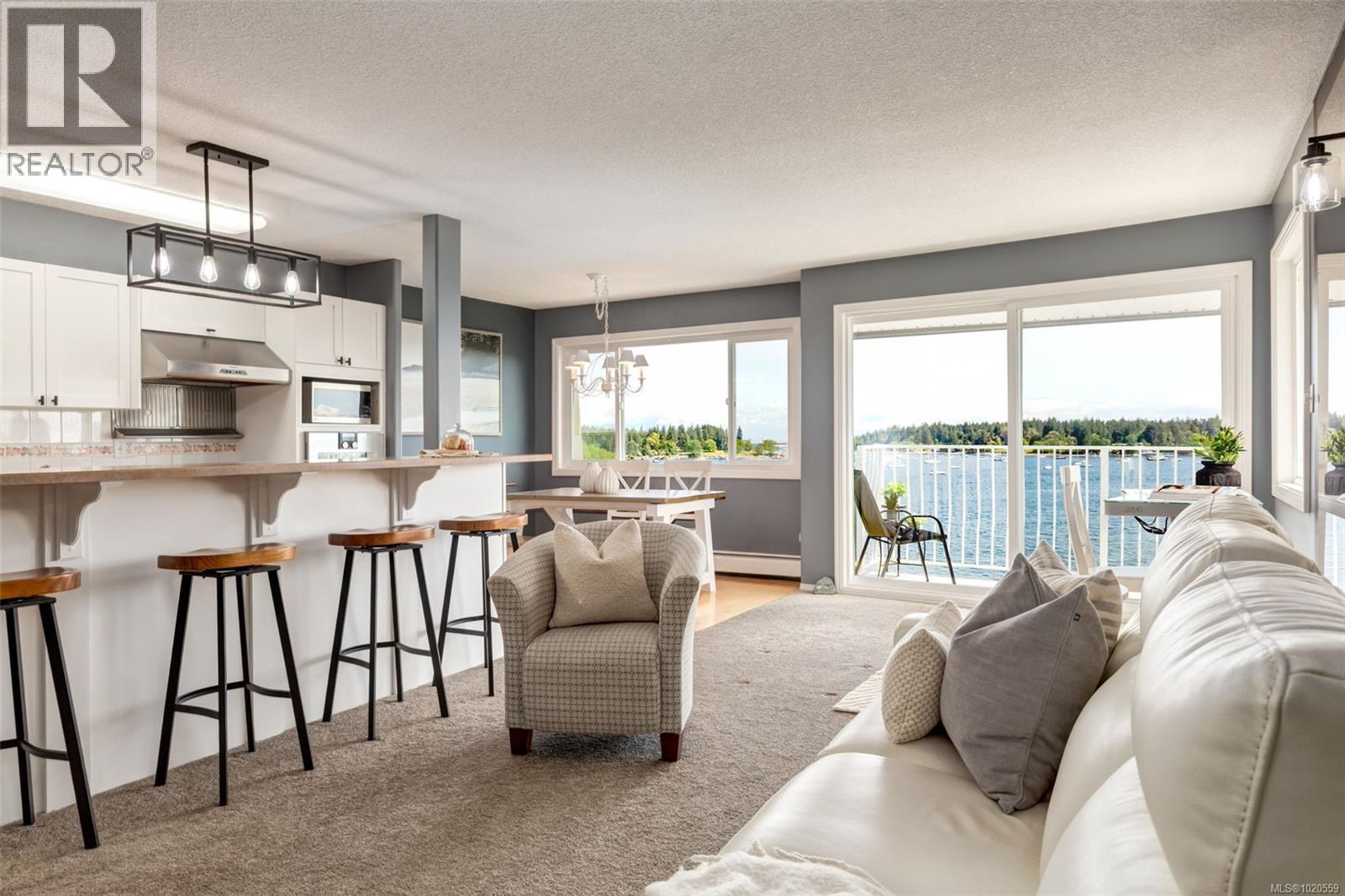 $624 MonthlyPANORAMIC OCEAN and mountain VIEWS from every room! This bright 2-bedroom, 1-bathroom condo offers unparalleled, unobstructed views of the ocean from the living room, dining area, and both bedrooms—truly a rare find! Wake up to the sound of the waves and enjoy stunning sunsets right from your own home. You can even enjoy fireworks displays and watching the boats in the harbour. The open-concept living and dining space is flooded with natural light and flows effortlessly to a generous balcony—perfect for your BBQ and enjoying the view with a cup of coffee or glass of wine. The primary bedroom features 2 closets and the 2nd bedroom has a built-in Murphy Bed for guests. This is coastal living at its finest, whether you're looking for a serene retreat or a stylish space to entertain. Includes 1 parking stall and a storage locker. Commuting to Vancouver is a breeze with easy access to the Seaplane terminal (fly to Vancouver in 20 mins!), BC Ferries, and the Hullo fast ferry, offering direct service to downtown Vancouver. Conveniently located close to beaches, cafes, and transit. The strata fee even includes heat and hot water ! A must-see for ocean lovers! all info approximate (id:44393)