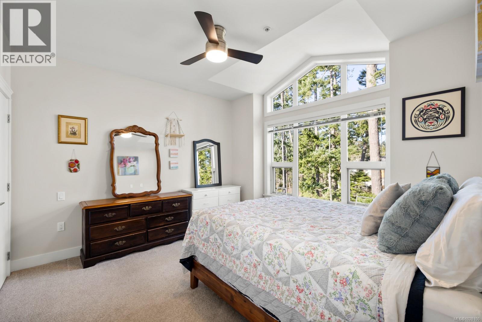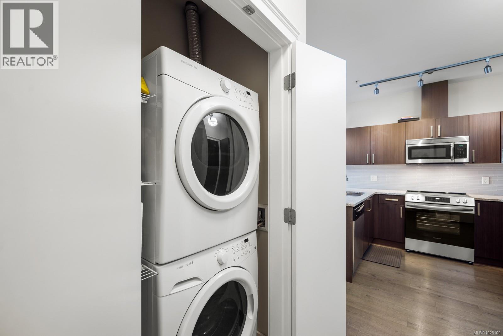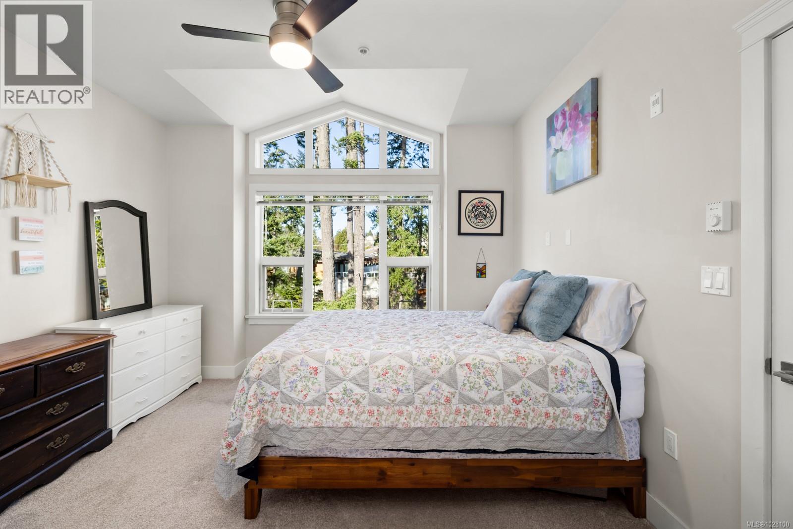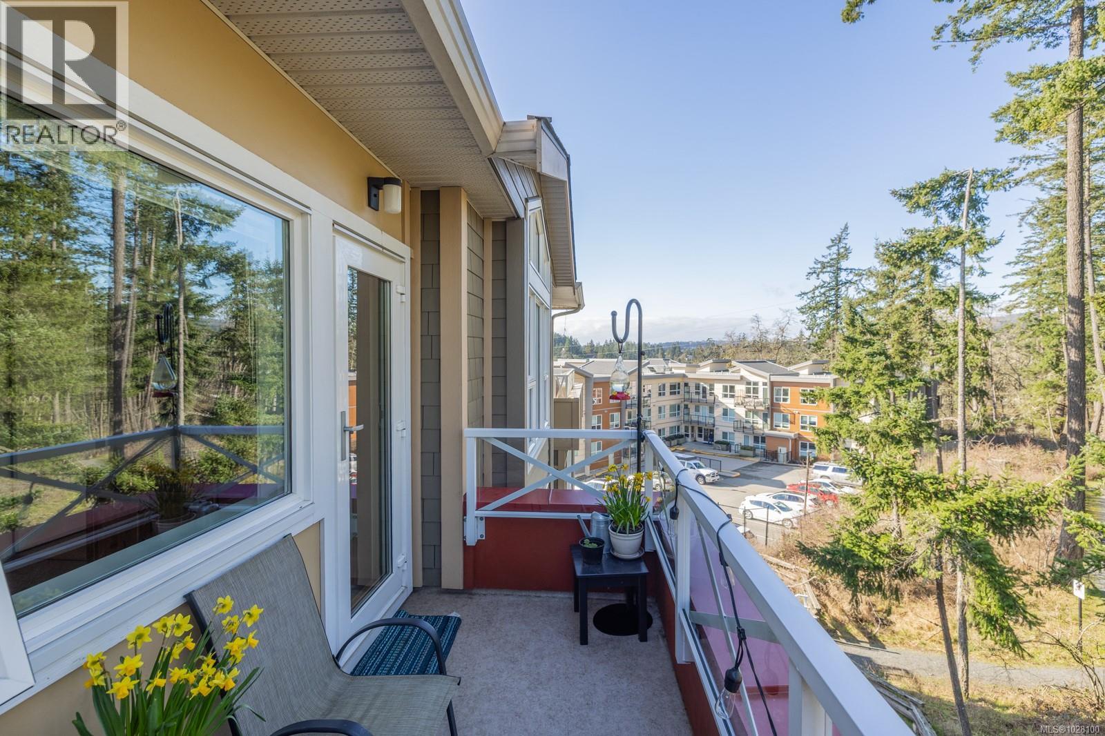 $387.23 MonthlyPrivately positioned on the quiet side of the building, this top-floor 1 Bed + lg den residence offers an exceptional blend of comfort, function, and natural surroundings. The thoughtfully designed layout features overheight ceilings that enhance the sense of space, while the vaulted ceiling in the primary bedroom adds architectural interest and warmth. The kitchen is well appointed with stone countertops, SS appliances, and generous cabinetry for everyday convenience. A spacious den provides outstanding flexibility-ideal for a home office, guest room, or second sleeping area. Secure underground parking includes two dedicated stalls, a rare and valuable upgrade that adds both convenience and long-term appeal. Surrounded by nature yet moments to schools, shopping, dining, and the Galloping Goose Trail-with cycling routes stretching from Sooke to Sidney-this community also preserves over 3 acres of protected natural greenspace, offering a peaceful lifestyle for owners or investors alike. (id:44393)