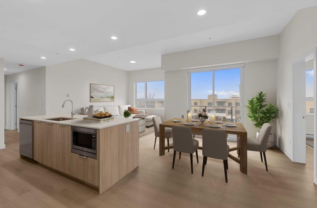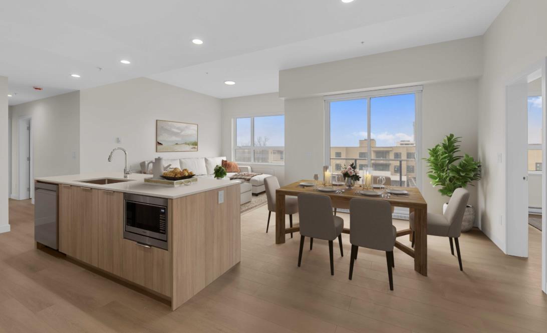 Welcome to South Village Condos thoughtfully designed by VESTA at Latimer Heights. This spacious 973 sq ft unit offers 2 Bedrooms PLUS a DEN, 2 Full Bathrooms, and walk-in closets in both bedrooms featuring one of the best wide-open floor plans available, complete with 9-foot ceilings and large windows for natural light year-round. The Unit includes an open-concept kitchen with a spacious island, a gas range hood, stainless steel appliances, AC wall unit and light colour scheme. Centrally located and easy access to top-rated schools, shopping, parks, Carvolth Bus Exchange, Langley Event Centre and Highway 1. Unit comes with one EV-capable parking stall and a storage locker. (id:44393)