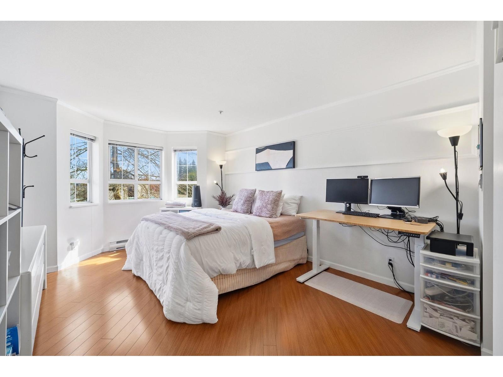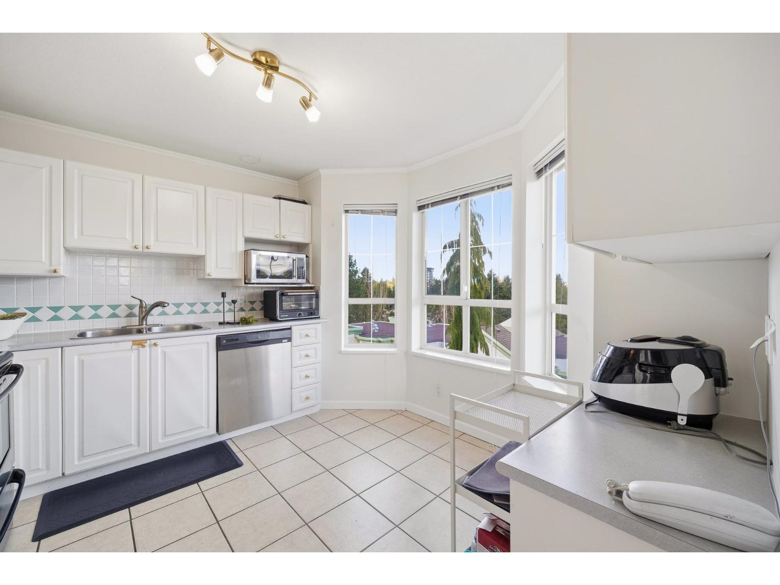 $563.88 MonthlyEnjoy spectacular penthouse views of the North Shore Mountains, including stunning snow-capped scenery, along with breathtaking sunrises and sunsets every day. This top-floor, northeast-facing corner unit offers expansive views from every room and an abundance of natural light throughout. The home features a spacious kitchen, cozy gas fireplace, wraparound balcony, and convenient in-suite laundry, and includes 2 parking stalls. Ideally located within walking distance to Guildford Town Centre and Guildford Place retail plaza. (id:44393)
