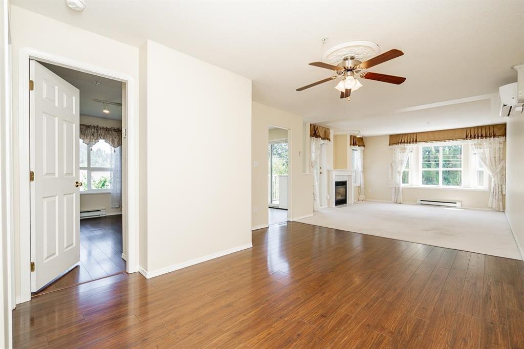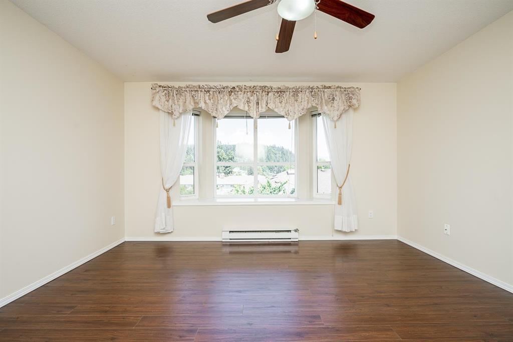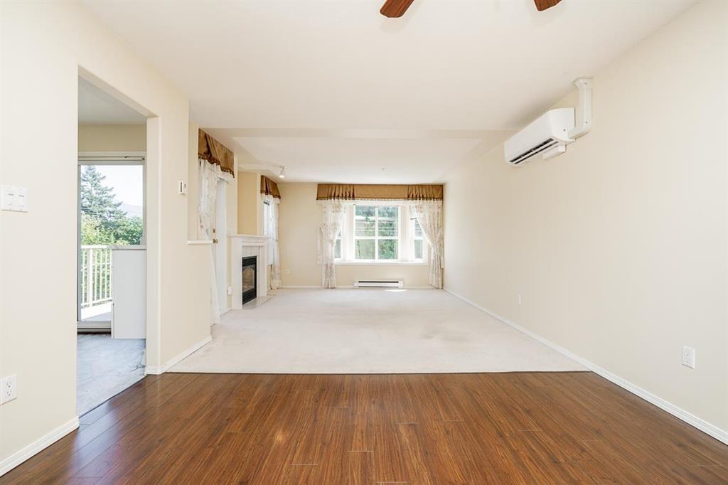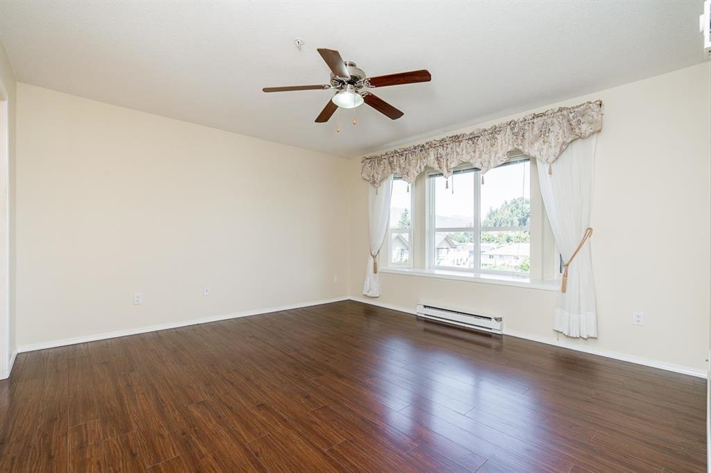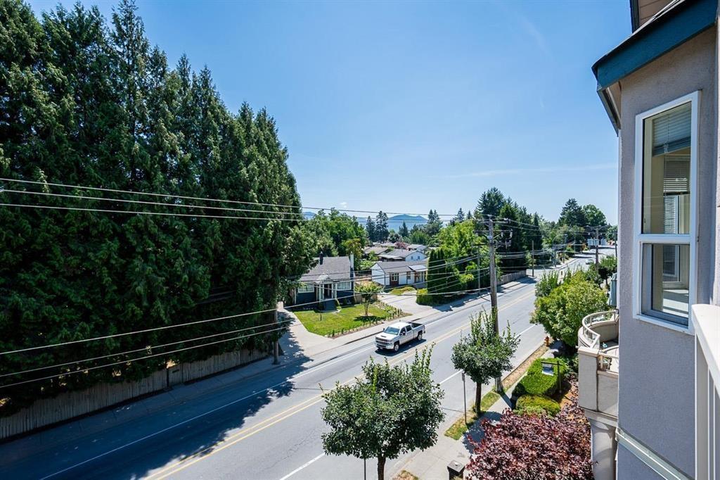 Well kept 55+ 2 bed, 2 bath top-floor unit offering a spacious layout and great views. South facing exposure offering plenty of natural light for the spacious living and dining area. Bright, updated kitchen that opens onto the patio with fantastic views of Mt Cheam. Oversized primary bedroom with full ensuite and walk in closet. Plus the benefit of a full in-suite laundry room! Well-managed building with secure underground parking (extra stalls may be available), a storage locker, and guest suite. Strata fee includes natural gas, sewer, and water. Conveniently located just 5 mins to Hwy 1 and 3 mins to groceries, shopping, and District 1881! (id:44393)