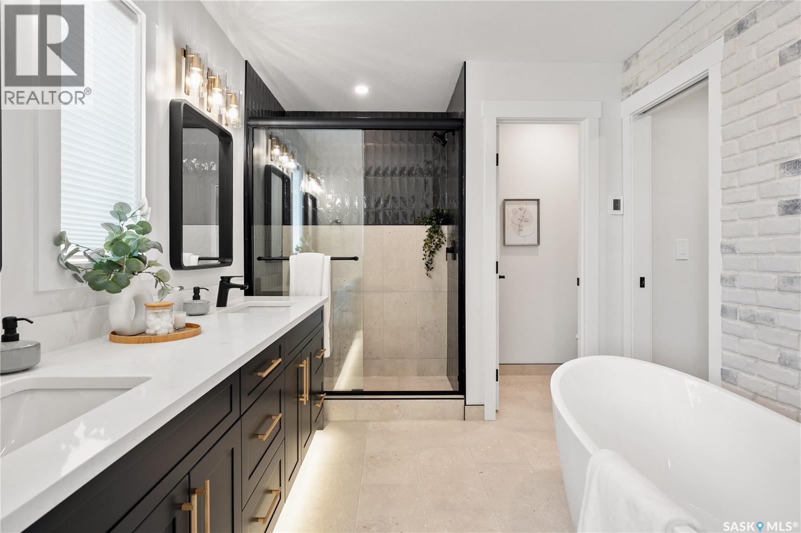 "The Queens", a 2088 square foot home, Entering the home from the oversized fully insulated garage, you step into the mudroom which is conveniently attached to the walk through pantry with lower cabinets and separate sink. The kitchen features an oversize island with eating ledge, gorgeous backsplash and gleaming quartz countertops. The great room features large windows, and oversize patio doors for an abundance of light. The fireplace is a stunning focal point in the room. The addition of the office/flex area adjacent to the front entrance is a perfect work from home space. Upstairs, the primary bedroom is spacious. The ensuite has an 8' vanity with double sinks with a generous amount of drawers for storage, a 5' custom tiled shower and stand alone tub, and a private water closet. From there, you enter directly into the walk through closet with lots of double rods and shelving for your wardrobe. Exiting the closet, you pass directly into the laundry room equipped with lower cabinets and quartz countertop and sink for easy laundry tasks. 2 additional bedrooms, a 4 piece bath and a central bonus/flex area finish this floor. All Pictures may not be exact representations of the home, to be used for reference purposes only. Errors and omissions excluded. Prices, plans, specifications subject to change without notice. All Edgewater homes are covered under the Saskatchewan New Home Warranty program. PST & GST included with rebate to builder (id:44393)