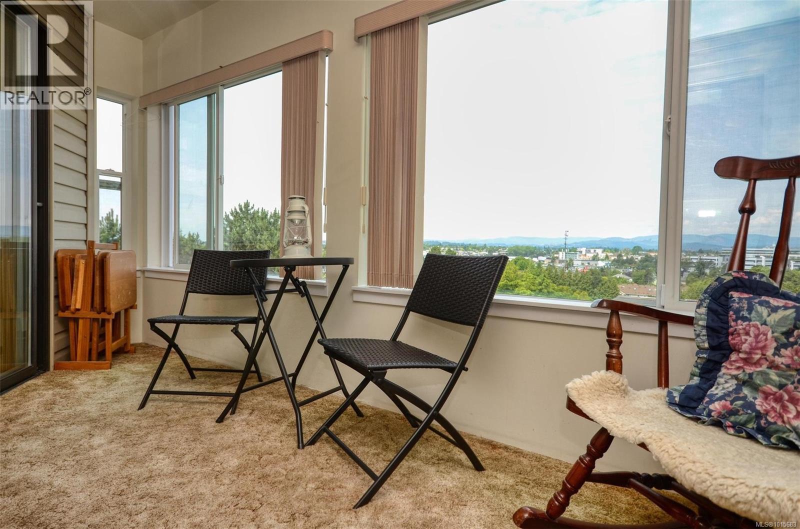 $470 MonthlyThis bright, airy top-floor corner unit feels like living in a treehouse — tucked on the quiet side of this 55+ building with sweeping views over the city and out to the Highlands. Surrounded by treetops and natural light, it offers rare privacy in a central location. The spacious layout features a large living room with an authentic wood-burning fireplace. A private enclosed balcony connects the living room and primary suite, creating a peaceful indoor-outdoor retreat. The kitchen includes a pass-through and its own bright breakfast deck, while the separate dining area is perfect for entertaining. A full main bath and in-suite laundry add everyday ease. The exceptionally roomy primary bedroom has a walk-in closet and 3-piece ensuite. Open parking is included, and the building sits on a major bus route — ideal for a car-free lifestyle. Just a short stroll to parks, shopping, and essentials. If you’ve dreamed of a home that feels like a retreat among the treetops — this is it. (id:44393)
