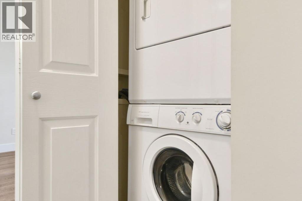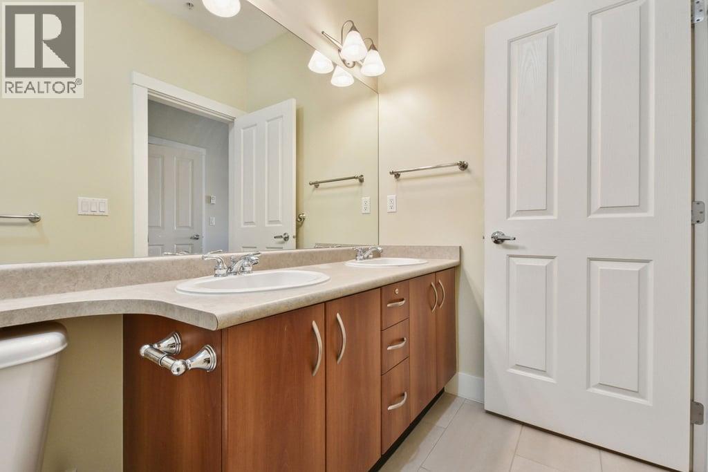 This 829sf, 2 bedrooms, 2 bathrooms condo features high ceilings, upgraded engineered vinyl planks flooring throughout, a functional layout and open expansive views from the balcony. The formal foyer with tiled floors opens up to the functional rectangular living room with a gas fireplace and access to the balcony. The lovely kitchen comes with stainless steel appliances, serving counter with breakfast bar, and wood grain veneer cabinets. The primary bedroom has a nice view, a walk-in closet and a 5 pcs ensuite with two lavatories. The 2nd bedroom also faces Oak Park. The 3 pcs main bathroom comes with a shower stall. Rent includes one parking stall. (id:44393)
