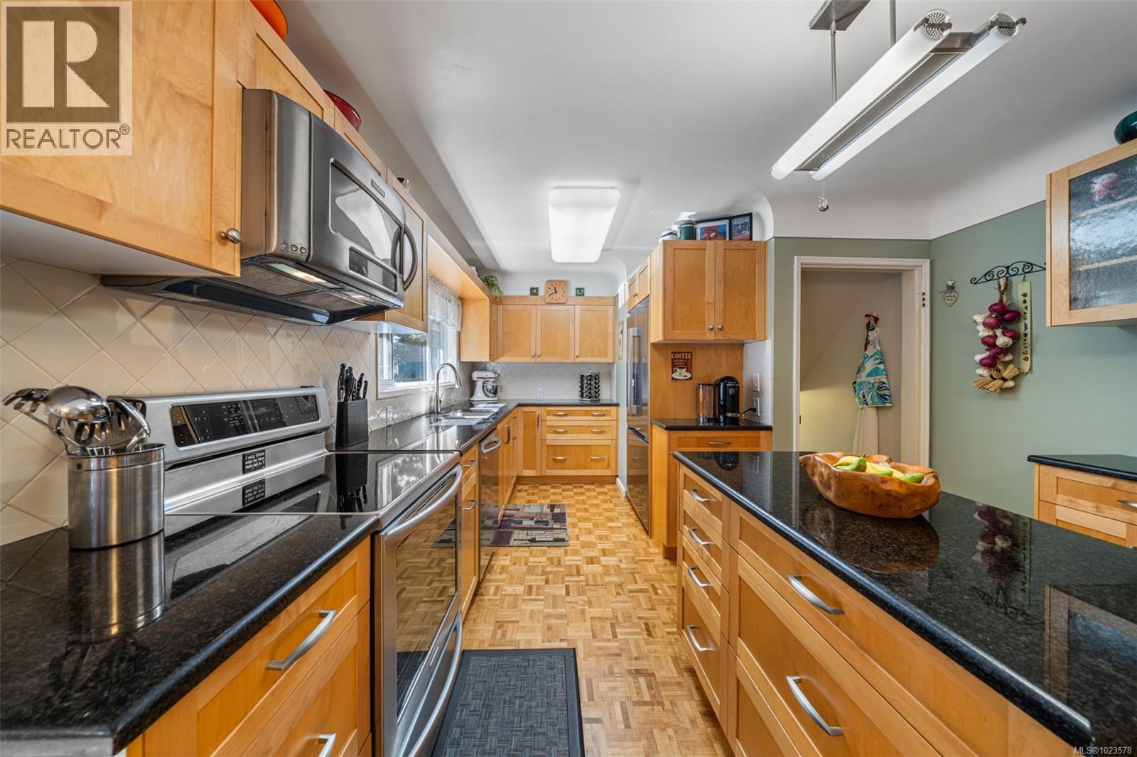 First time on the market in over 40 years, this is a home that instantly feels like it has a story to tell. A place where birthdays were celebrated, bikes were dropped on the lawn at dusk & family dinners stretched long into the evening. Lovingly cared for & thoughtfully updated, this four-bedroom, two-and-a-half-bathroom family home is ready to welcome you with all the warmth that only decades of pride of ownership can create. Inside, the layout is tailor-made for family life, with all bedrooms on the same level & generous living spaces. The welcoming living room is anchored by a fireplace & framed by large picture windows. At the heart of the home, the updated eat-in kitchen brings everyone together, featuring granite countertops, stainless steel appliances & a floor plan that flows effortlessly outdoors to the expansive deck. Three well-sized bedrooms & full bathroom sit alongside a generous primary suite tucked quietly at the end of the hall, a spacious addition complete with double closets, an updated ensuite & a cozy seating area with direct access to your incredible backyard. Mornings begin with coffee overlooking your private 1/3 acre oasis of manicured, mature gardens that feel like your own personal Butchart Gardens. Downstairs, the lower level offers a large recreation room with side entrance & half bath, perfect for movie nights, teen hangouts, or future in-law accommodation. An EV ready attached single-car garage, spacious laundry room, ample storage & a sizeable crawlspace provide flexibility as your family grows. Car enthusiasts & hobbyists will appreciate the double-bay detached garage along with a separate large, wired garden shed, while the fully fenced yard & sunny deck offer endless space for play, gardening & entertaining. Located in the family-friendly Wishart South area, this meticulous home is a short walk to all levels of schools, scenic trails, bus routes & amenities. Come see where your family’s next chapter begins. (id:44393)