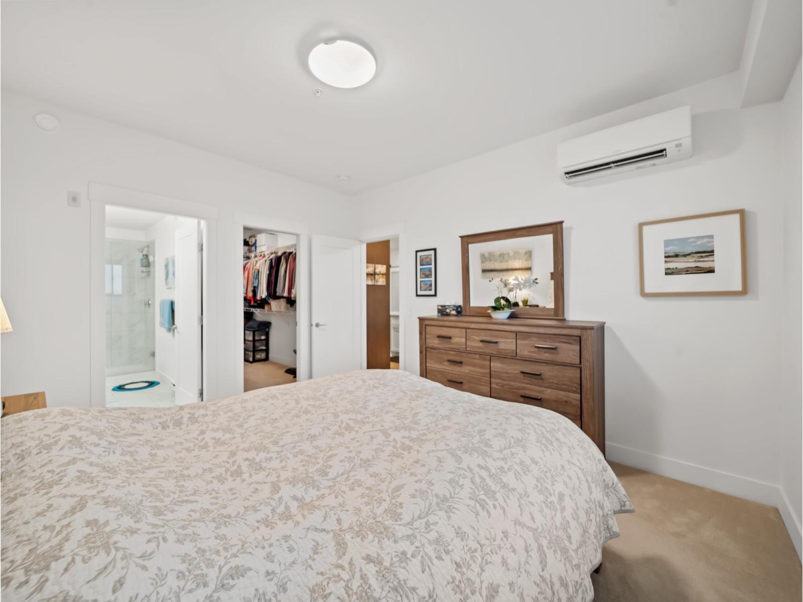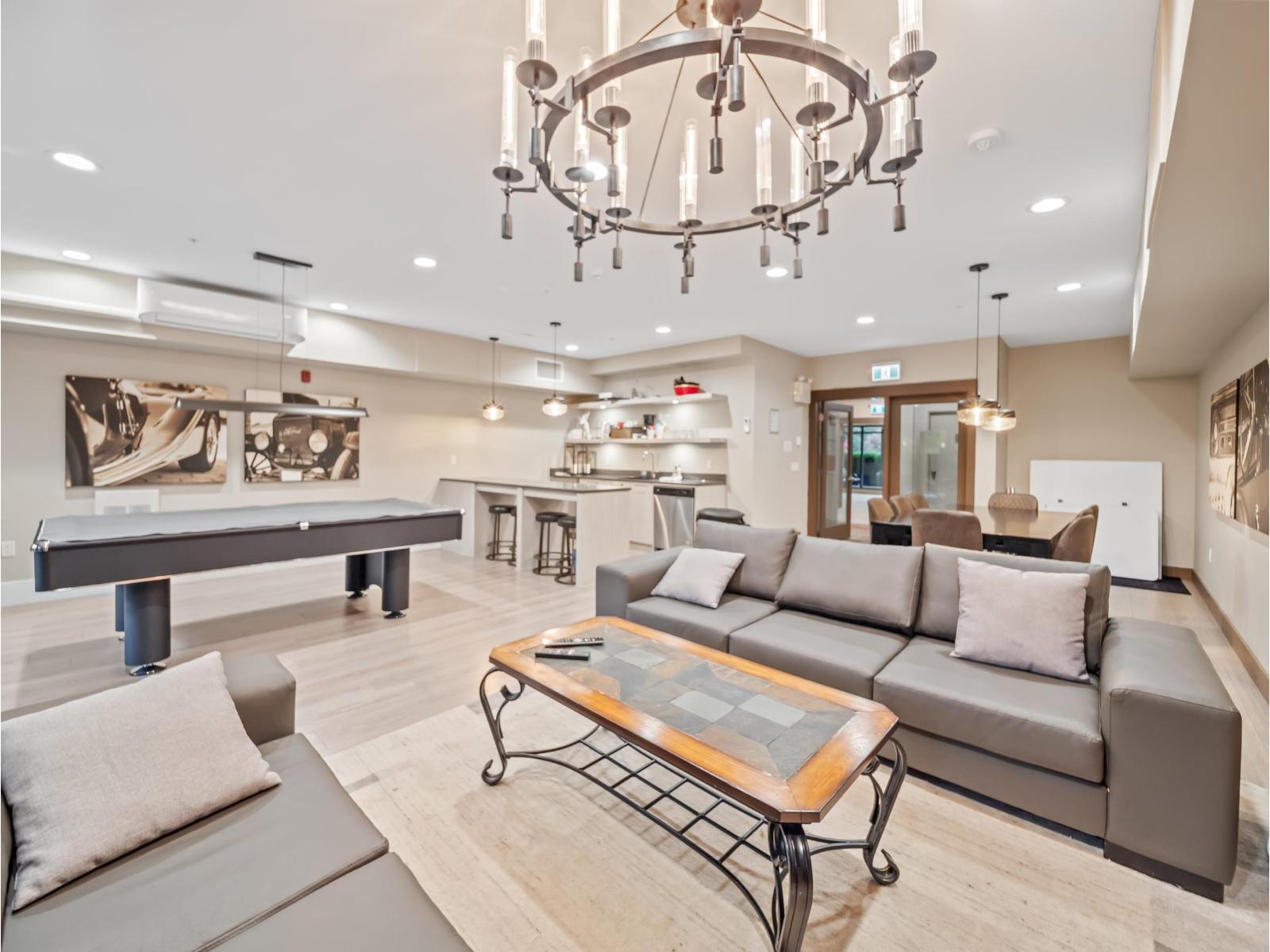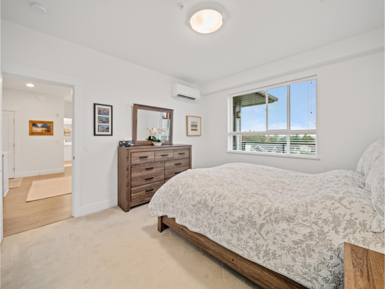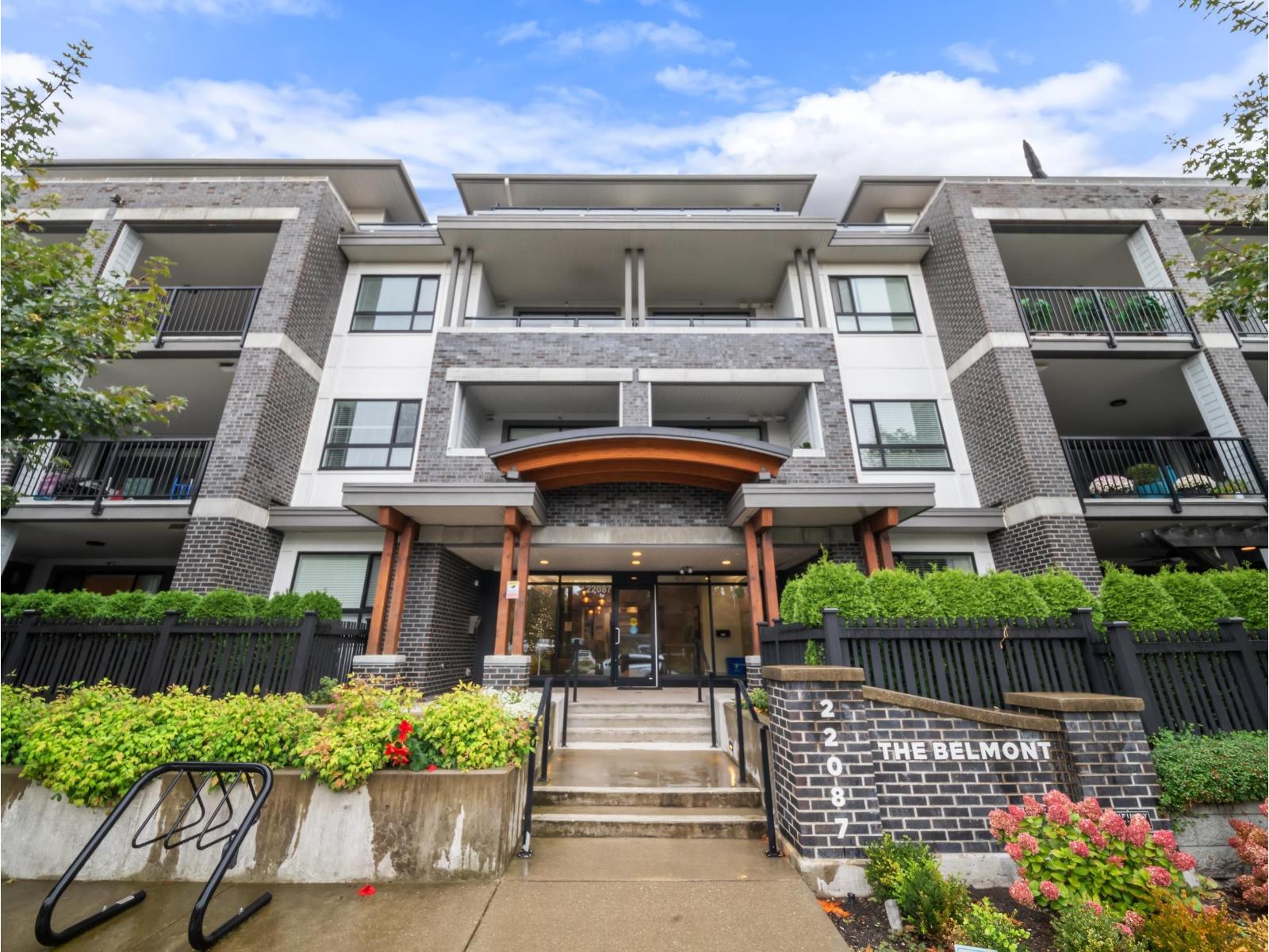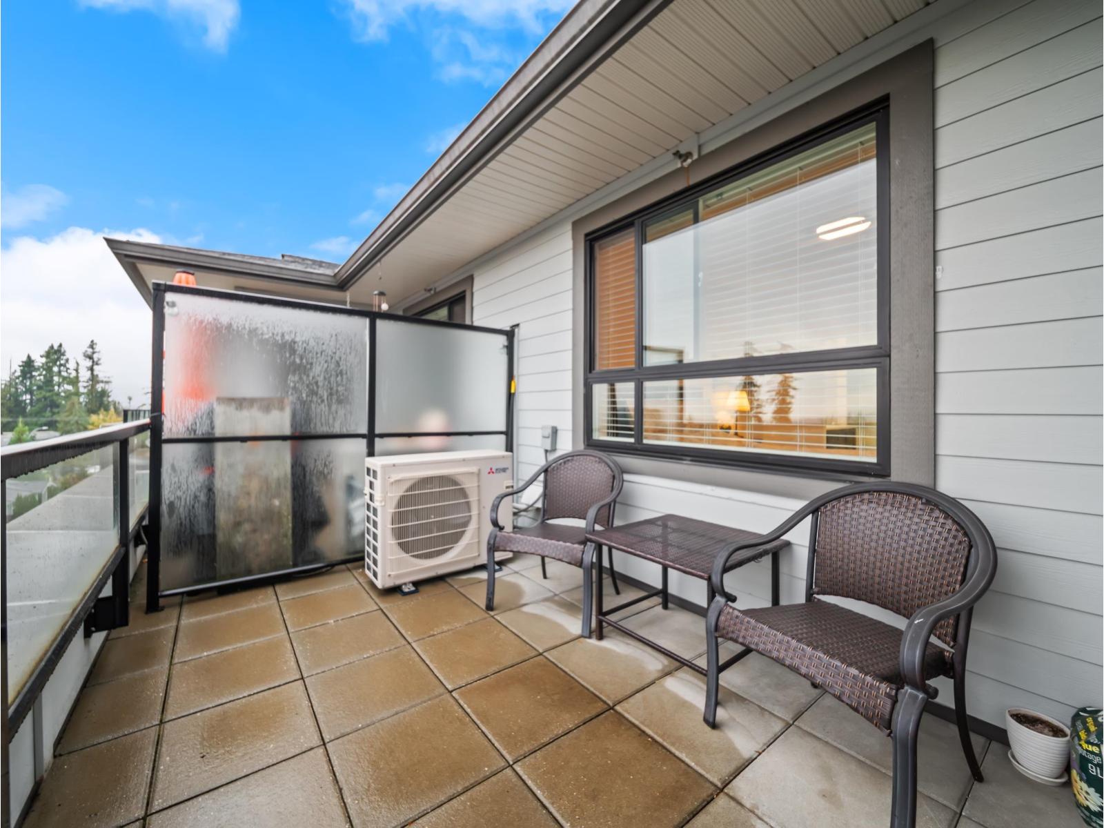 $369.47 MonthlySunset views and peaceful privacy define this top-floor 2 bed, 2 bath penthouse at The Belmont by award-winning Infinity Properties. Set well back from Fraser Highway, this home offers a quiet, private balcony overlooking the city and mountains - the perfect spot to unwind and take in the evening light. Inside, you'll find a bright, open layout with 9 ft ceilings, quartz countertops, a large island, and air conditioning for year-round comfort. The primary bedroom features a large walk-in closet and ensuite. Complete with 2 parking stalls, a storage locker, and access to the clubhouse with lounge, pool table, and outdoor patio. Located just steps from WC Blair Rec Centre, Shoppers Drug Mart, Langley Memorial Hospital---this is penthouse living at its finest in the heart of Murrayville. (id:44393)