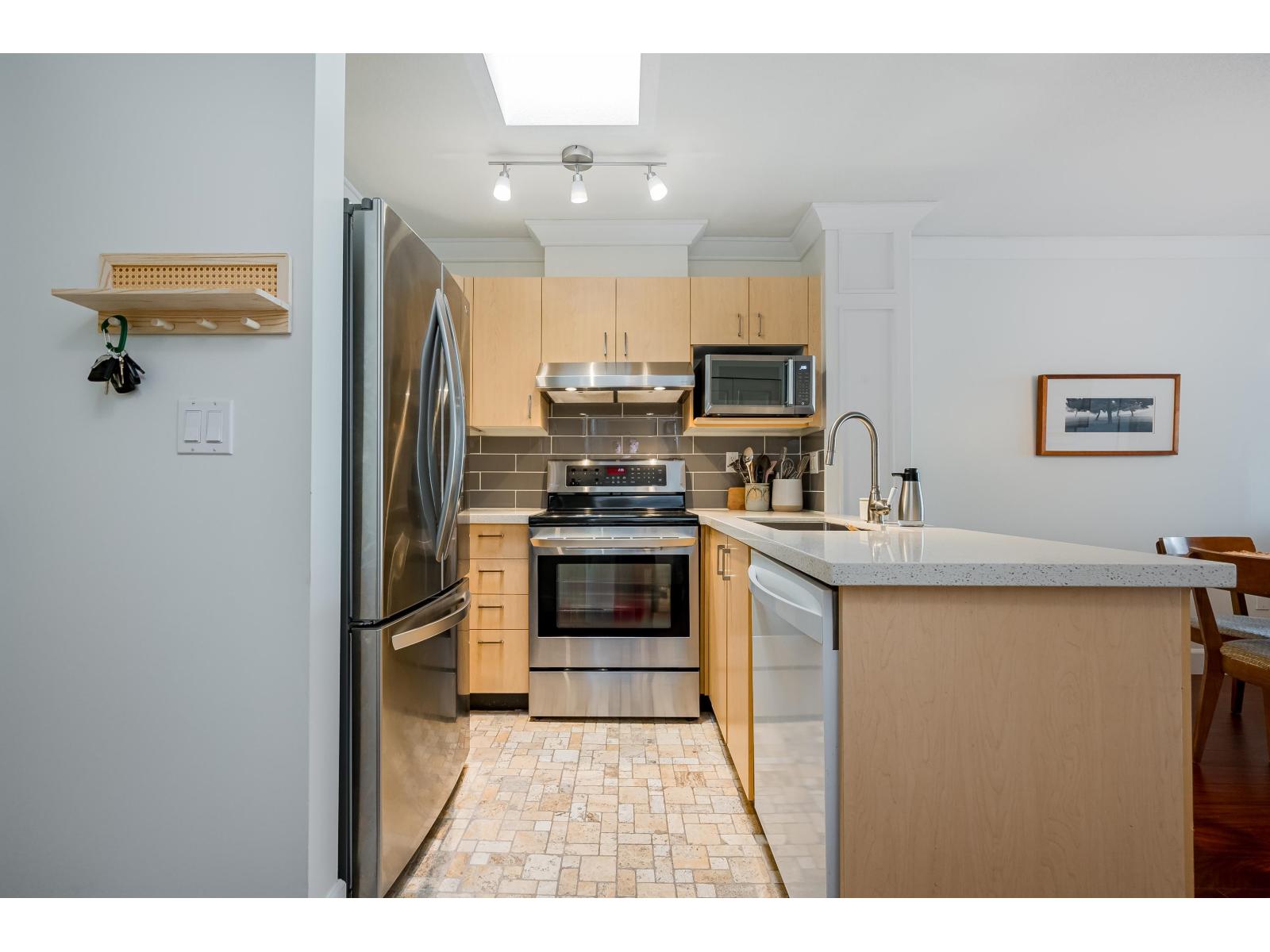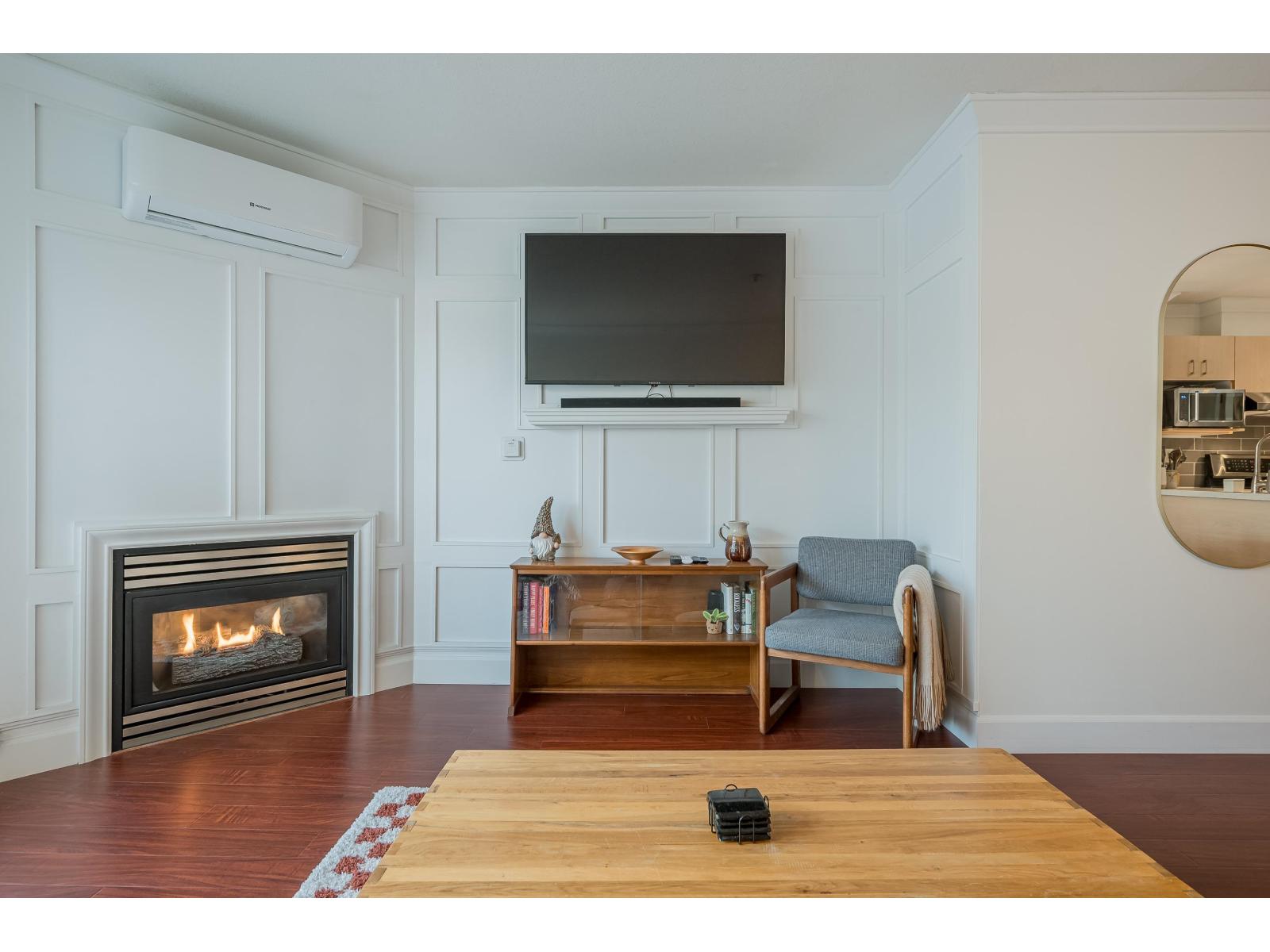 $330.57 MonthlyTop Floor 1 Bedroom Penthouse in a Perfect location! This 1 bedroom in the popular 'Rosewood' building is updated and has a new heat pump and A/C! Great floor plan, this unit has updated appliances and quartz counters in the kitchen and bathroom, big Deck faces north and gives nice privacy in bloom, living area is a good shape and has gas fireplace, in suite laundry with room for storage. 1 parking and 1 locker down as well as bike room. Just across the street from superstore, Willowbrook mall and all levels of shopping including the new skytrain. Super convenient spot! (id:44393)