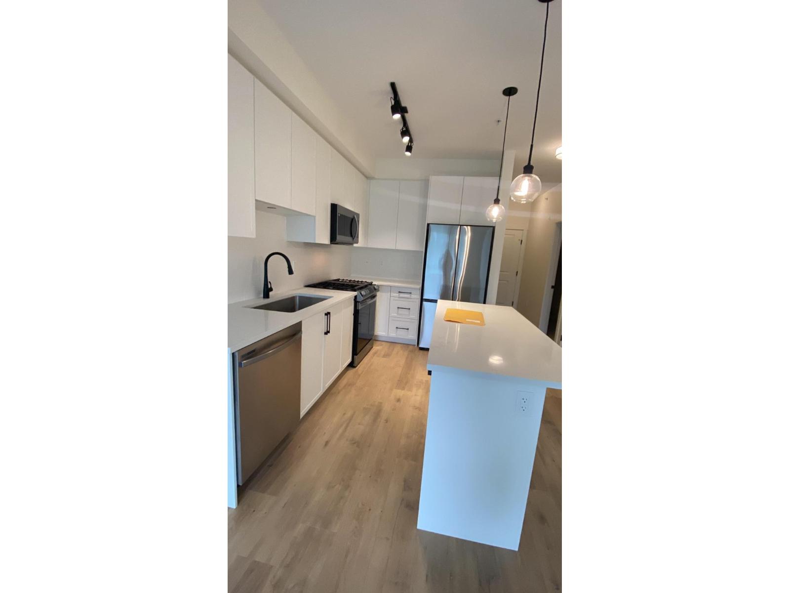 Discover this beautiful top-floor 2-bedroom, 2-bathroom condo offering modern design and exceptional comfort in Langley's newest community, West Village. This bright and spacious home features an open-concept layout with 9' ceilings, a Samsung stainless steel appliance package, soft-close cabinetry, quartz countertops, and a large kitchen island-perfect for cooking and entertaining. Enjoy the outdoors on your private oversized balcony with a gas BBQ hookup. Additional features include in-suite laundry, one dedicated parking stall, and elegant modern finishes throughout. Conveniently located near Willowbrook Mall, with easy access to shops, restaurants, schools, recreation facilities, transit, and the future SkyTrain station, Camden offers both comfort and connectivity. (id:44393)
