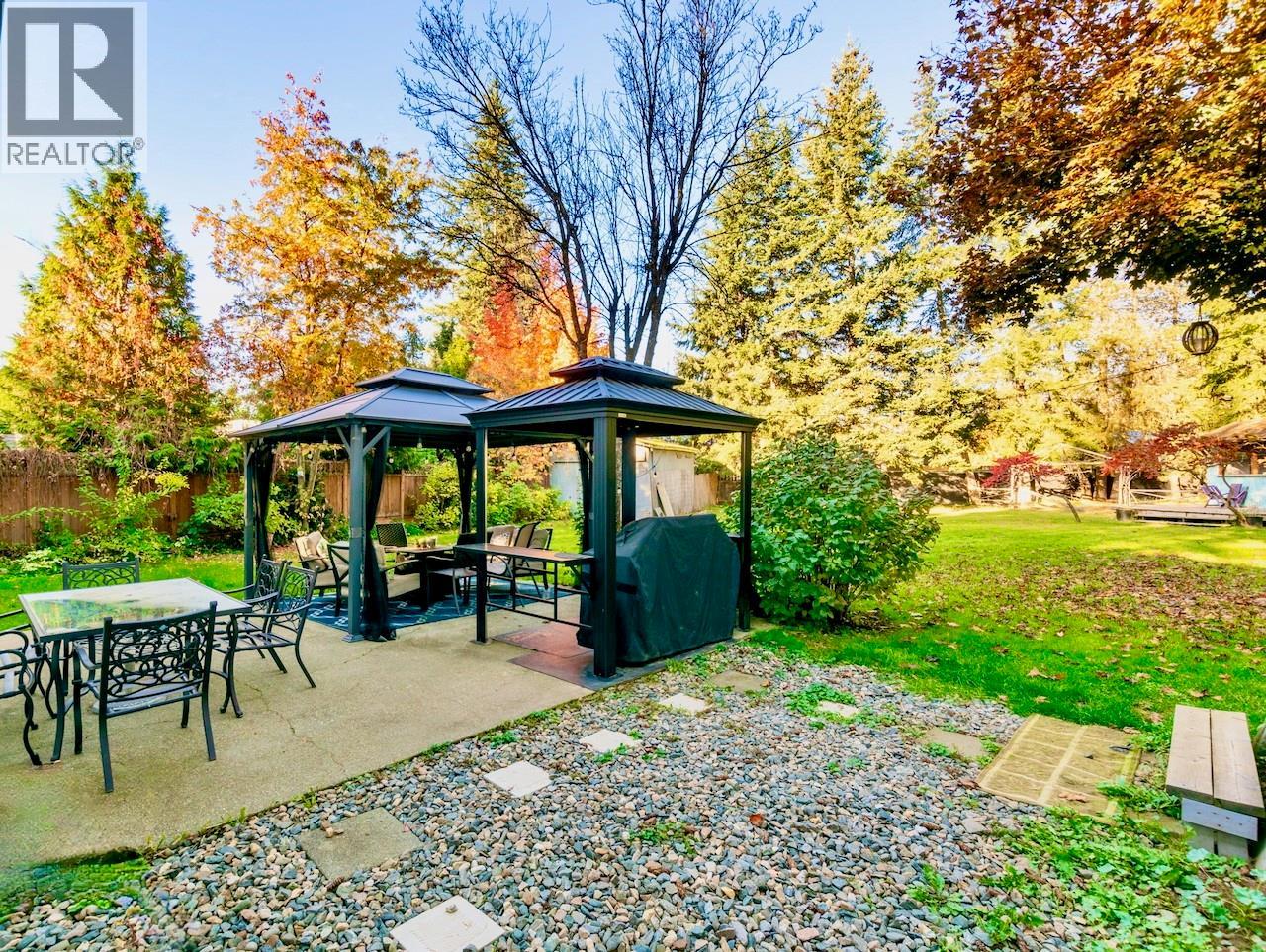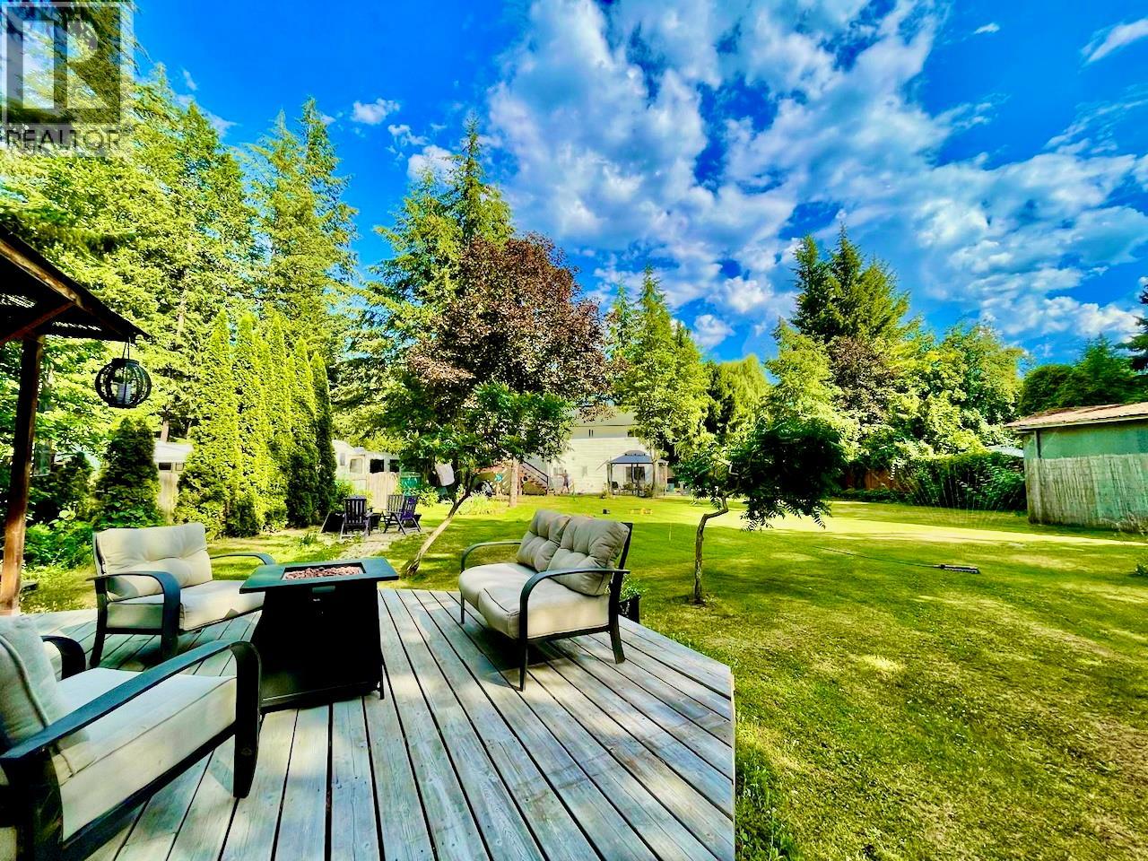 This home in the heart of Scotch Creek is the ultimate blend of location, comfort, and privacy. Escape to this bright 3-bedroom, 2-full bath residence sitting on a spectacular 0.36-acre fully fenced lot, offering a private, resort-like feel, while being steps from everything. The heart of this home is the sun-drenched solarium dining room that offers unobstructed views of the backyard. It’s the perfect place to start your day or enjoy a quiet meal. The adjacent kitchen features stainless steel appliances, a covered deck, and is open to the living room, perfect for gatherings. Stay cozy with a WETT certified pellet stove, and enjoy peace of mind with a complete PEX plumbing upgrade. The expansive, fully fenced backyard is an entertainer's dream. It's easily maintained, incredibly private, and features a patio with a gazebo, fire pit zone, large storage shed, and a cabana with a sundeck. Location is everything! Live in town, but still feel like you're in the country. Enjoy a quick 6-min walk to the beach or to Shuswap Lake Provincial Park (public boat launch/playground/bike pump track). You can easily walk to the many shops, restaurants, grocery and hardware stores, gas station, and pharmacy in Scotch Creek. The school bus stop is just a 2-min walk away, and the North Shuswap Elementary goes from Preschool to grade 7, and offers after school care. This home would make a great investment opportunity for anyone seeking a rental property too. Available for immediate possession. (id:44393)