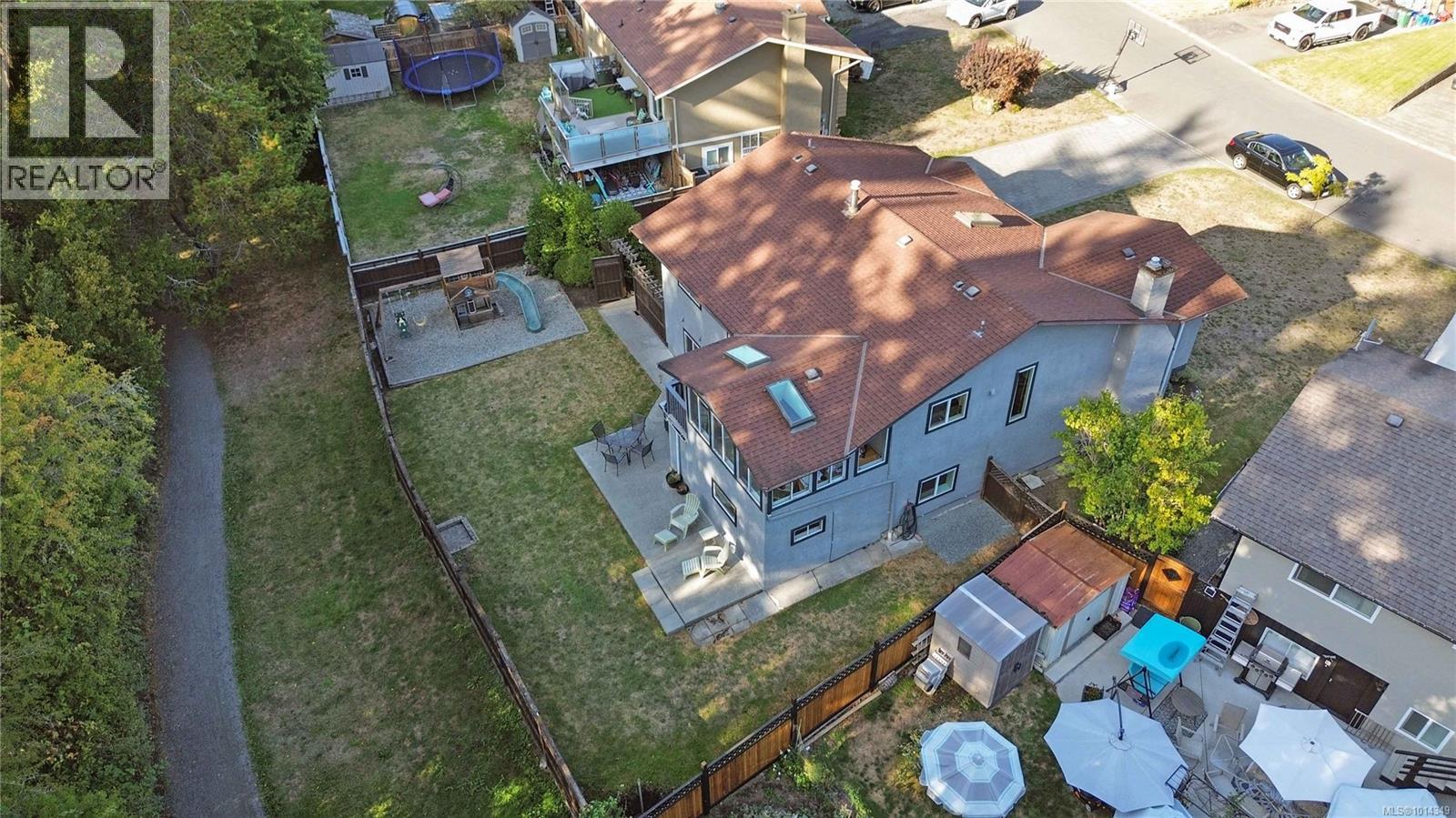Come discover this versatile renovated home perfectly positioned in the family-friendly Northridge neighbourhood. Backing directly onto the Colquitz River Trail and Copley Park, this property offers everyday access to nature while being minutes from schools, shopping, and amenities. The 5-bed, 3-bath layout includes a bright main level with open living and dining areas, a stylish and well-equipped kitchen with island, and a sunroom that flows to the private fenced yard. Three bedrooms upstairs include a primary with ensuite, while the lower level provides a versatile rec room, 4th bedroom (no closet), and laundry. A separate 1-bedroom suite with private patio, full bath, and its own laundry offers space for extended family or rental income. With beautifully landscaped gardens, an attached garage, a separate storage area off the backyard, and a huge driveway for RV or boat parking, this home blends modern comfort with outdoor living in an unbeatable location. (id:44393)