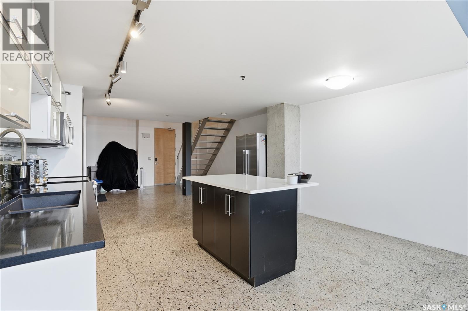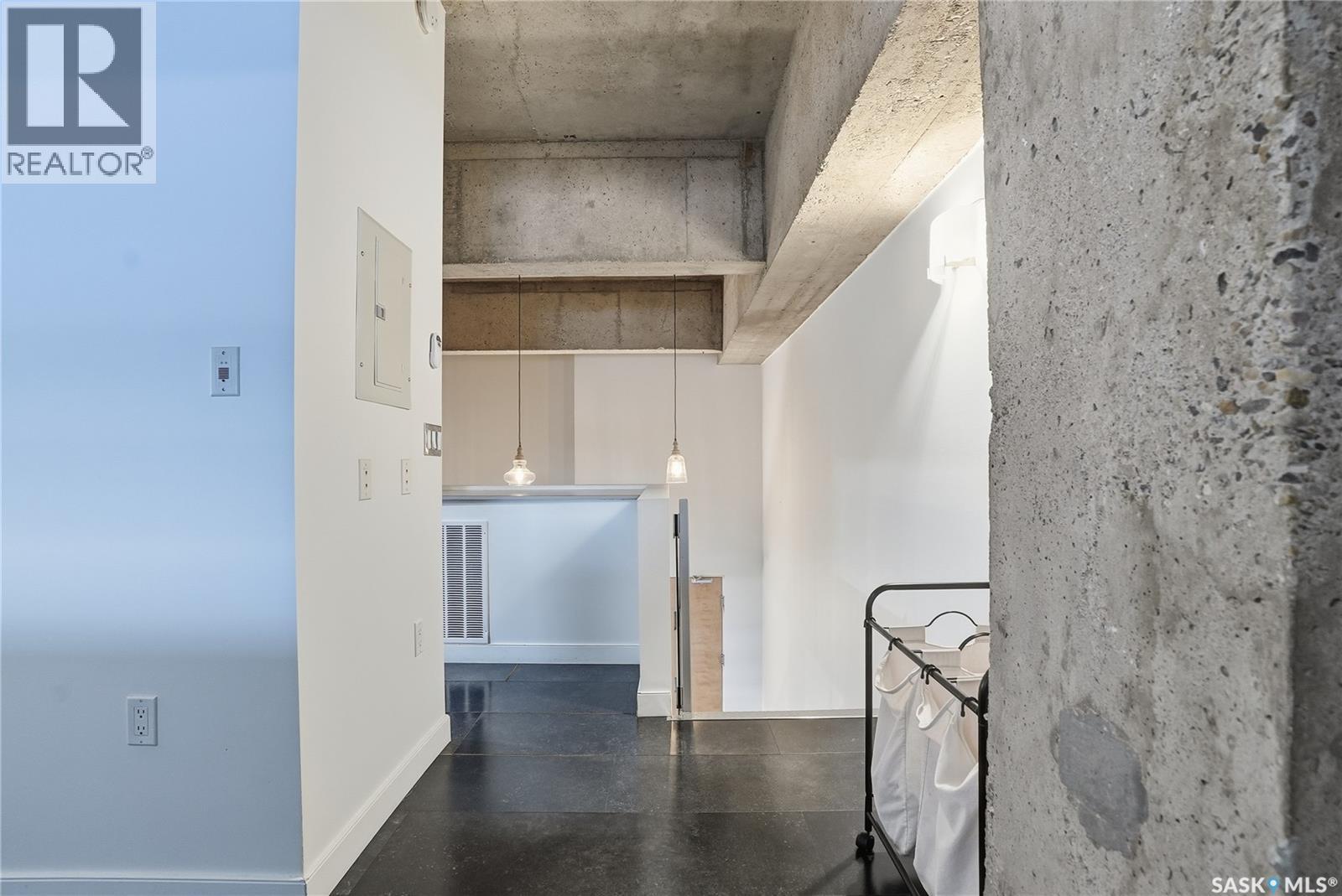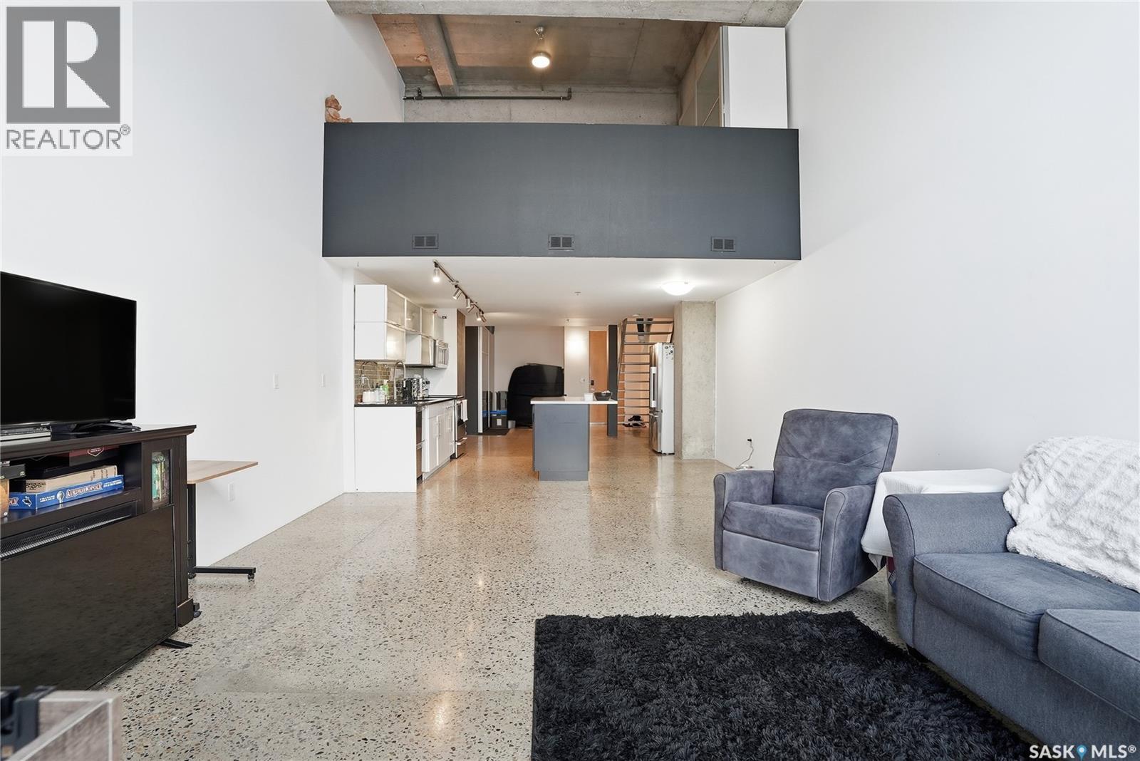 $469.59 MonthlyExperience iconic urban living in the heart of downtown with this stylish loft in the sought-after 2nd Avenue Lofts. Located on the fourth floor, this unit offers soaring ceilings, large windows, and a bright, open layout that truly captures the charm of this historic building. The main level features an open-concept living and kitchen area with plenty of room for furniture arrangements, dining, and entertaining. Floor-to-ceiling windows fill the space with natural light, creating an airy, modern feel. The updated kitchen includes stainless-steel appliances, large island and ample cabinetry, making everyday living both functional and inviting. Upstairs, the loft bedroom overlooks the main living area. Additional features include underground heated parking (stall 2 near main lobby), concrete construction, in-unit laundry, and access to fantastic building amenities — a rooftop terrace with BBQs, a fully equipped fitness center, and a rec room. Perfect for first-time buyers, professionals, or anyone seeking a true downtown lifestyle. This loft places you steps from restaurants, shopping, entertainment and transit. Perhaps one day this unit will have views of the new downtown arena. Don’t miss your chance to own a piece of Saskatoon’s most recognized loft development. Contact your REALTOR® today to book a private showing today. (id:44393)