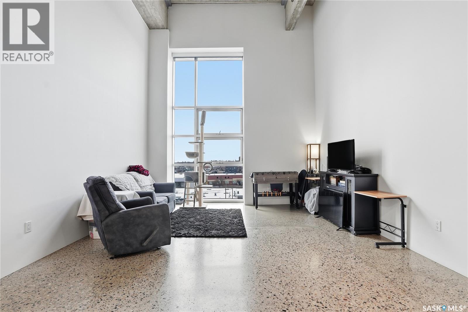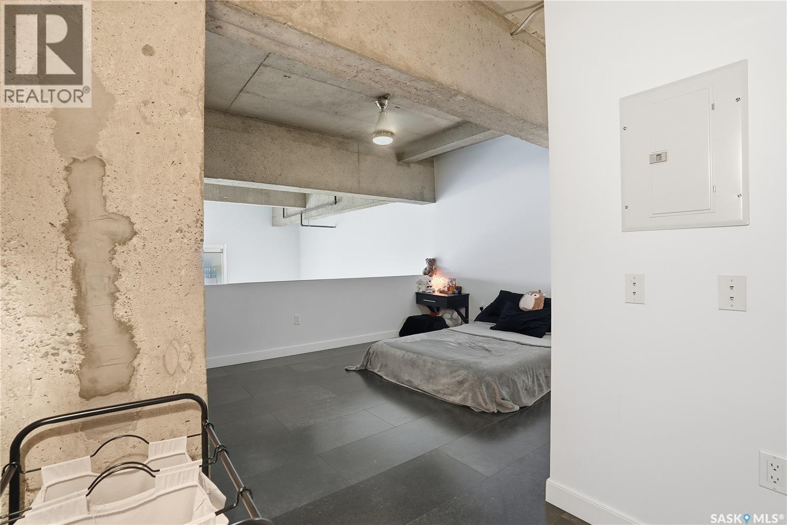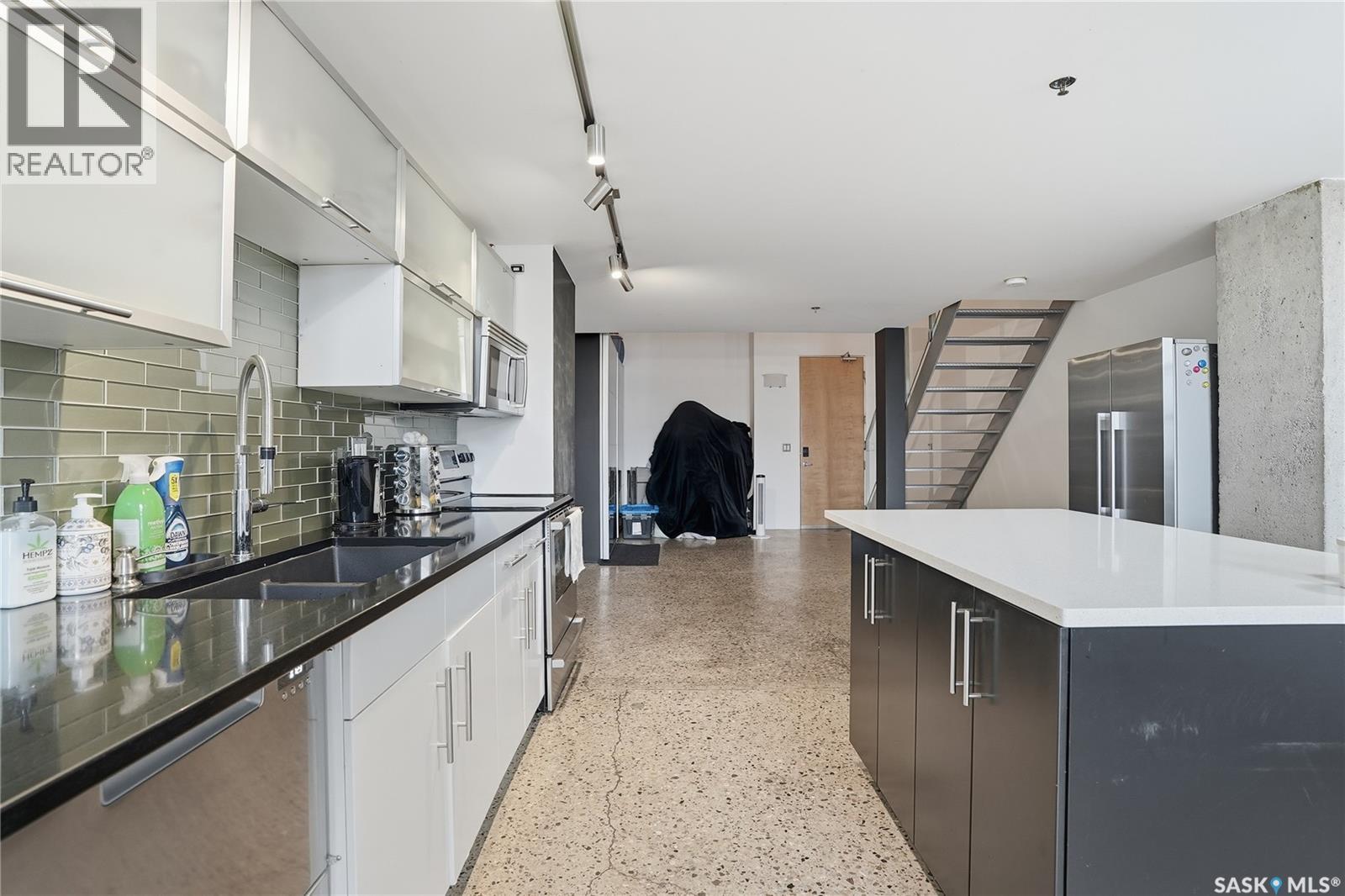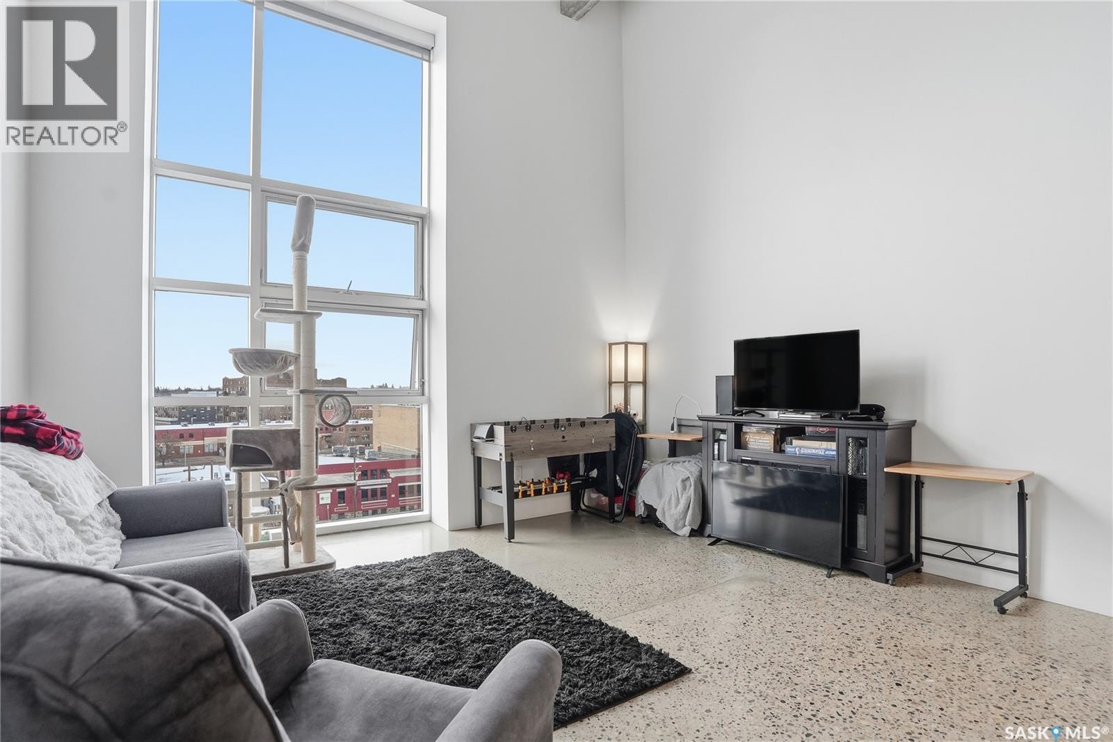 $469.59 MonthlyExperience iconic urban living in the heart of downtown with this stylish loft in the sought-after 2nd Avenue Lofts. Located on the fourth floor, this unit offers soaring ceilings, large windows, and a bright, open layout that truly captures the charm of this historic building. The main level features an open-concept living and kitchen area with plenty of room for furniture arrangements, dining, and entertaining. Floor-to-ceiling windows fill the space with natural light, creating an airy, modern feel. The updated kitchen includes stainless-steel appliances, large island and ample cabinetry, making everyday living both functional and inviting. Upstairs, the loft bedroom overlooks the main living area. Additional features include underground heated parking (stall 2 near main lobby), concrete construction, in-unit laundry, and access to fantastic building amenities — a rooftop terrace with BBQs, a fully equipped fitness center, and a rec room. Perfect for first-time buyers, professionals, or anyone seeking a true downtown lifestyle. This loft places you steps from restaurants, shopping, entertainment and transit. Perhaps one day this unit will have views of the new downtown arena. Don’t miss your chance to own a piece of Saskatoon’s most recognized loft development. Contact your REALTOR® today to book a private showing today. (id:44393)