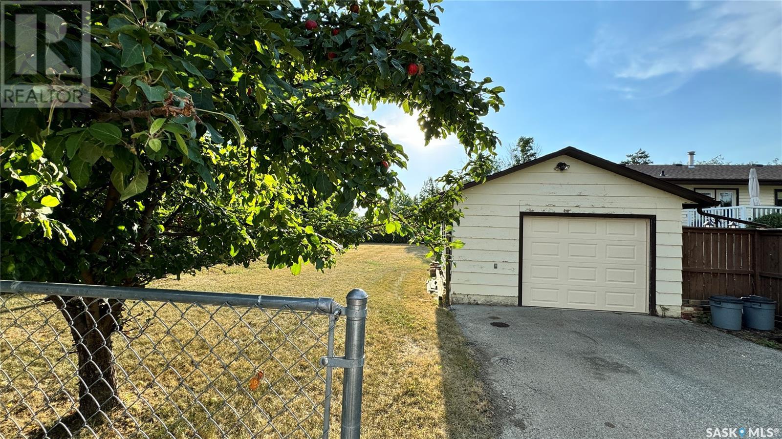 Discover the potential of this ideally located 50' x 120' residential lot in OUTLOOK, SASKATCHEWAN. This property features a single-car detached garage and is fully enclosed with a chain-link fence and a beautifully maintained hedge, adding both privacy and curb appeal. Enjoy a touch of nature with a couple of apple trees enhancing the yard. Access is easy with a concrete driveway leading from the back alley directly into the 16' x 23' GARAGE. ESSENTIAL UTILITIES - power, gas, water, and sewer - are conveniently located near the property line, making it ready for you to build your dream home. Located in a family-friendly neighborhood, this Outlook SK lot for sale is within WALKING DISTANCE TO SCHOOLS, the ice rink, curling rink, and the brand-new Outlook swimming pool. Whether you're planning to build a new family home or seeking a smart investment in a growing community, this lot offers an incredible opportunity in a PRIME LOCATION. Don’t miss out—call today to view this Outlook real estate opportunity! (id:44393)