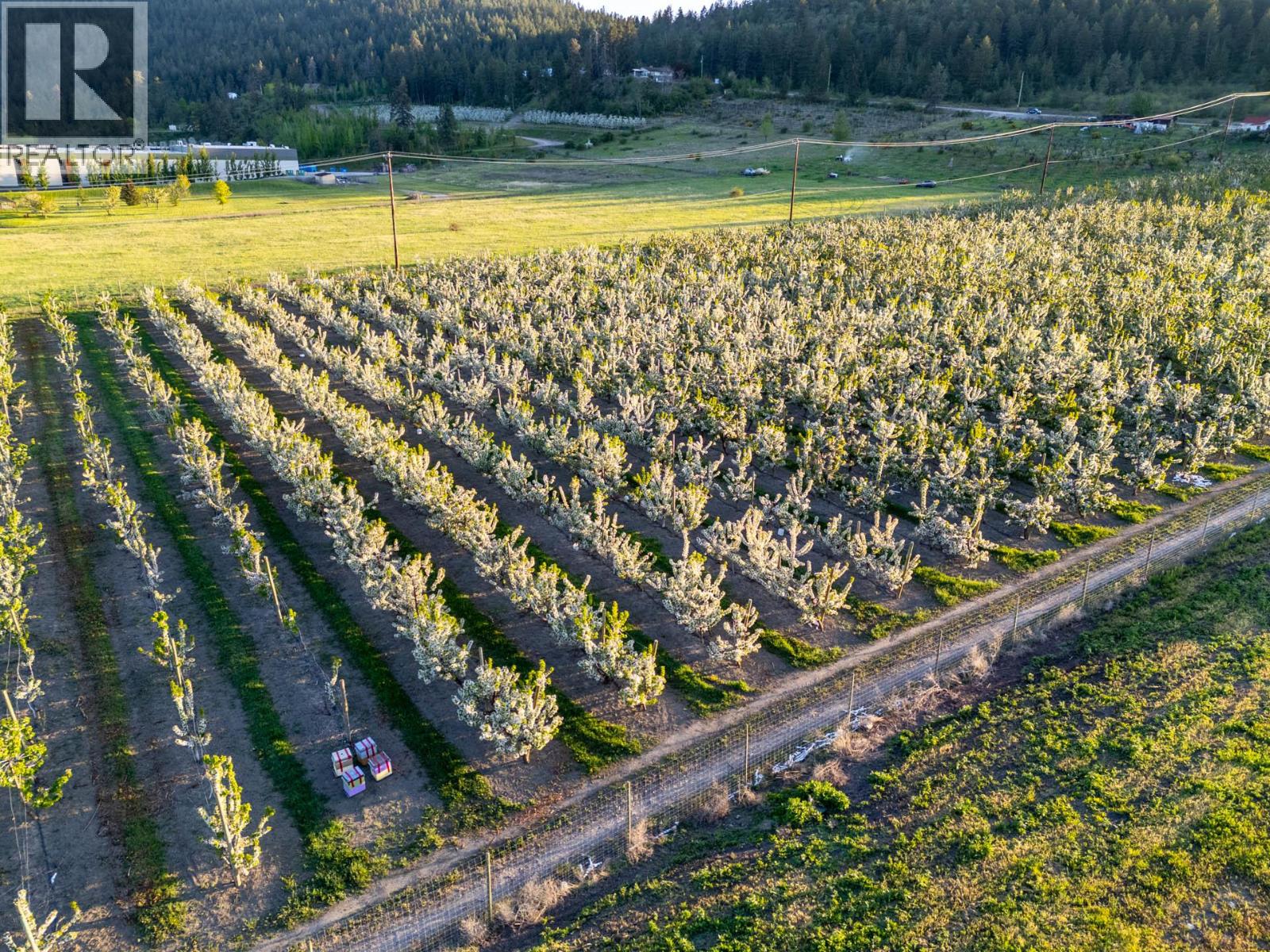 9.85 acre cherry orchard with Highway 97 Frontage and in City of Kelowna Limits, just minutes from the core of Lake Country. Newer plantings but in full production, this orchard presents a great opportunity for an orchardist/farmer to add to their portfolio. The property is deer fenced and has been well maintained. There is no lease on the property, meaning an orchardist can come in and utilize the next crop. The four bedroom, two bathroom home has two kitchens and is ideal for a rental or for farm worker accommodations (its current use). Property is serviced by municipal water. The land is agriculturally zoned and in the ALR. Sprinklers are micro-sprinklers. Orchard is planted to a mix of Staccato, Skeena, Sentennial, Regina, and Santina planted in 2018-2020. Good rootstocks with mix of Mazzard, Gisela 6 / 5. Some sweetheart nursery stock planted. Contact agent for precise information. Access via Shanks road and by appointment only. (id:44393)