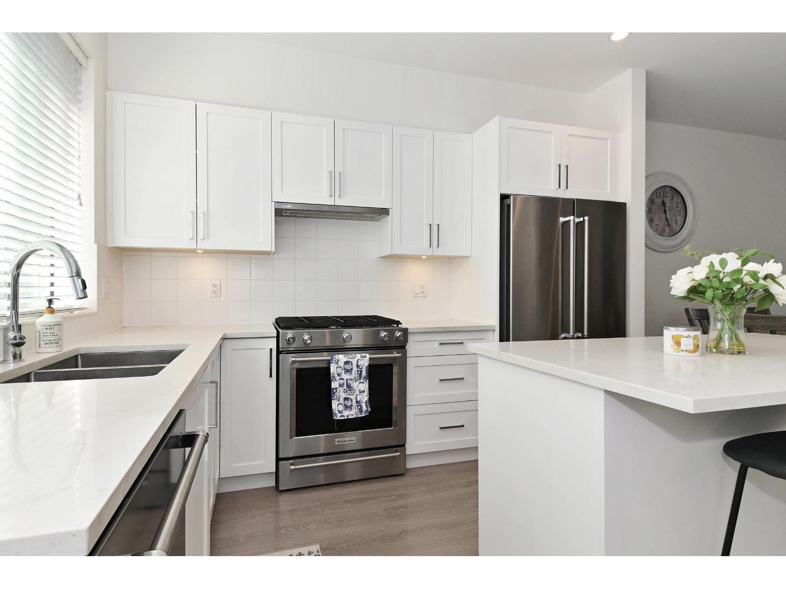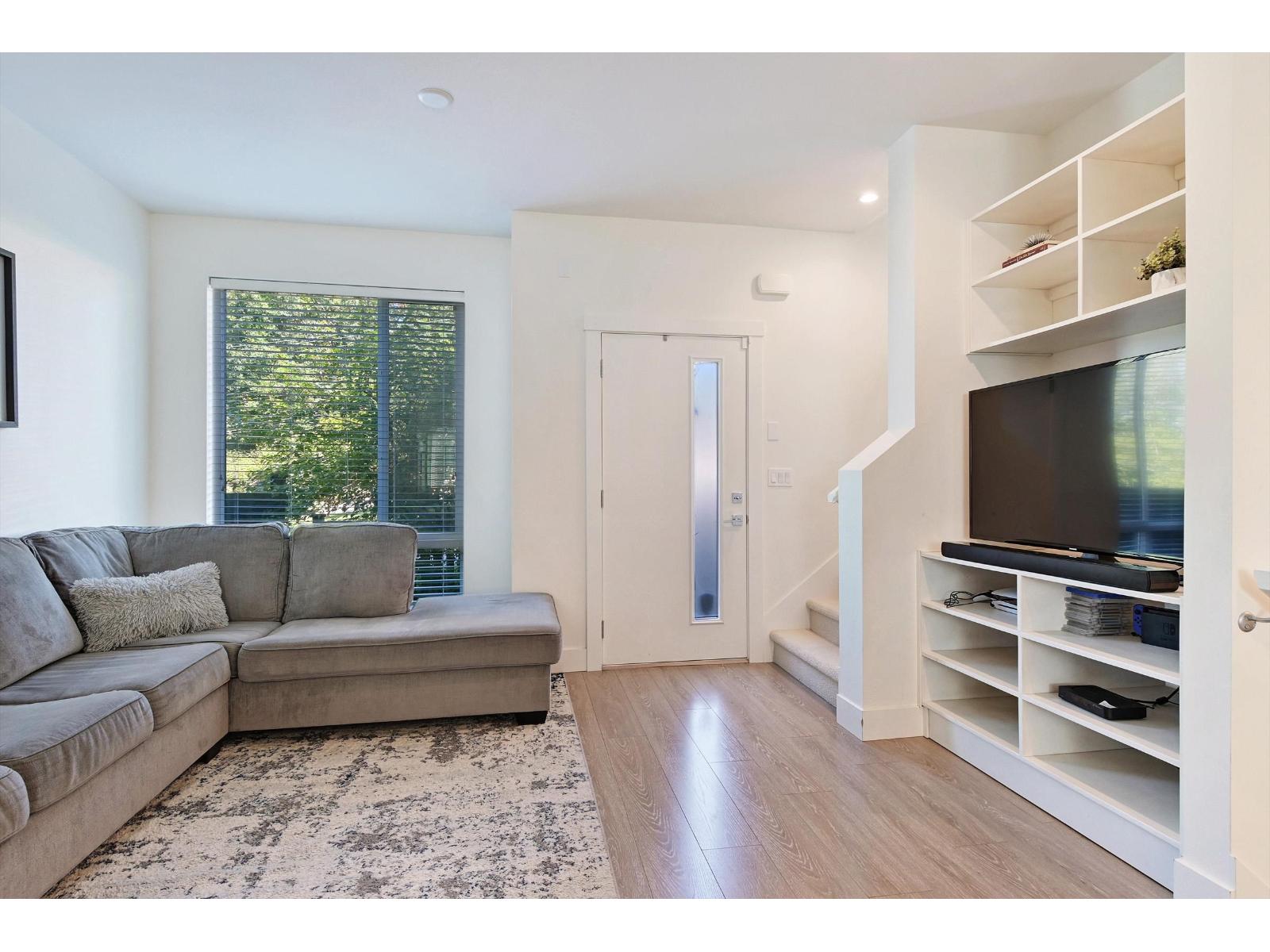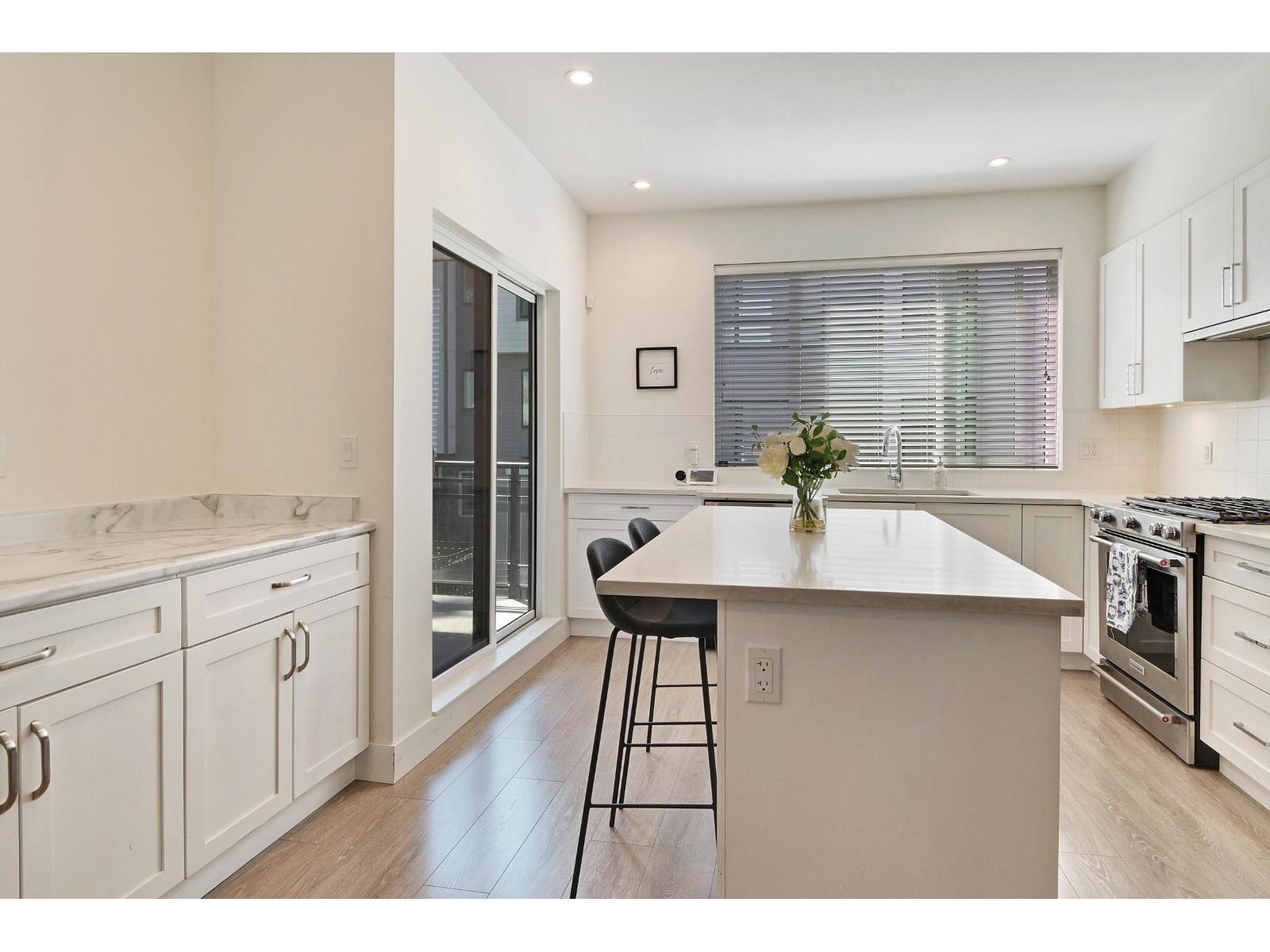 Presenting an opportunity to lease this stylish 3-bedroom plus den, 2.5-bath townhome in the highly coveted South Surrey area. Enjoy an open-concept layout on the main floor, featuring soaring 9 ft ceilings, large windows, and a convenient powder room. The contemporary kitchen is equipped with stainless steel appliances, a 5-burner gas range, and a spacious double-door refrigerator. This desirable corner unit offers a lush green space for children and a charming balcony perfect for outdoor entertaining. Located just a 2-minute walk from the soon-to-open elementary school, it's also close to Grandview Corners shopping, excellent schools, the aquatic center, the beach, and Hwy 99. Please note: no pets, no smoking. Please call Happy Boyal at 778-859-3453 for showings. (id:44393)
